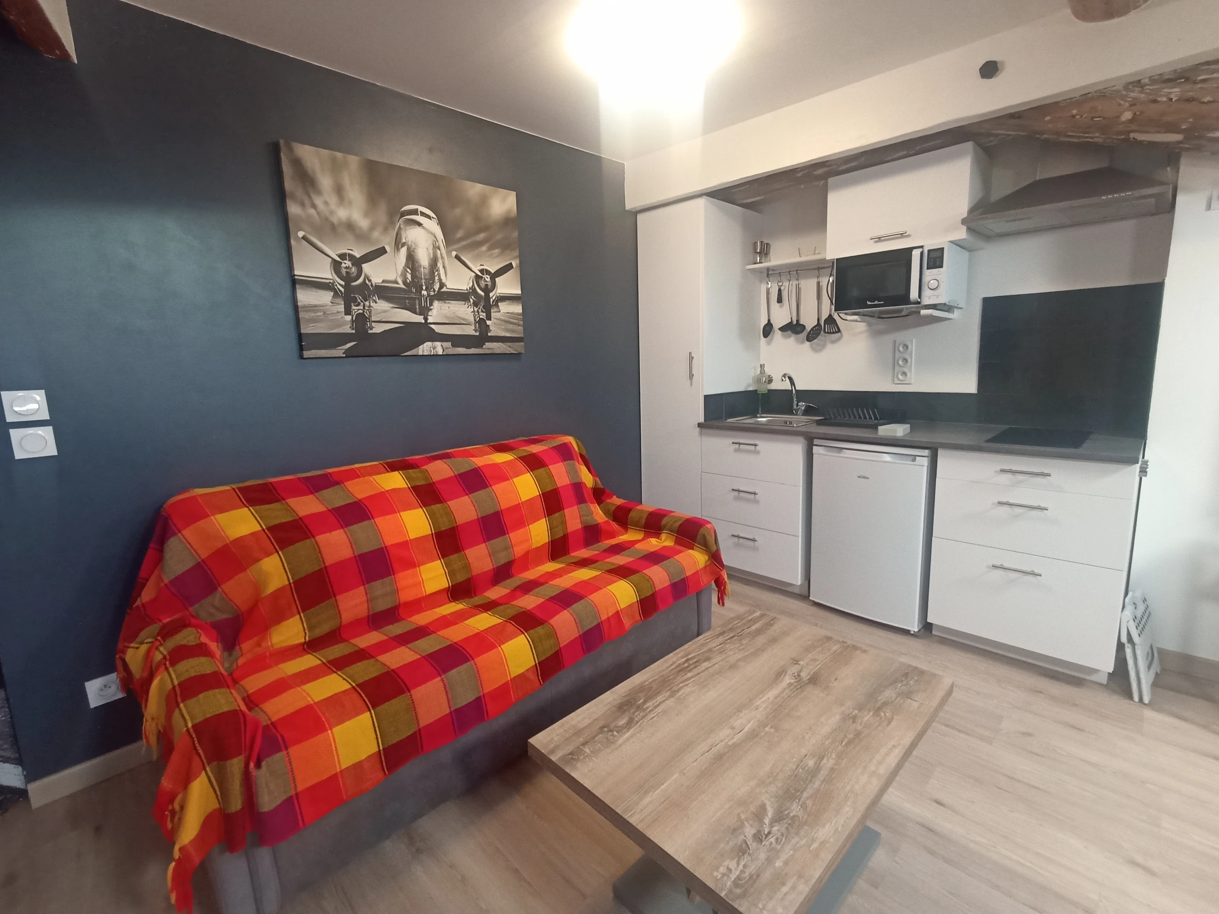 Location Sète: Quartier Théâtre, close to the train station. This pretty studio (for 2 people) of 20 m² ventilated by 2 skylights is located in a quiet building and on the 4th floor with elevator. It is composed of a living room with a pull-out bed for two people, connected TV, WIFI, open to the kitchen including: induction hobs, extractor hood, top fridge with freezer section, multifunction microwave. A bathroom with shower, sink and toilet. The advantages of the location: Being able to do everything on foot, stopping for lunch at the Halles de Sète. Sète beaches 3.7 km away with the possibility of getting there by bus, bus lines 100 m from the apartment, SNCF train station 500 m away. Pets not allowed. Non-smoking apartment. Late arrival possible: €50 (details please contact us.)