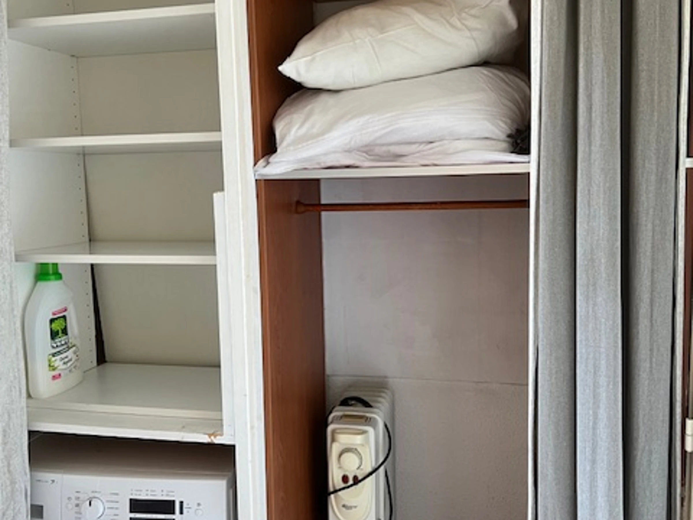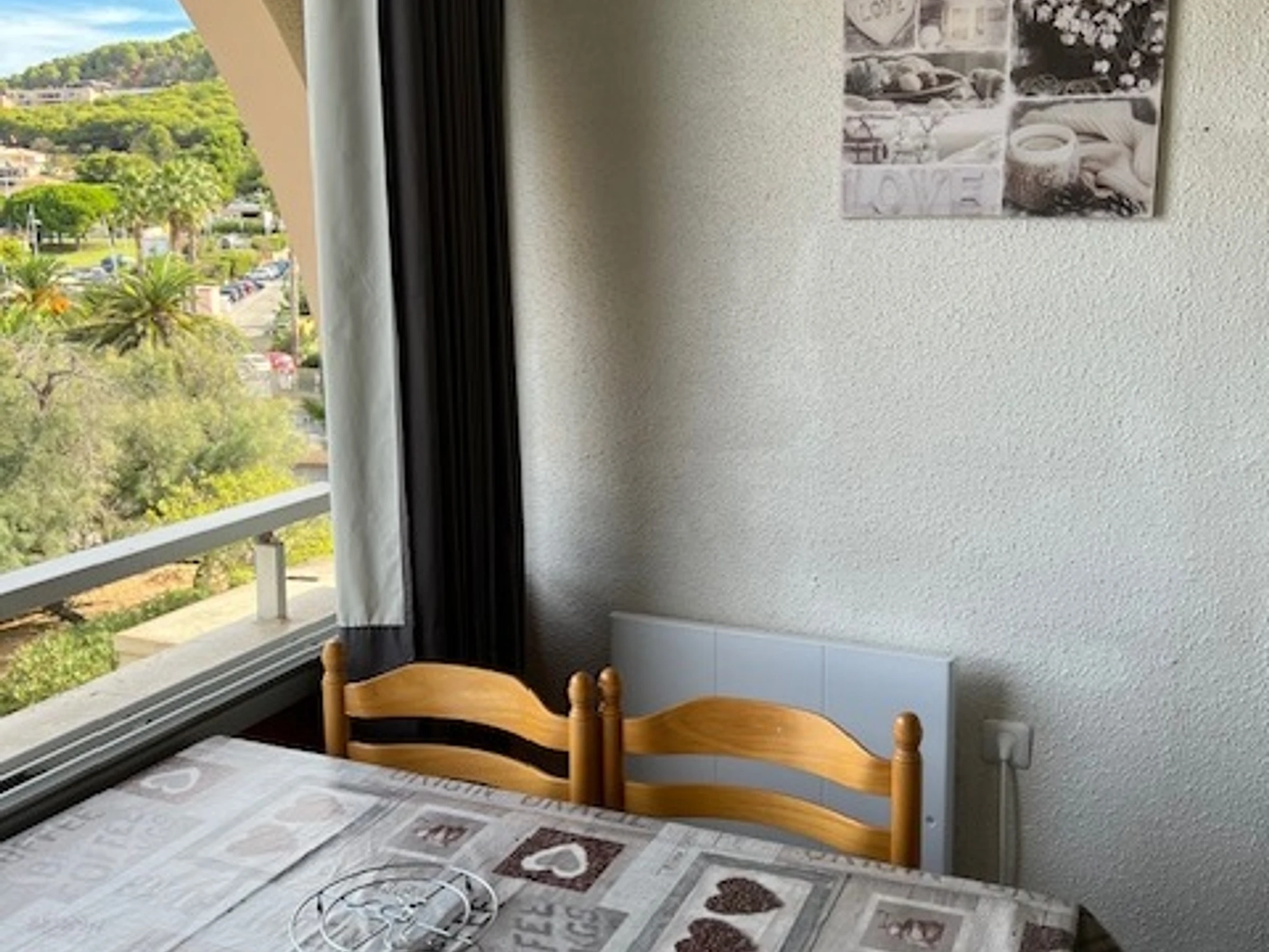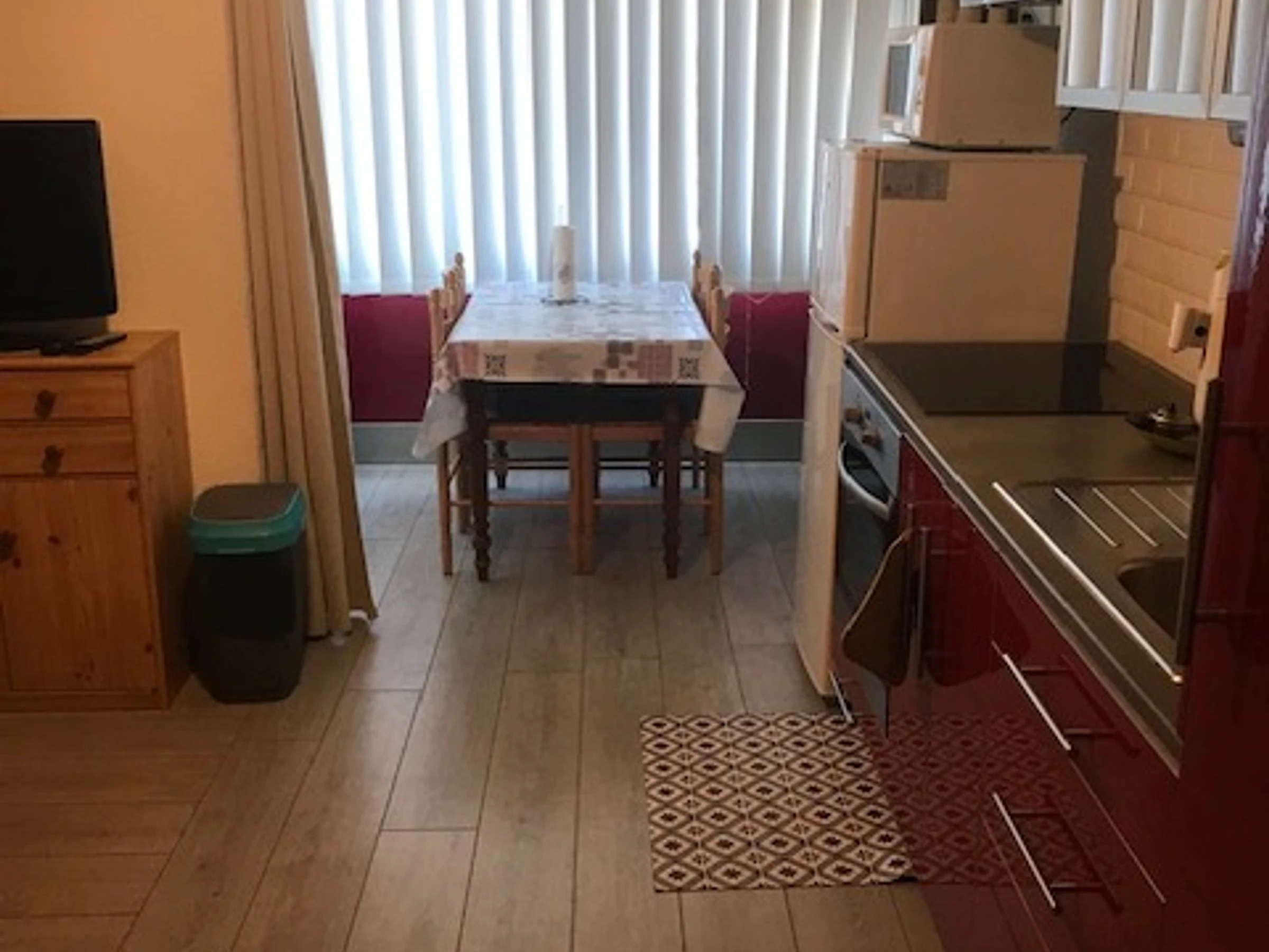 Vacation Rental in Sète: 15 m2 studio + 5 m² glazed loggia on the 3rd floor (with elevator) of a residence 500m from the sea and the beach and close to shops. The living room consists of 2 single beds plus a mezzanine bed, a television and storage, table and chairs. In the bathroom, you will find a shower, a sink and the toilet. The kitchenette is equipped with 2 induction hobs, fridge-freezer, microwave, oven, washing machine.