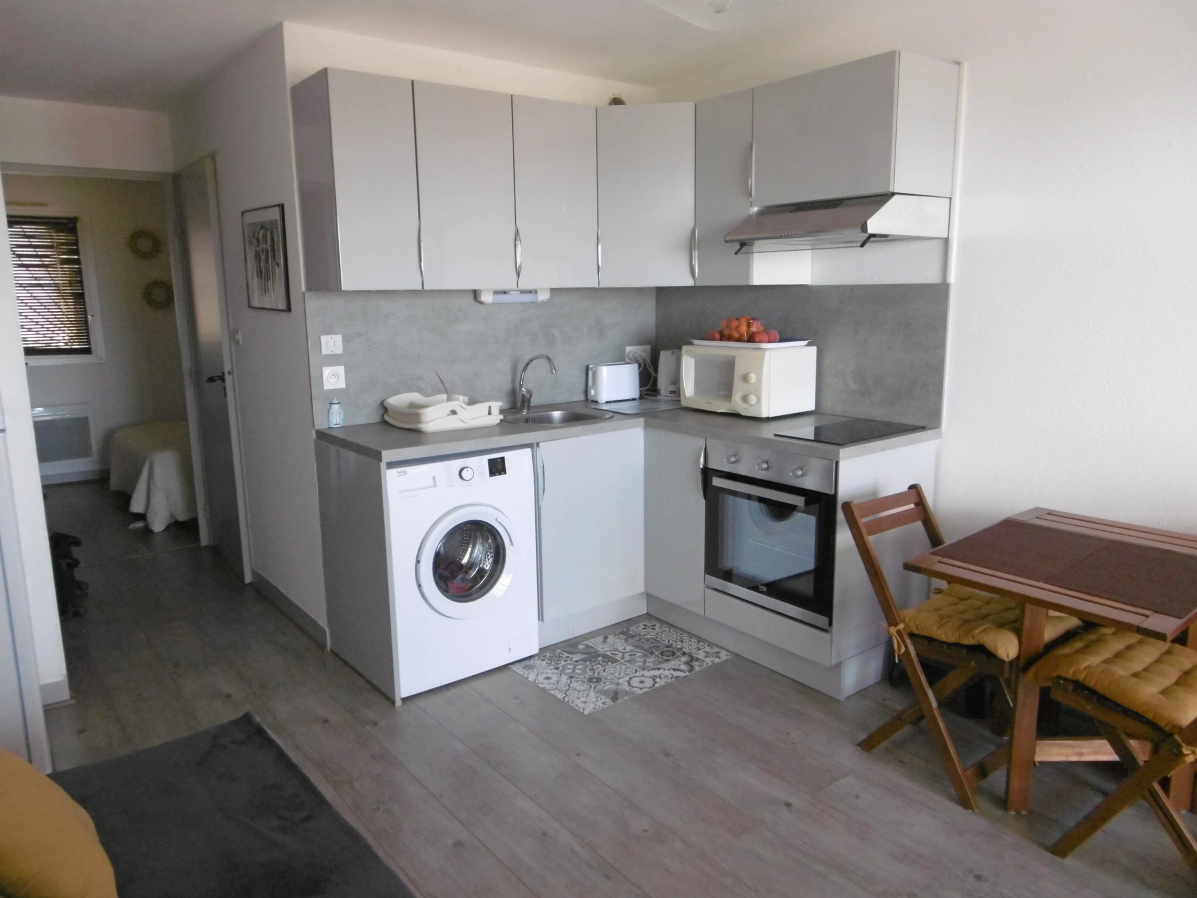 It consists of: living room with sofa bed (140 cm) and TV - well-equipped kitchenette (cooktop, oven, microwave, washing machine, fridge/freezer),