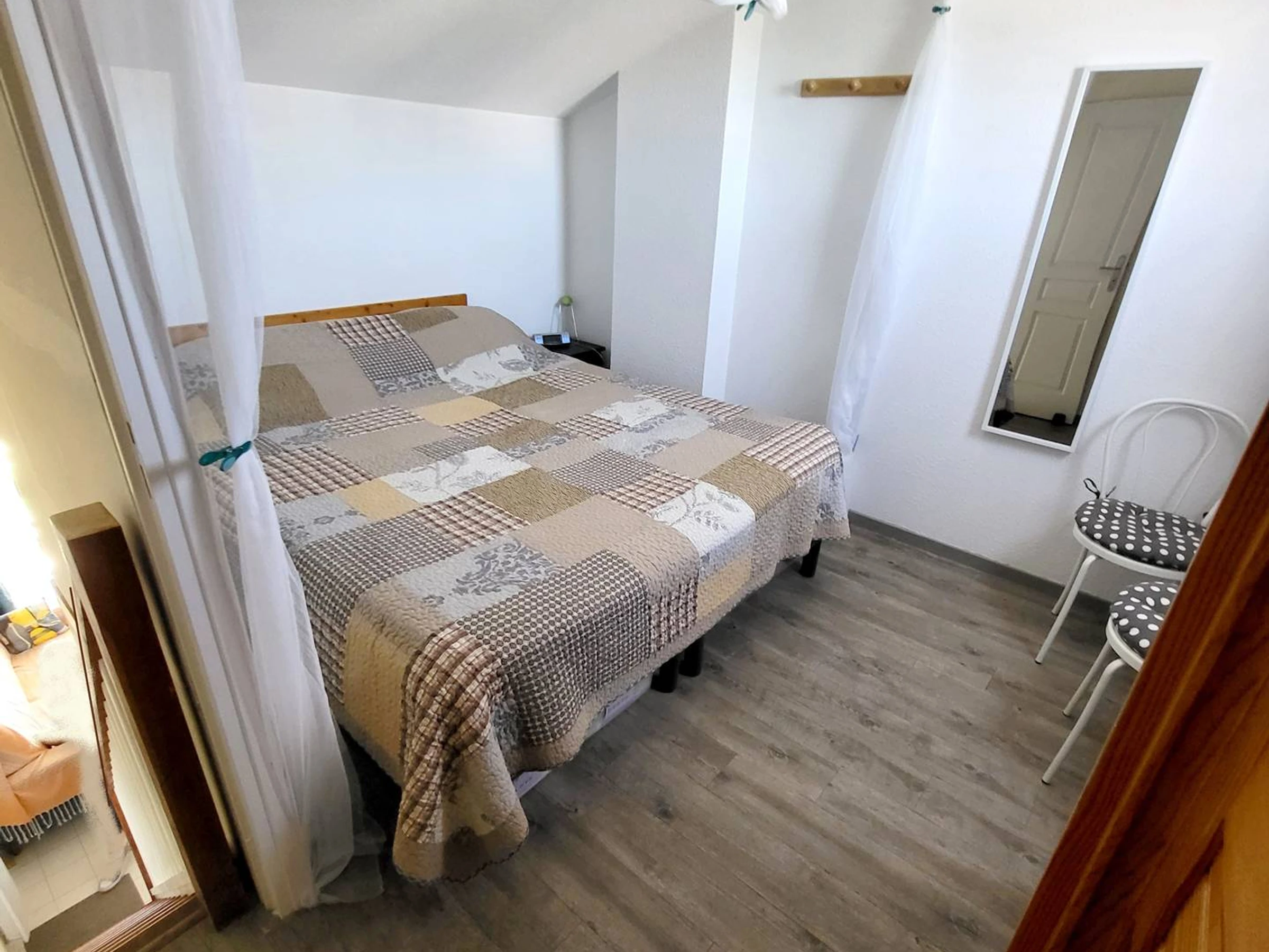On the 1st level: Loggia closed by removable bay windows offering a magnificent sea view with slatted blinds, awning, storage units, 2 tables, 4 chairs, 1 relaxation armchair, 1 plancha, 1 fan and mobile air conditioner - Entrance with cupboard with a shopping trolley, an ironing board, iron and vacuum cleaner - Entrance with shoe cabinet - Kitchen area with central block, folding table, fridge/freezer, 3-burner induction hob, extractor hood, 6-place dishwasher, 2 mini microwave combination ovens, Senseo pod coffee maker, filter coffee maker, toaster and plenty of storage - Main room with sofa, television, CD player and DVD player - 1 small children's bedroom with 1 extendable trundle bed (2 mattresses 90 x 190) which can form 1 double bed (180 x 190), television, chest of drawers and wardrobe - Shower room with shower, single sink unit and washing machine - Separate toilet.