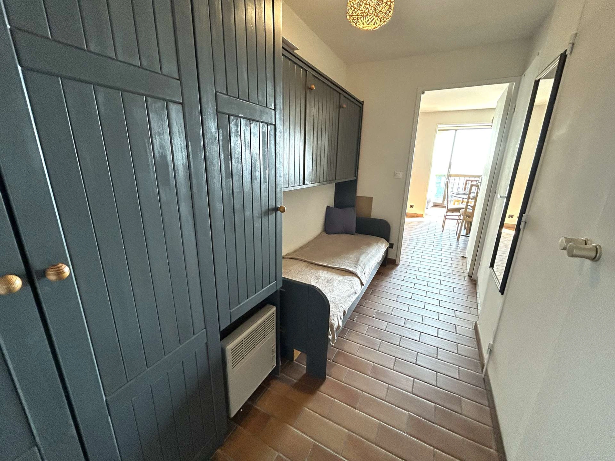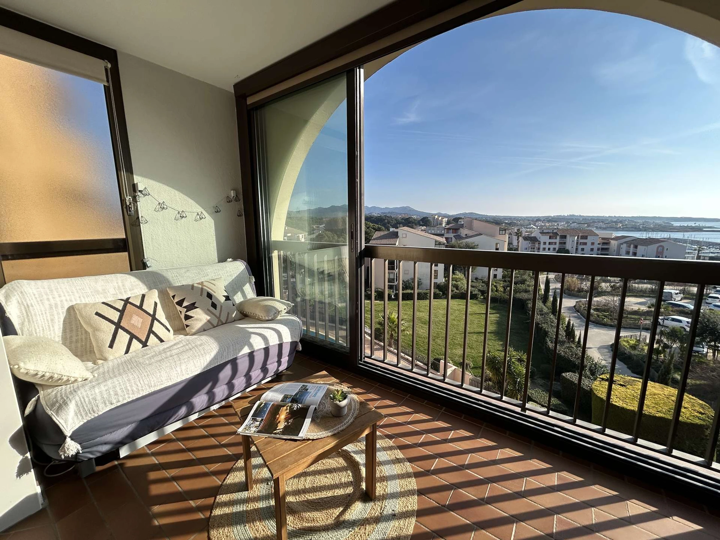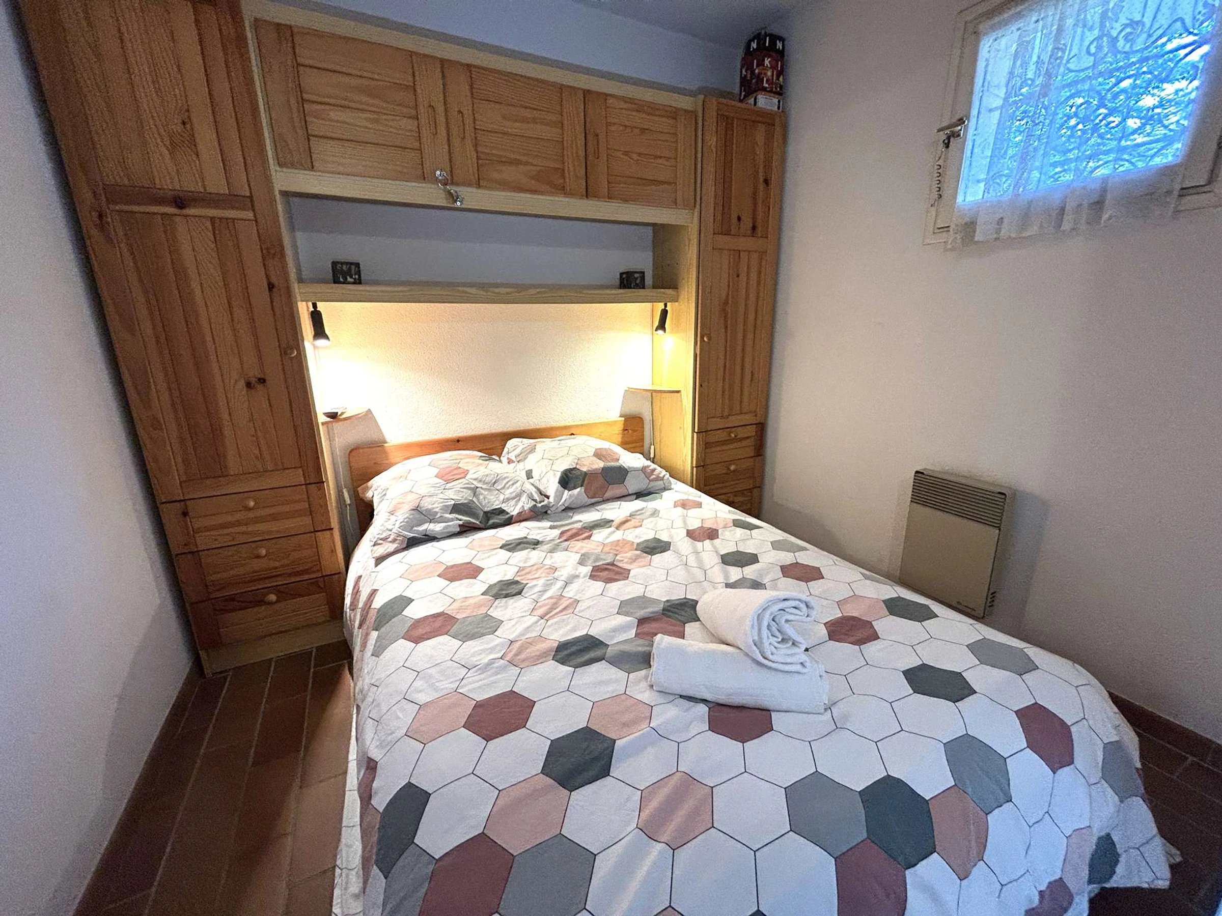 The apartment is located on the 3rd floor (with elevator) of a residence with a swimming pool, offering a magnificent view of the sea and the port. It includes an entrance hall with a sleeping alcove containing two bunk beds (80cm) and storage, a bedroom with a double bed (140cm) and storage. A living room with a fully equipped kitchenette opens onto an enclosed loggia, providing additional living space with an idyllic view.