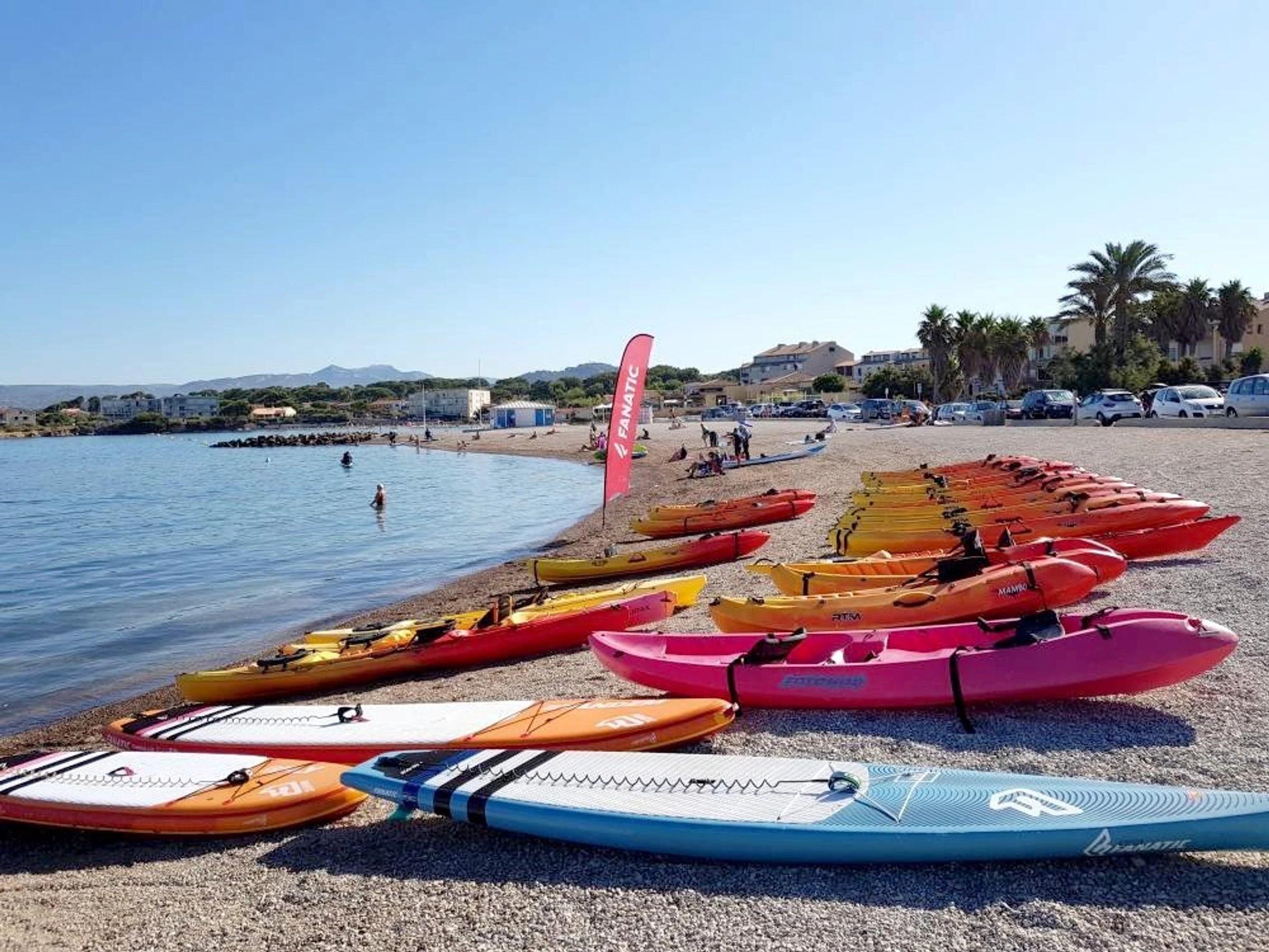 Loggia closed by removable bay windows (10 m²) with blinds and garden table and chairs - Sea view - Kitchen open to the living room (2-burner stovetop - small refrigerator - microwave - filter coffee maker - Senseo single-serve coffee maker - kettle - toaster - vacuum cleaner) - Main room with a double sofa bed (130 cm), television, and a tower fan - Bedroom with a double bed (140 cm) and closet/wardrobe - Sleeping area in the entrance hall with a single bed (90 cm) - Bathroom with shower (narrow passage) and washing machine - Separate toilet.