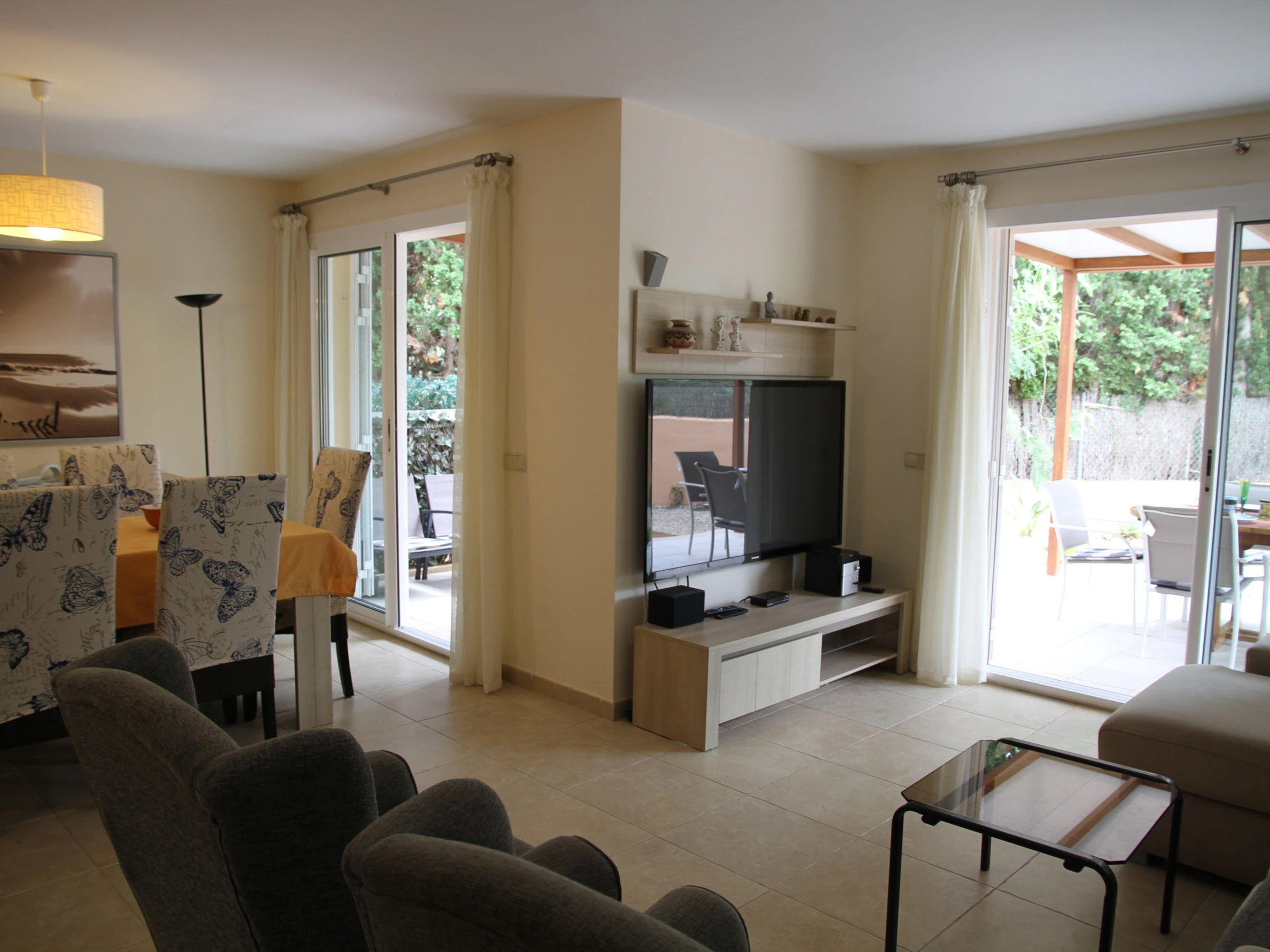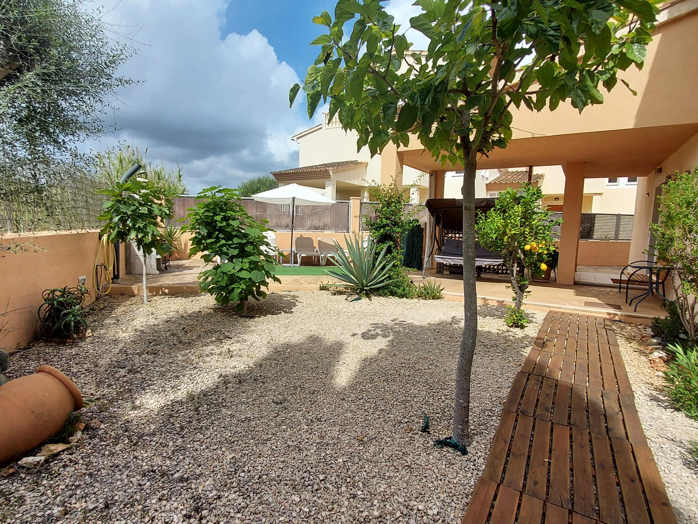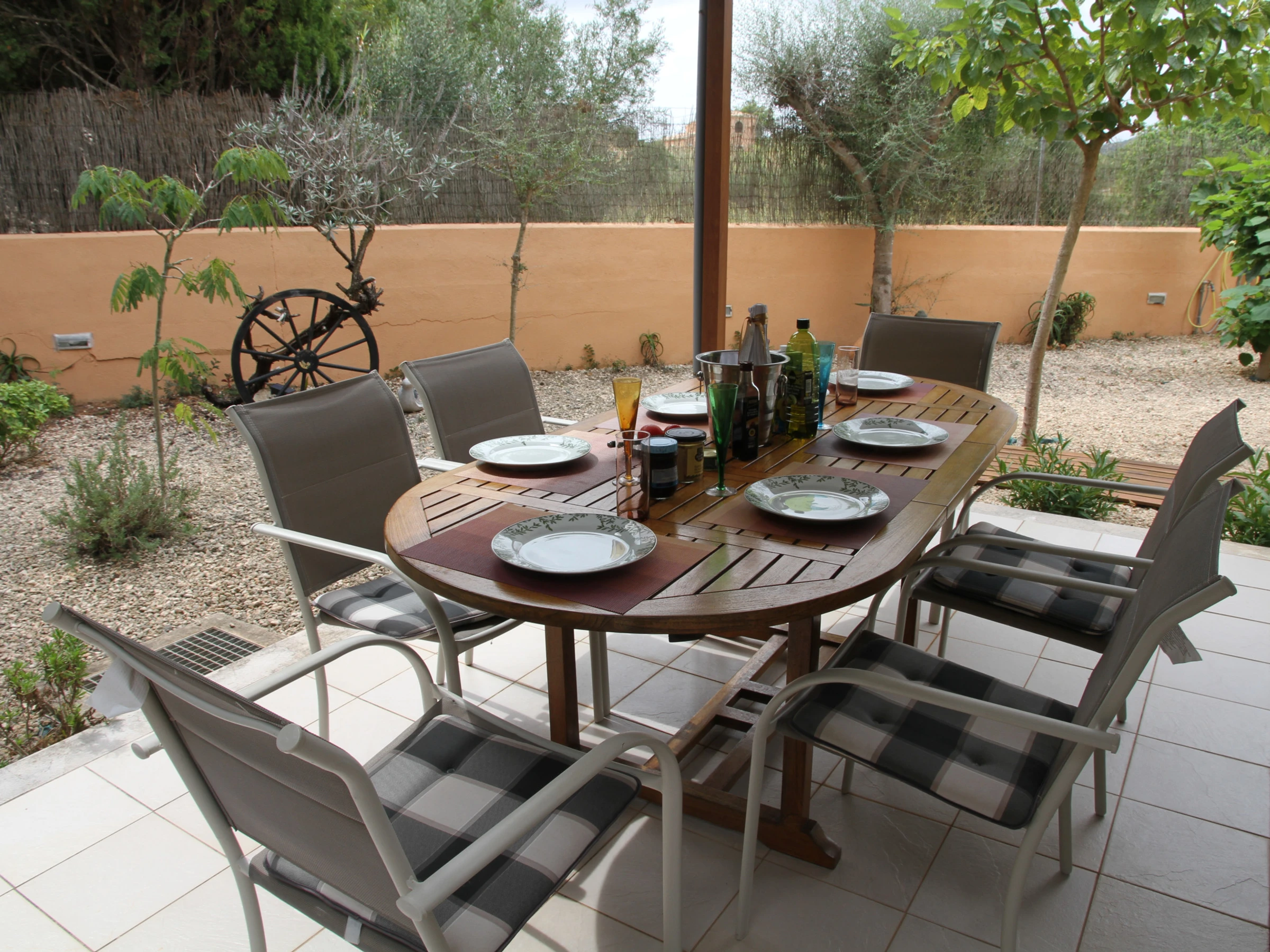It has garden furniture, washing machine, barbecue, iron, internet access (wifi), hairdryer, heat pump heating, garage, 2 fans, 1 Television.