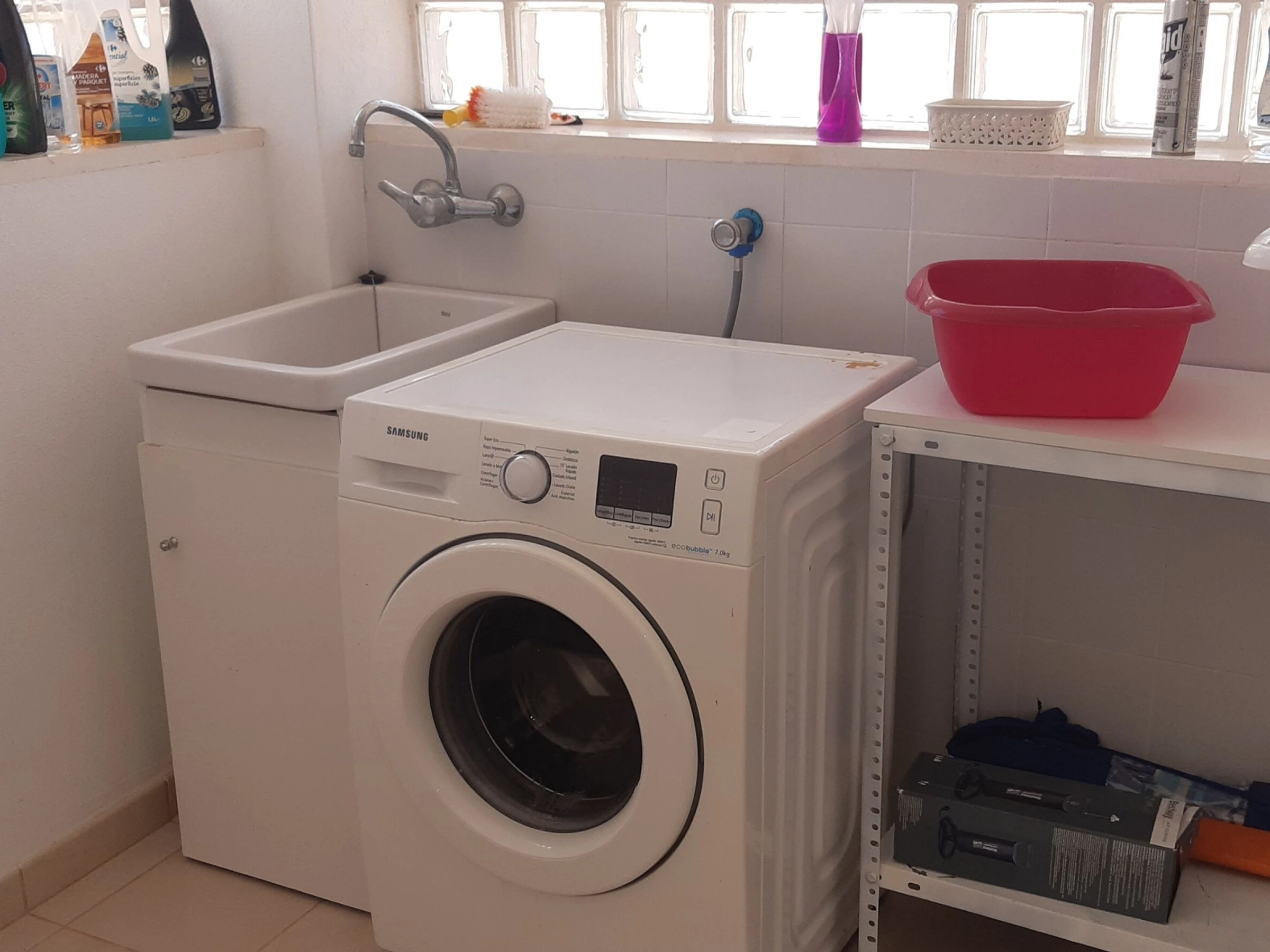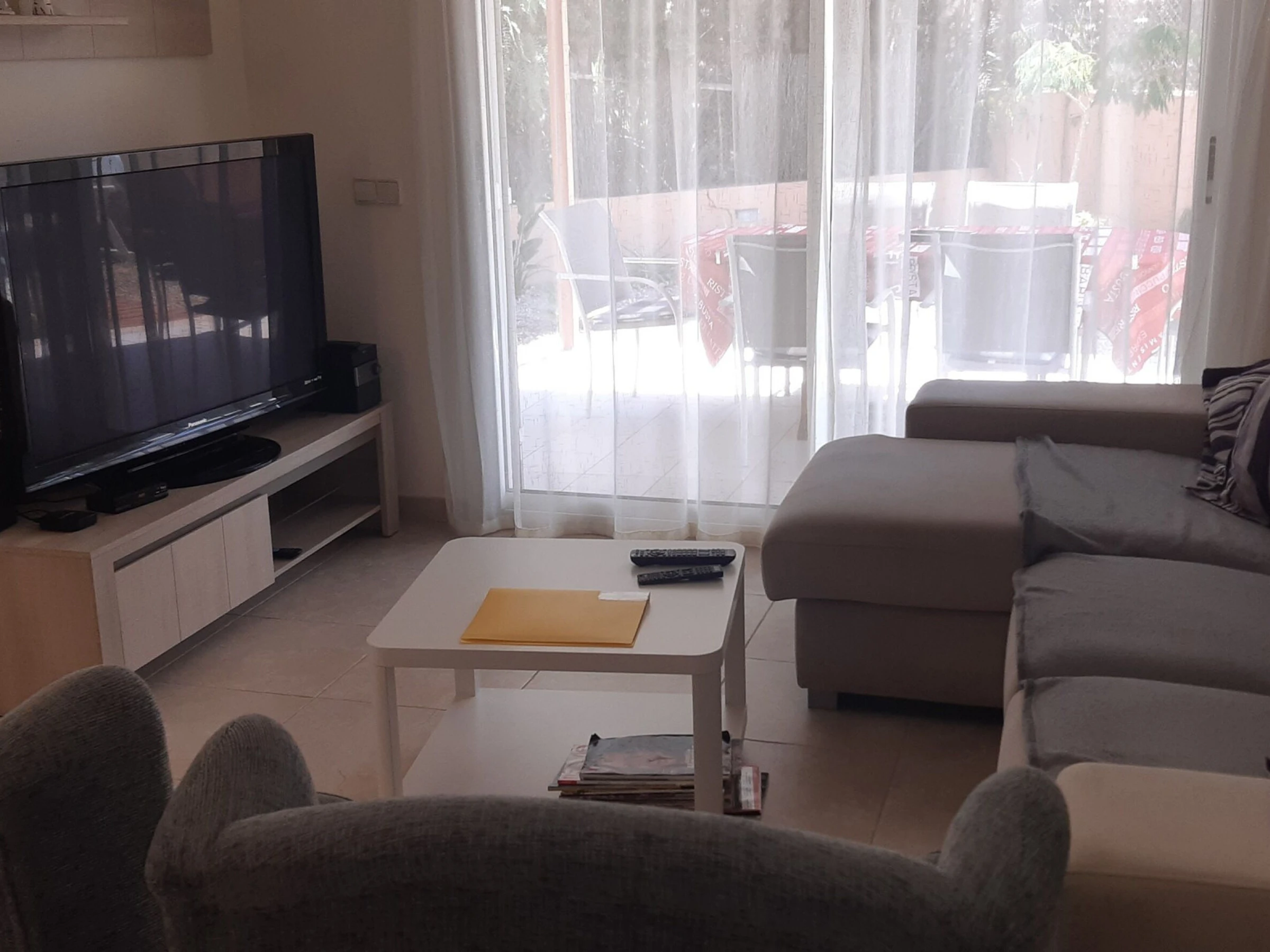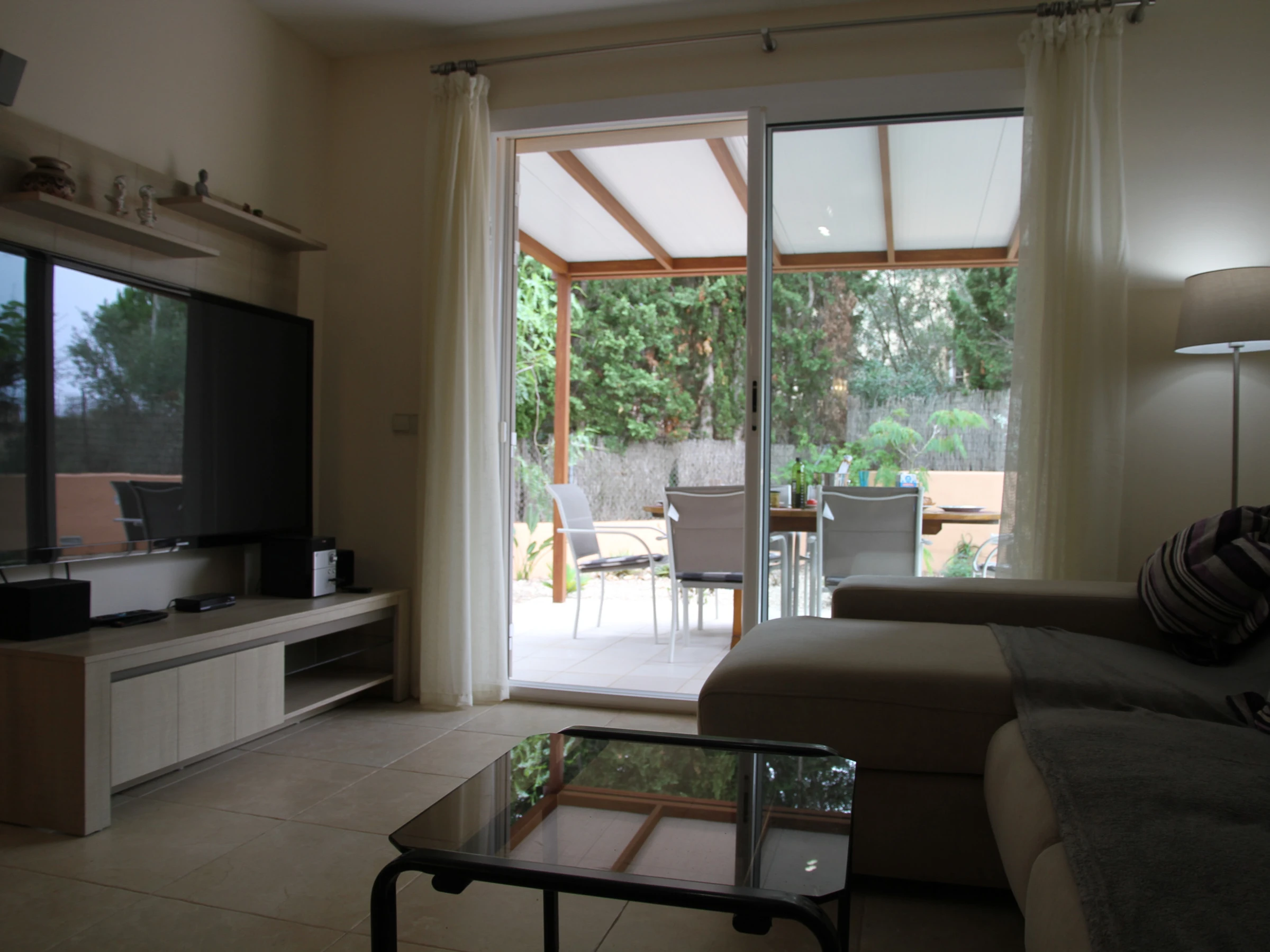 It has garden furniture, washing machine, barbecue, iron, internet access (wifi), hairdryer, heat pump heating, garage, 2 fans, 1 Television.