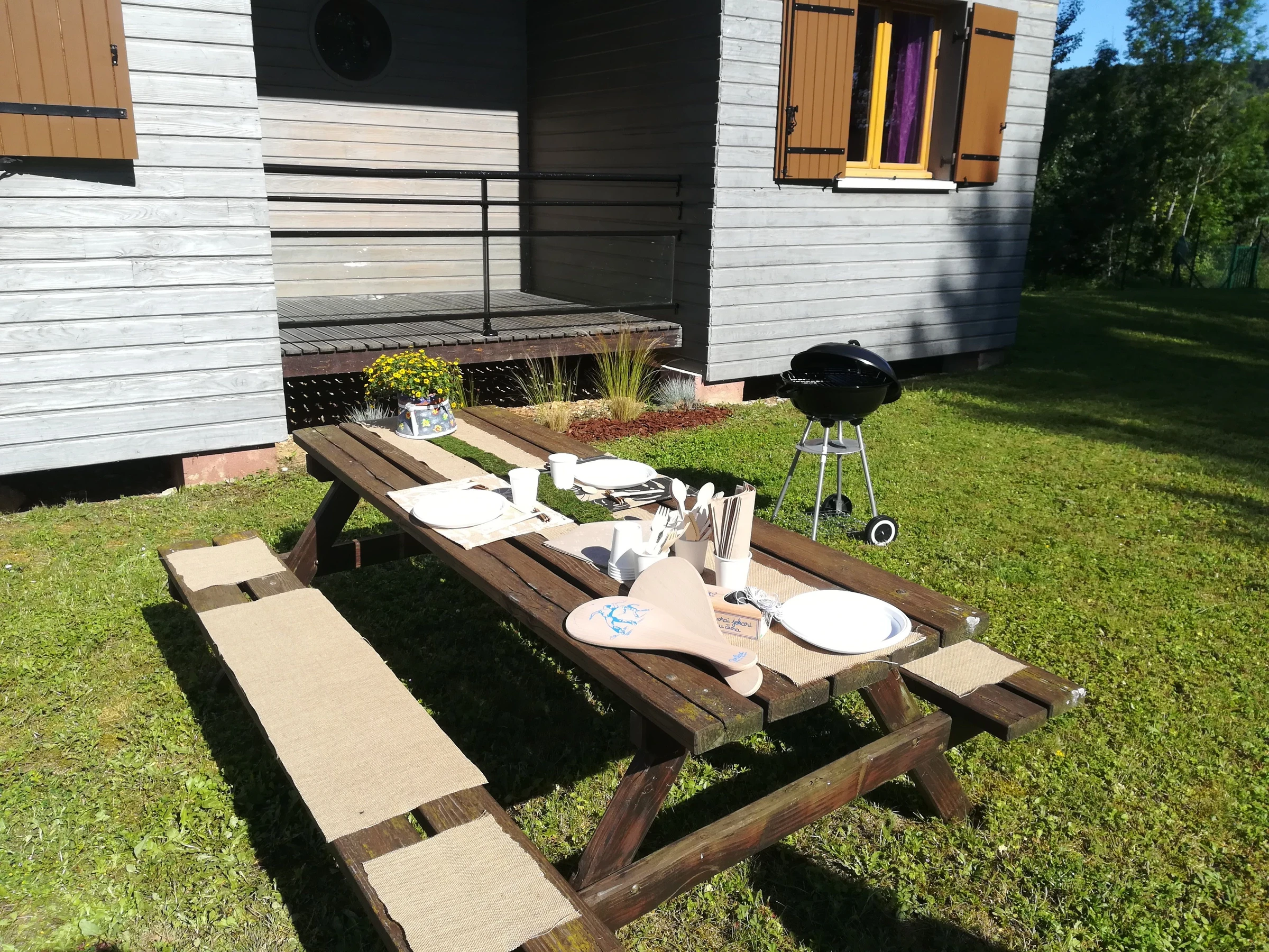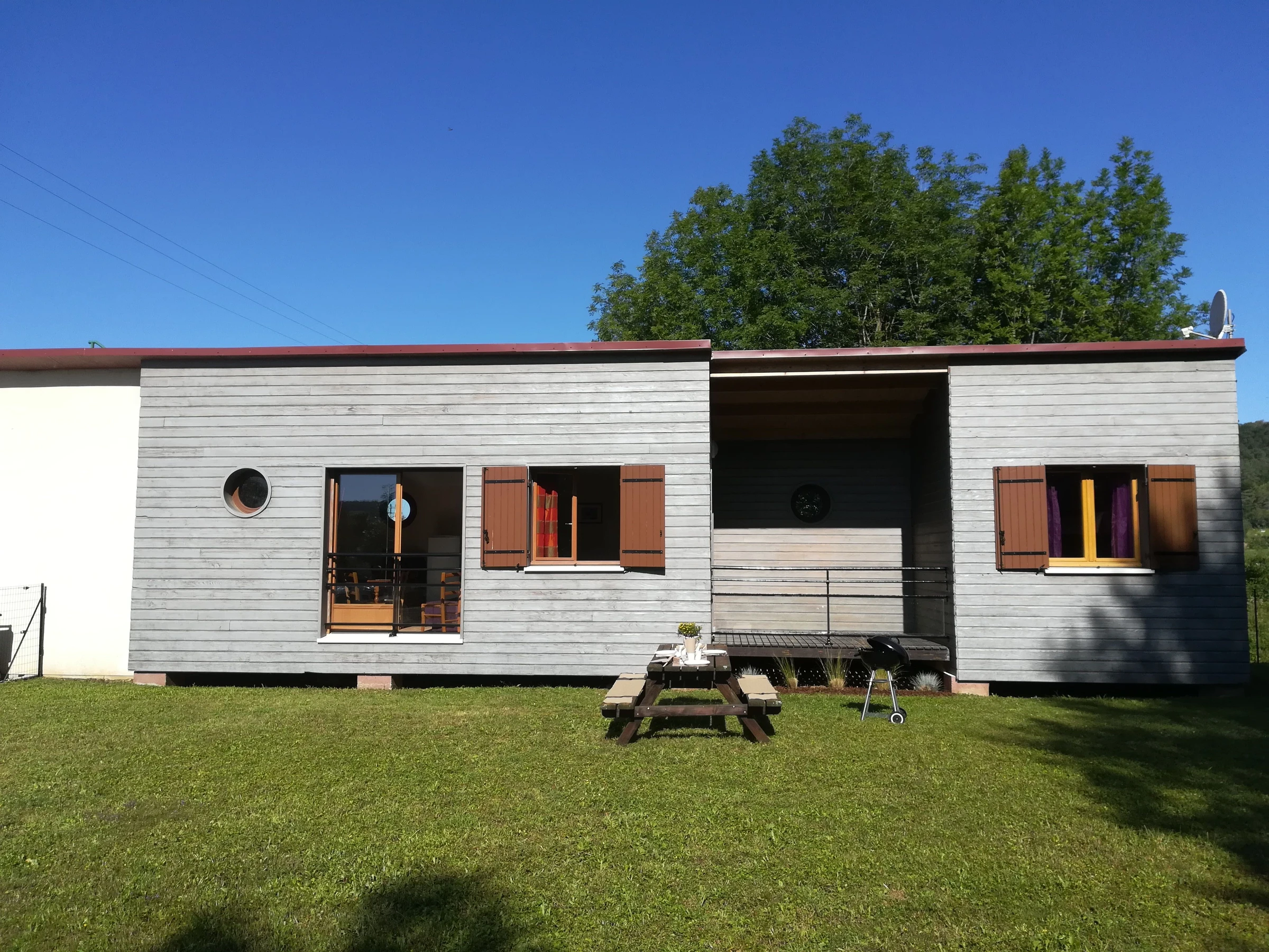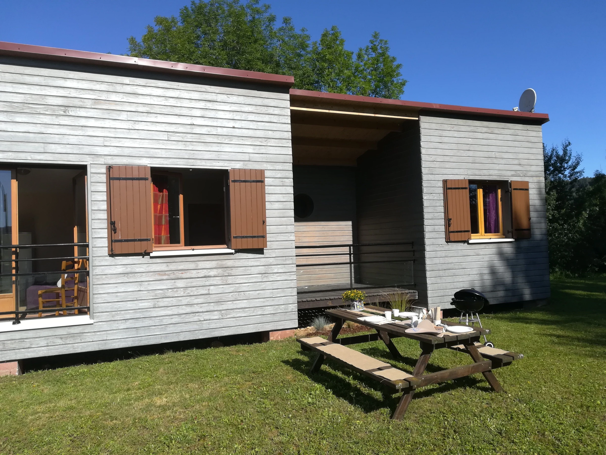On the banks of the Marne, single-story furnished wooden exterior with terrace. Garden furniture and barbecue. 2 bedrooms (2 double beds (140cm) and 1 high bed (90cm)) - Kitchen with sitting area with a sofa bed that can accommodate 2 people - Washing machine - TV - Shower room with WC - Hotspot box for internet with a limited 25 GB plan. If the 25 GB plan is exceeded, top-up in 5 GB increments is possible, payable directly to the Chaumont urban area.