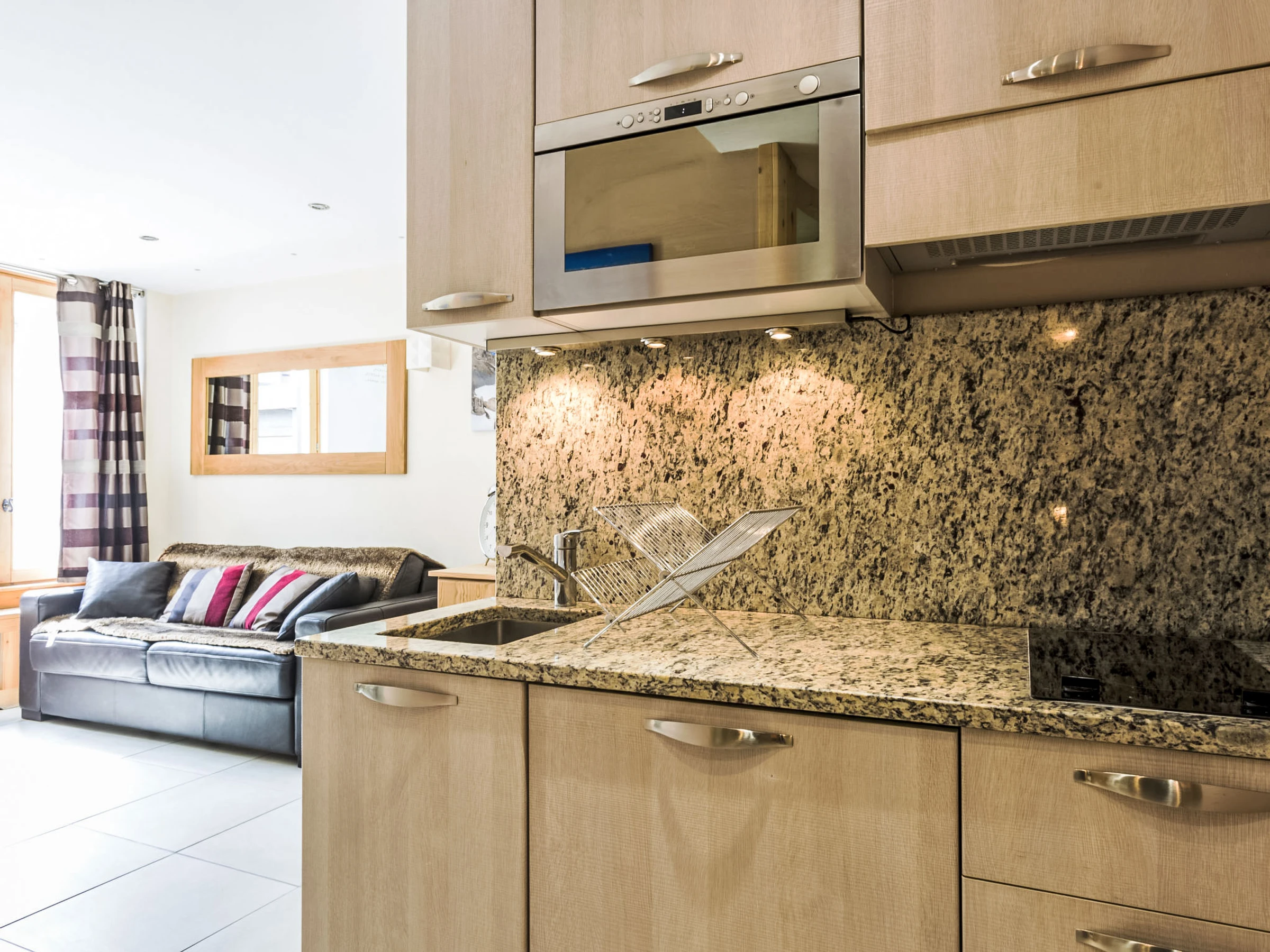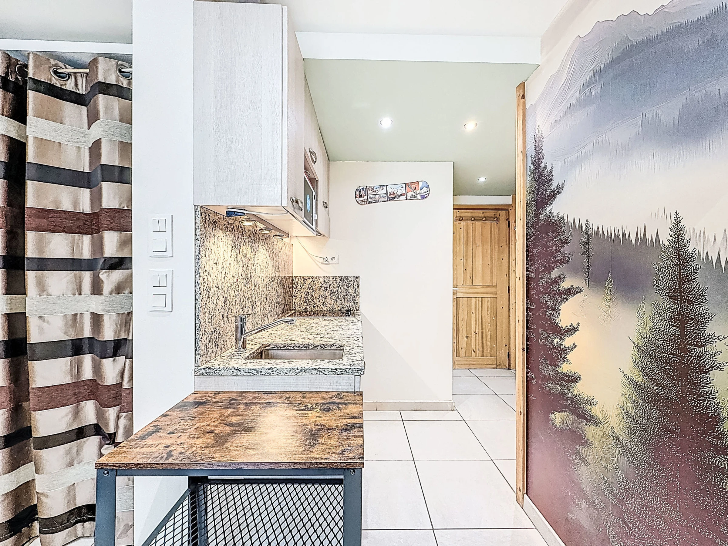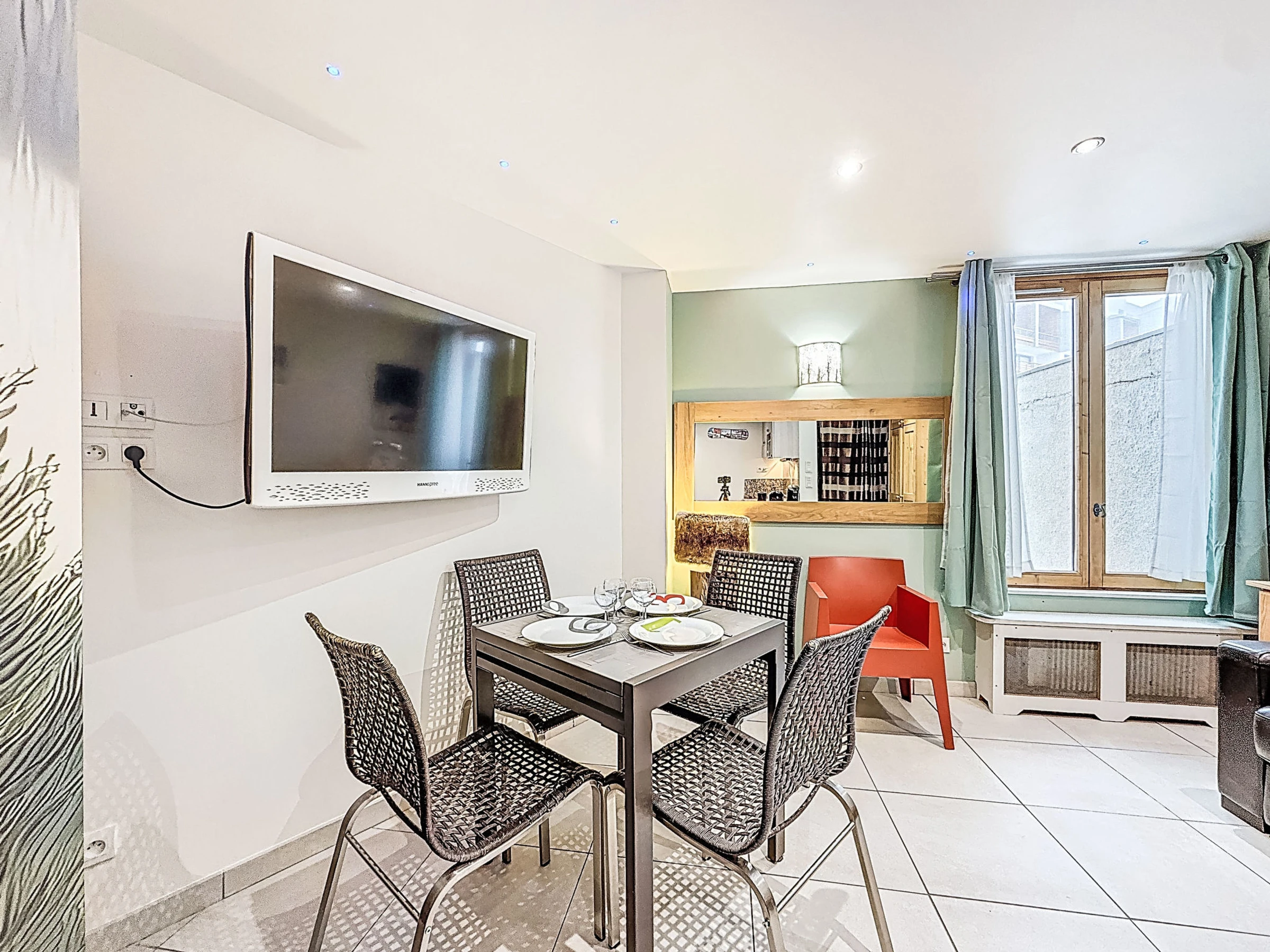 1-room studio 30 m2 on 1st floor. Fully renovated, practical and comfortable furnishings: living/dining room with TV and international TV channels. Entrance hall with 1 x 2 bunk beds (80 cm, length 190 cm), TV. Sleeping alcove with 1 french bed (140 cm), TV. Kitchenette (2 ceramic glass hob hotplates, microwave, grill, electric coffee machine, Capsules for coffee machine (Tassimo) extra, raclette grill). Shower, sep. WC. Facilities: Internet (WiFi, free). Please note: non-smokers only. Smoke alarm. Instead of an enclosed bedroom, some sleeping areas are located in an open-plan area (gallery, alcove, etc.). Offer by a private individual according to  Art. 155, IV of CGI.