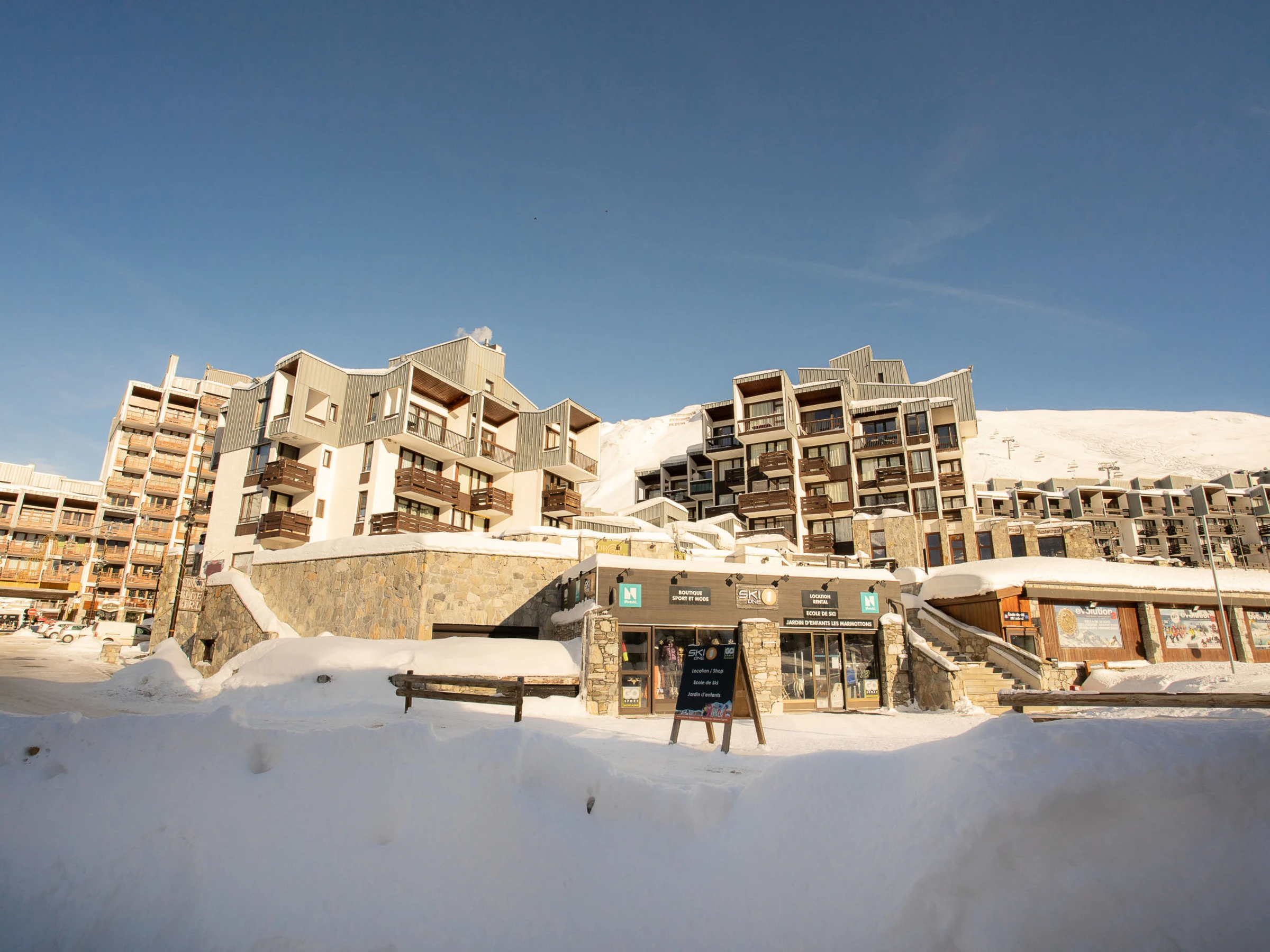 Tignes Val Claret: 100m from the centre, hairdresser, sports shop and restaurant in the building. Residence "Le Sefcotel (Val Claret)". 30 m from the skiing area. In the complex: restaurant, bar, lift, central heating system. Public car park at 200 m, extra. Grocery, supermarket 100 m, restaurant, bar 50 m, bakery 100 m, bus stop 500 m. Cycle lane, skisport facilities, slopes, ski rental, ski school, sled run 50 m. Nearby attractions: Golf du Lac de Tignes 200 m, centre sportif Tignes Espace 1 km, piscine/sauna 1 km. Well-known ski regions can easily be reached: TIGNES VAL D'ISERE 50 m. Hiking paths: Parc National de la Vanoise. Please note: groups of teenagers on request only. Ski bus (free of charge). In case of good snow conditions, the house is accessible on skis. Nightclub/disco in the residence. Additional accommodations can be booked. Property ref. fr7351.300 is situated on the same property.