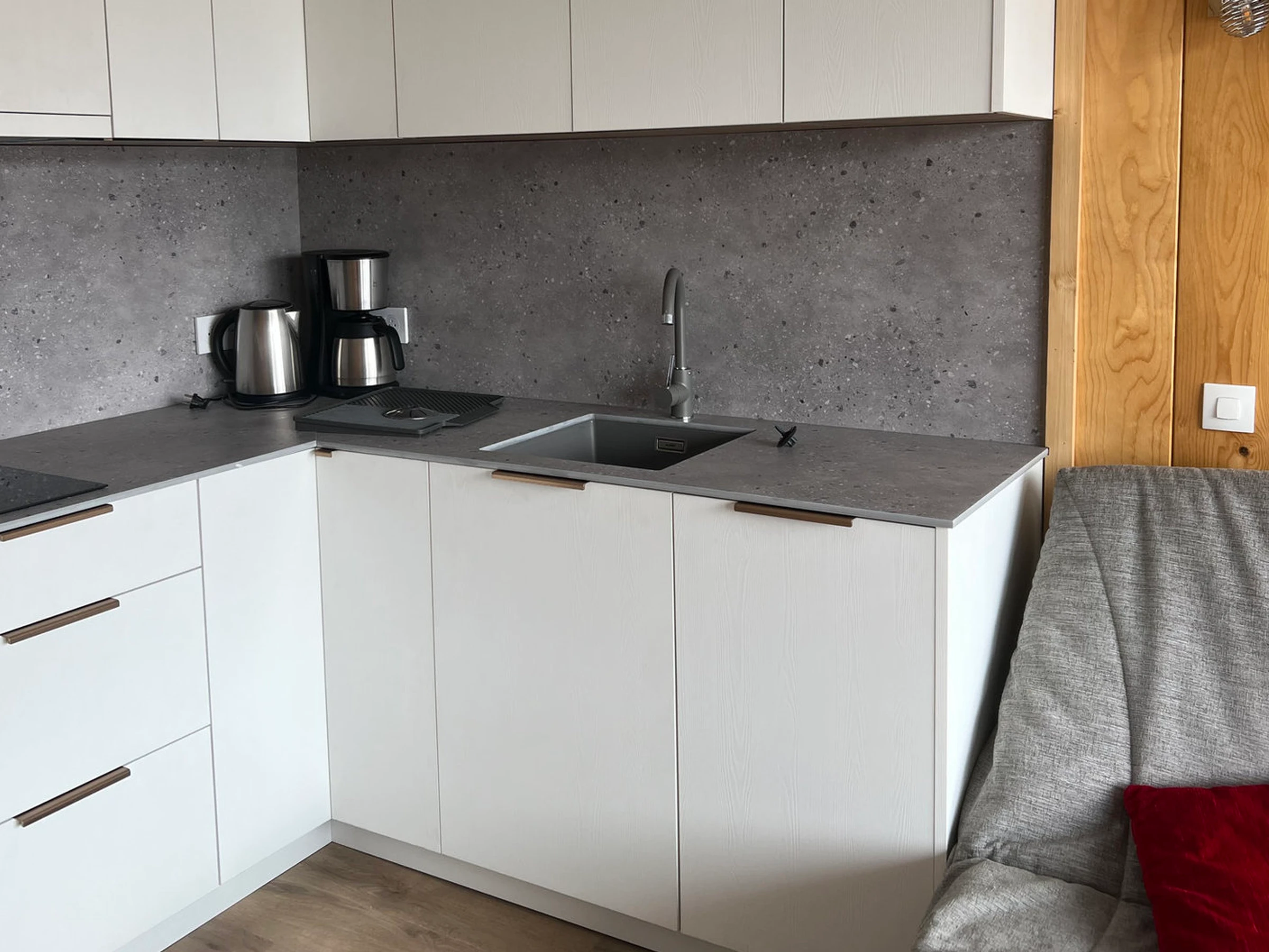 - Kitchenette with: Refrigerator, Dishwasher, 1 Oven/micro-waves, 2 Ceramic glass cooktop.