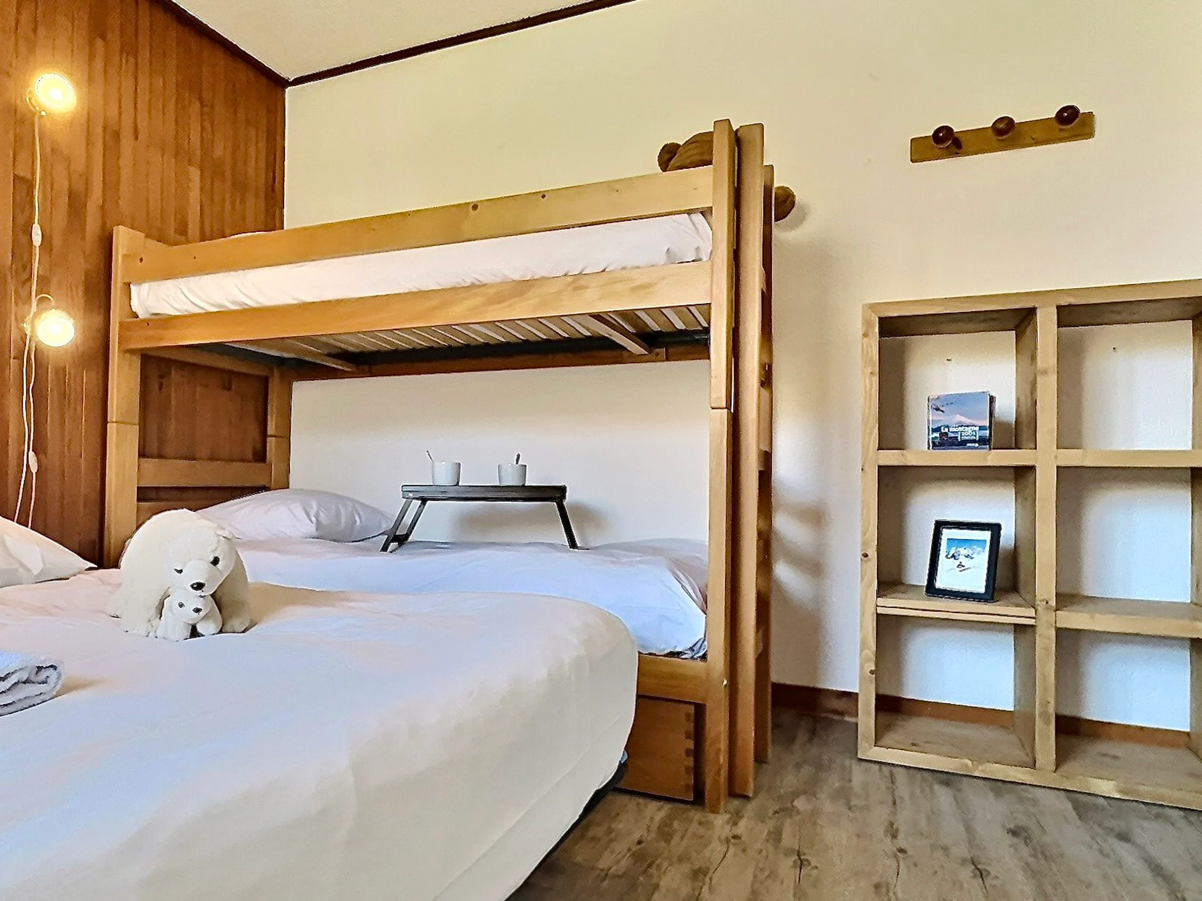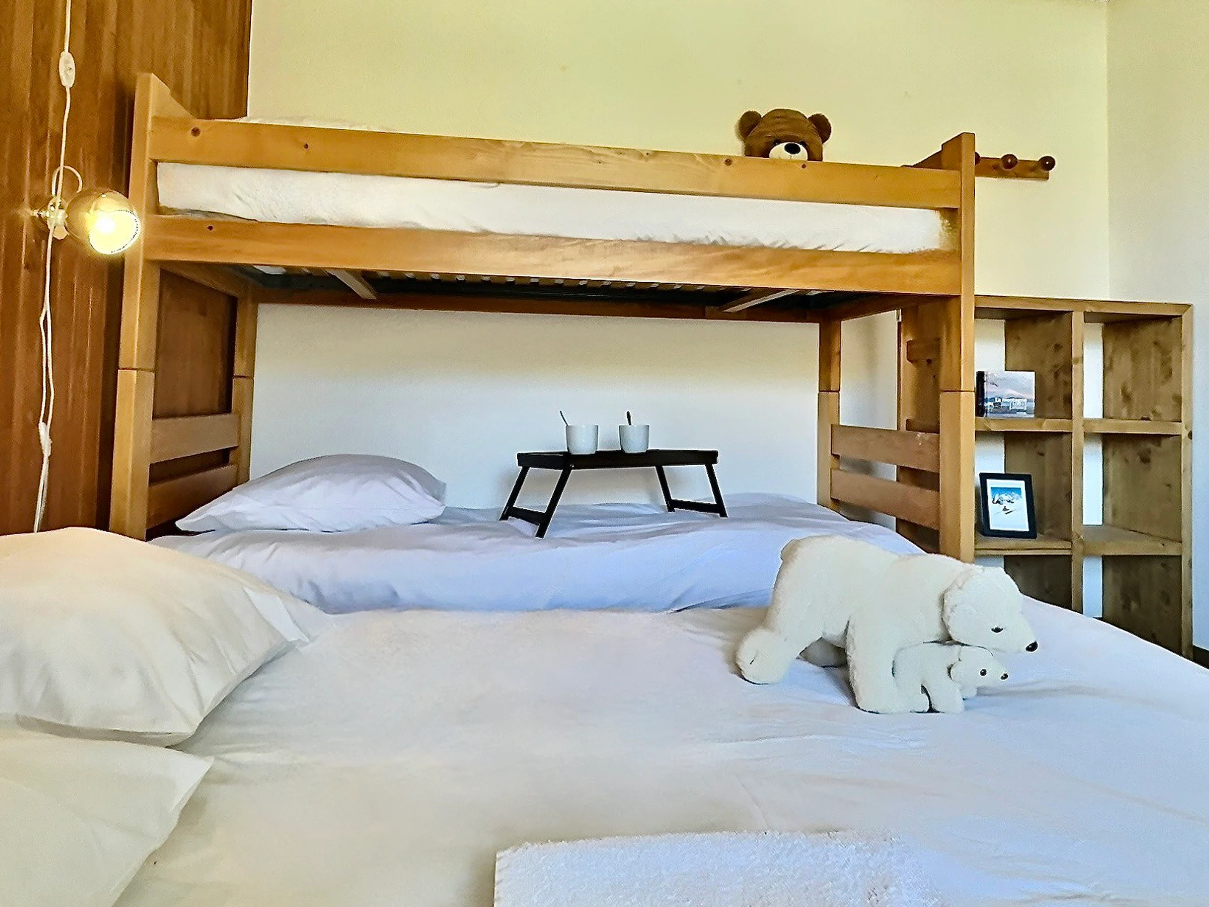At your disposal 1 double bed (140) and a set of bunk beds (90) in the bedroom.