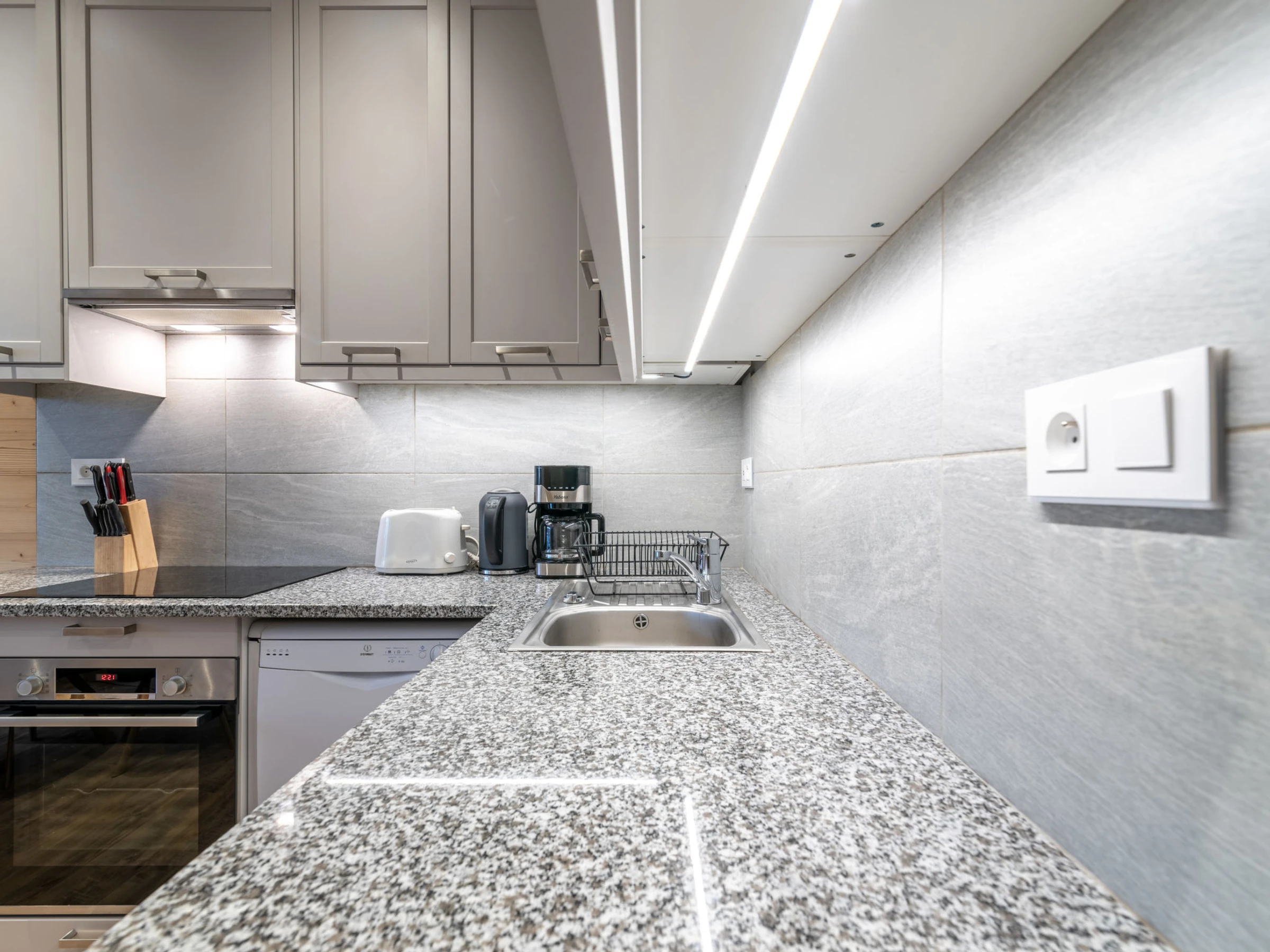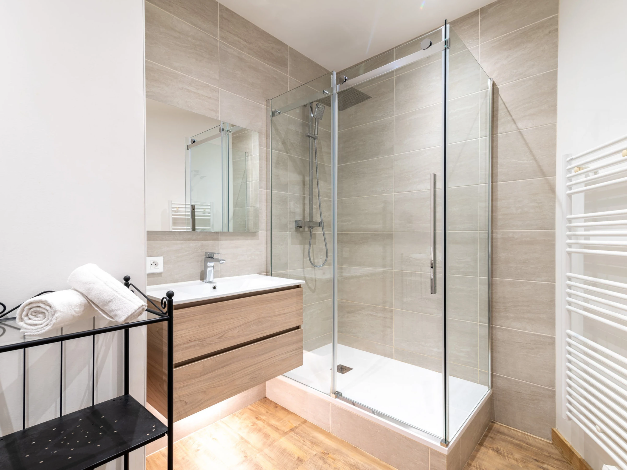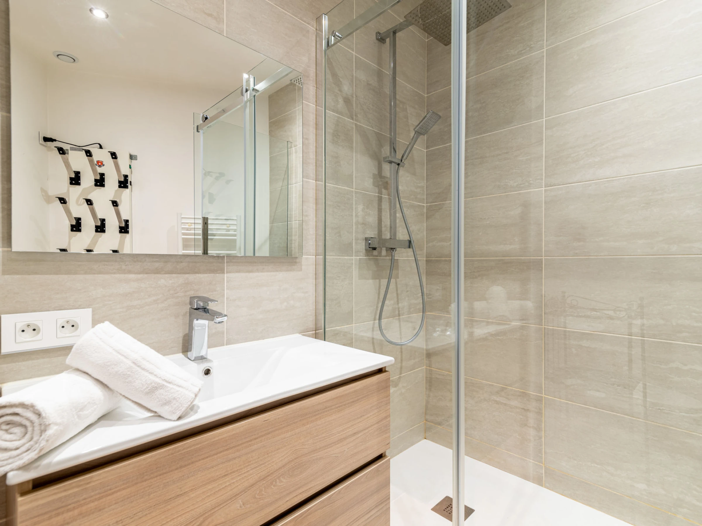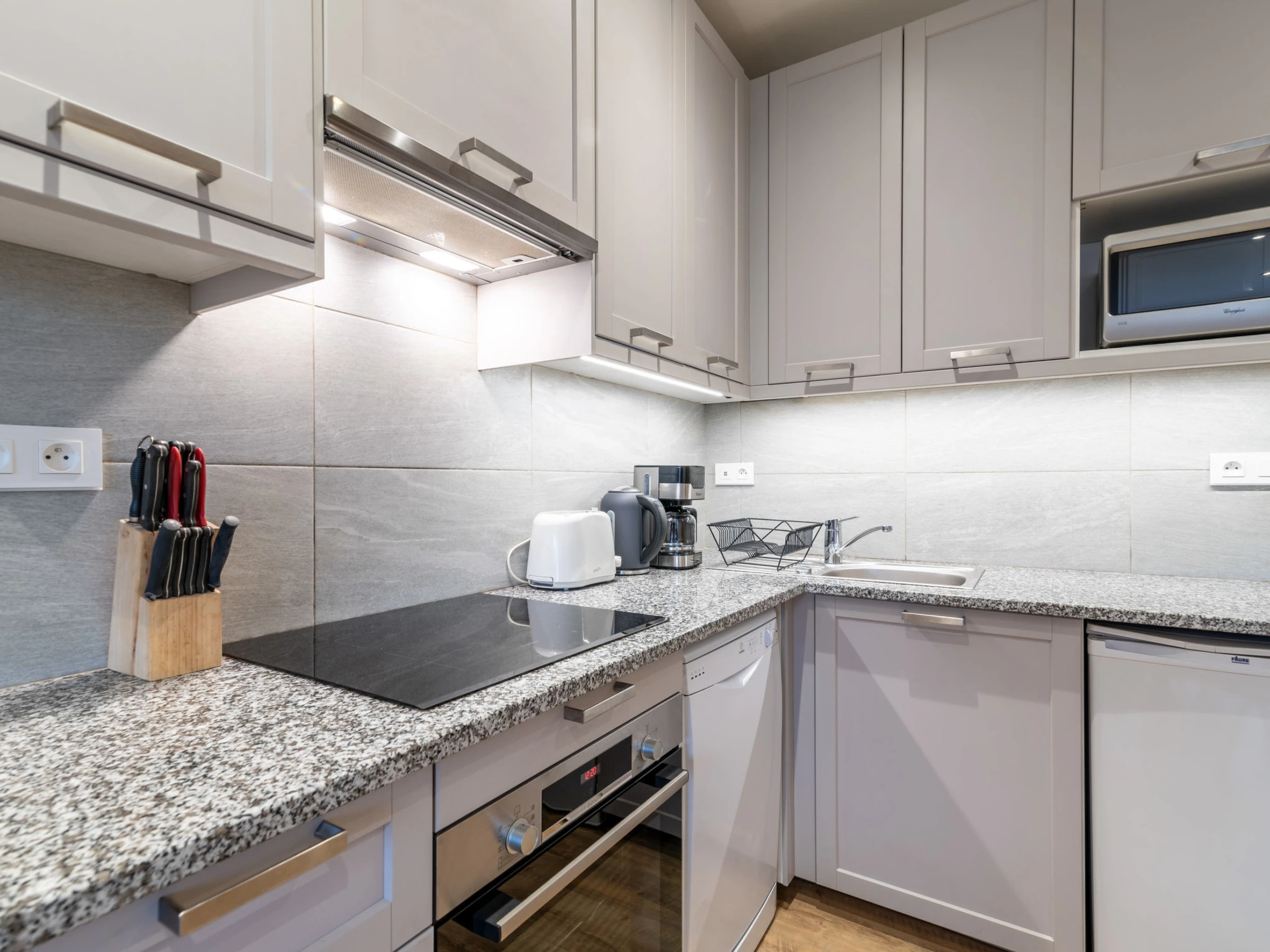 2-room apartment 42 m2. Practical and beautiful furnishings: living/dining room. 1 room with 2 beds (80 cm, length 190 cm). Sleeping alcove, 2 bunk beds (80 cm, length 190 cm). Open kitchen (dishwasher, 4 induction hot plates, toaster, kettle, microwave, electric coffee machine). Shower/WC. Electric heating. Small balcony, west facing position. Facilities: Internet (WiFi, free). Parking (roofed, 1 car), height 180 cm. Please note: non-smokers only. Smoke alarm. Instead of an enclosed bedroom, some sleeping areas are located in an open-plan area (gallery, alcove, etc.). Offer by a private individual according to  Art. 155, IV of CGI.
