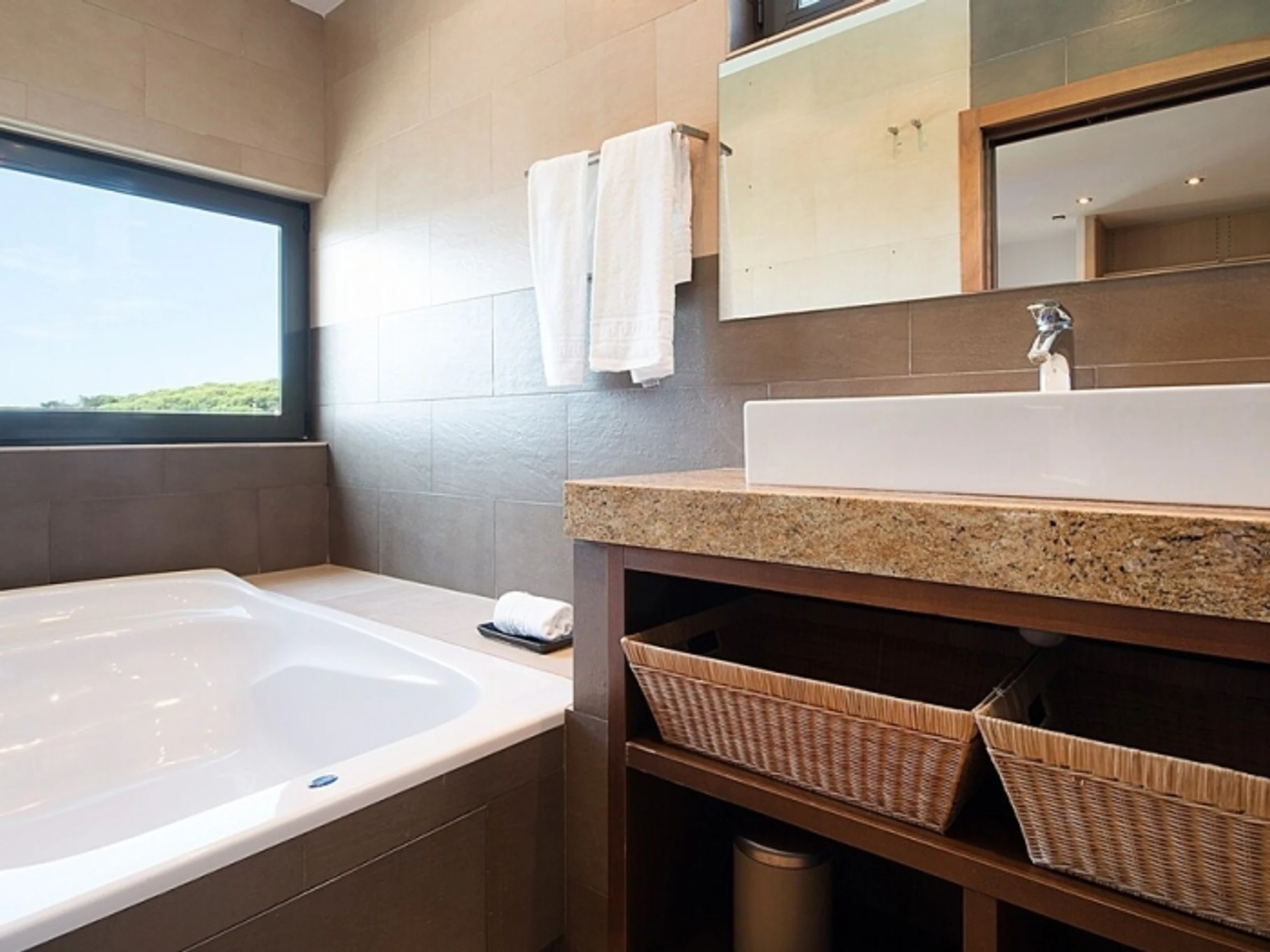 Extraordinary modern villa, situated in prestigious town area of Torredembarra. The property has unbeatable views of the Mediterranean Sea and the lighthouse, giving this villa the idyllic character of your vacation. The large outdoor spaces of the villa, have been combined natural stone, and a beautiful lawn next to the pool, from it we have one of the best views of the area. The Villa has air conditioning in the living room and some of the bedrooms , heating, audio equipment - TV, alarm, Wi-Fi and automated awnings as well as an elegant set of furniture and outdoor equipment. Inside the villa is distributed in 4 double rooms on the main floor of the house and 2 bathrooms (one in the suite with bath and shower, and another bathroom that share the other rooms.) There is 1 double room on the top floor with the airconditionner and with sea views and exit to large terrace .. Spacious living room with large windows facing the sea and exit to the terrace, presided over by elegant white columns. The kitchen, gourmet and with ample sea views, is fully equipped with first class appliances and annexed service area. The property has an outdoor area to comfortably park 2 vehicles. There is an indoor parking space. On the ground floor there is a double apartment with separate bathroom, this apartment has direct access to the garden and the pool. The apartment has no air conditionning, but fun. The house has two swimming pools: one outdoor and with spectacular views of the sea, and another small heated pool, which is part of the gymnasium room, with numerous machines for weight training and cardio. The Torredembarra Yacht Club and the best restaurants, as well as its award-winning beach are within walking distance of the villa.