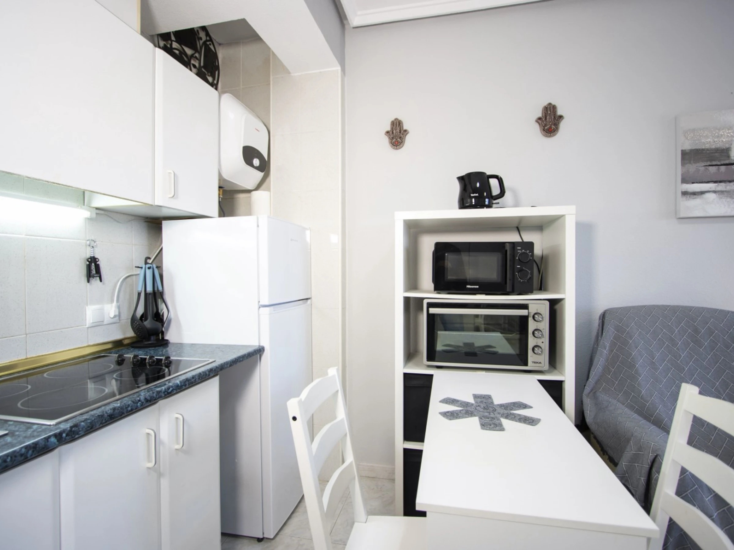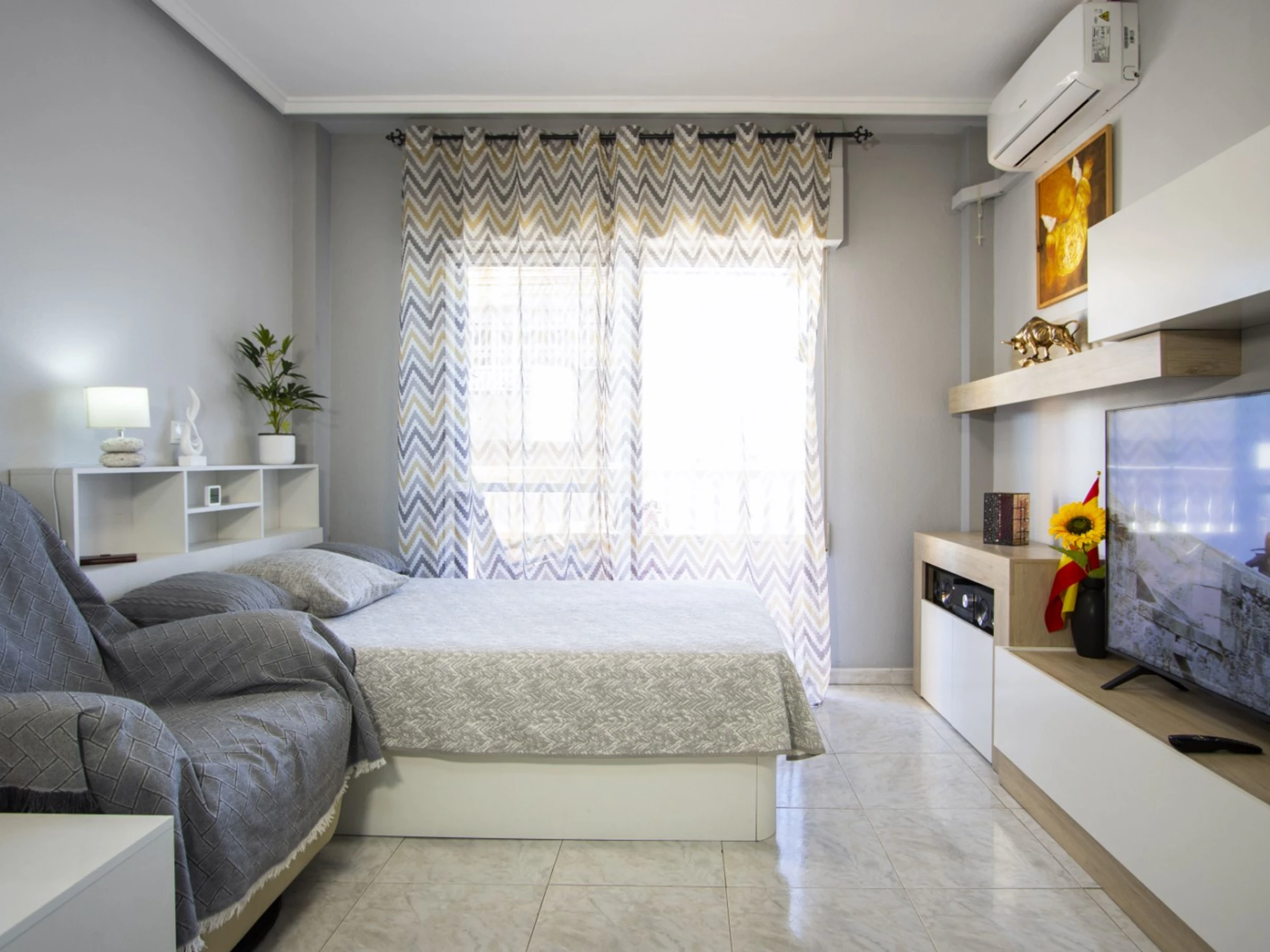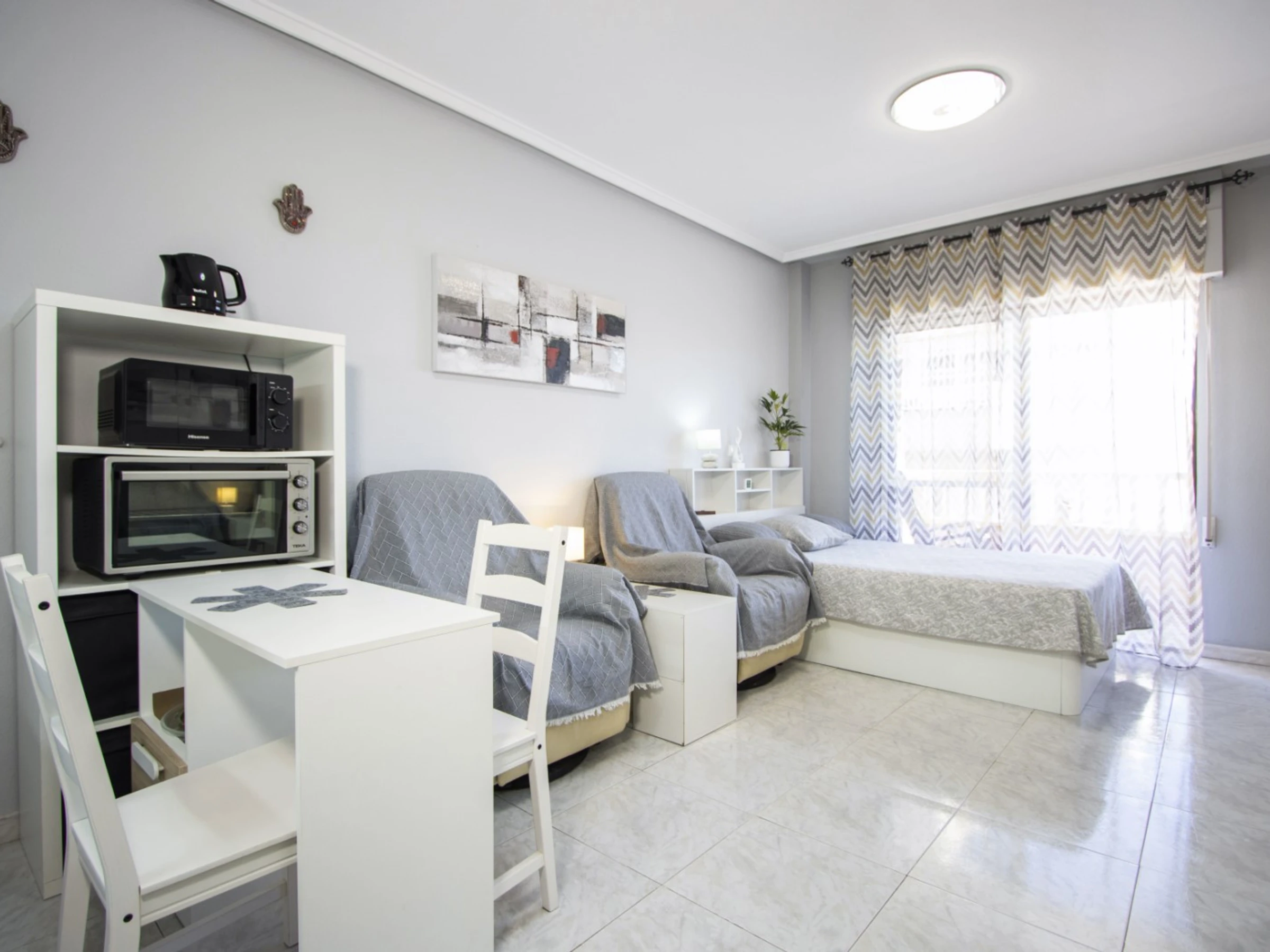 We offer for rent a cozy bright studio apartment in the city center! The 36 m2 apartment consists of a living room combined with a kitchen, a bathroom and a balcony. There is everything you need for living and recreation: furniture, household electrical appliances, dishes, bed linen and towels. Installed air conditioning. TV Spanish, wireless Internet. The area has a well-developed infrastructure. The network supermarket "ALDI" is located 250 meters, "Consum" 350 meters. The nearest bar is less than 50 meters away! To the sea and Acequion beach a little more than 1 kilometer, to Del Cura beach about one and a half kilometers. Accommodation option - 2 people (no animals!). Smoking is only allowed on the balcony!