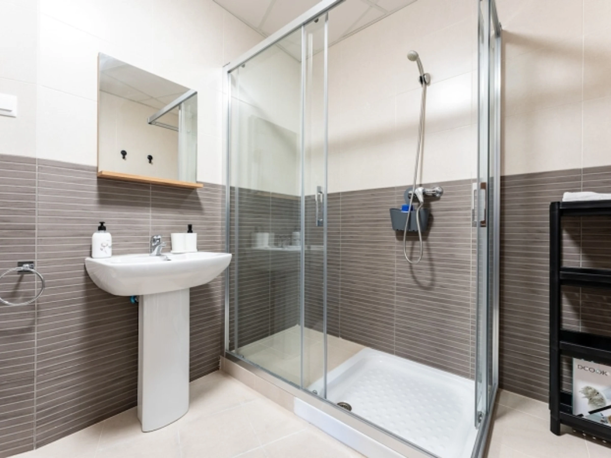 This apartment is a perfect place to enjoy a vacation near the beach. It features a fully-equipped kitchen, a spacious living room with a comfortable sofa bed, dining table.Bathrooms are stocked with shower, towels and [hidden] the surroundings, you find a wide variety of restaurants, bars, shops, and supermarkets. Also, the beach is only a few minutes walk away, allowing you to enjoy the sea and the sun at any time.