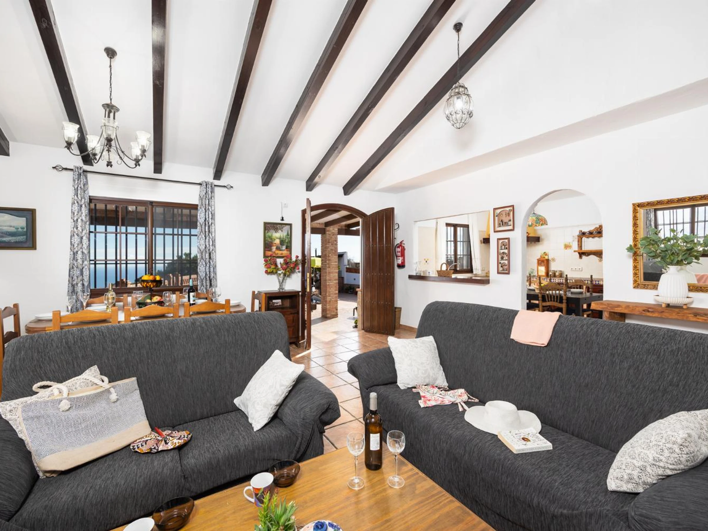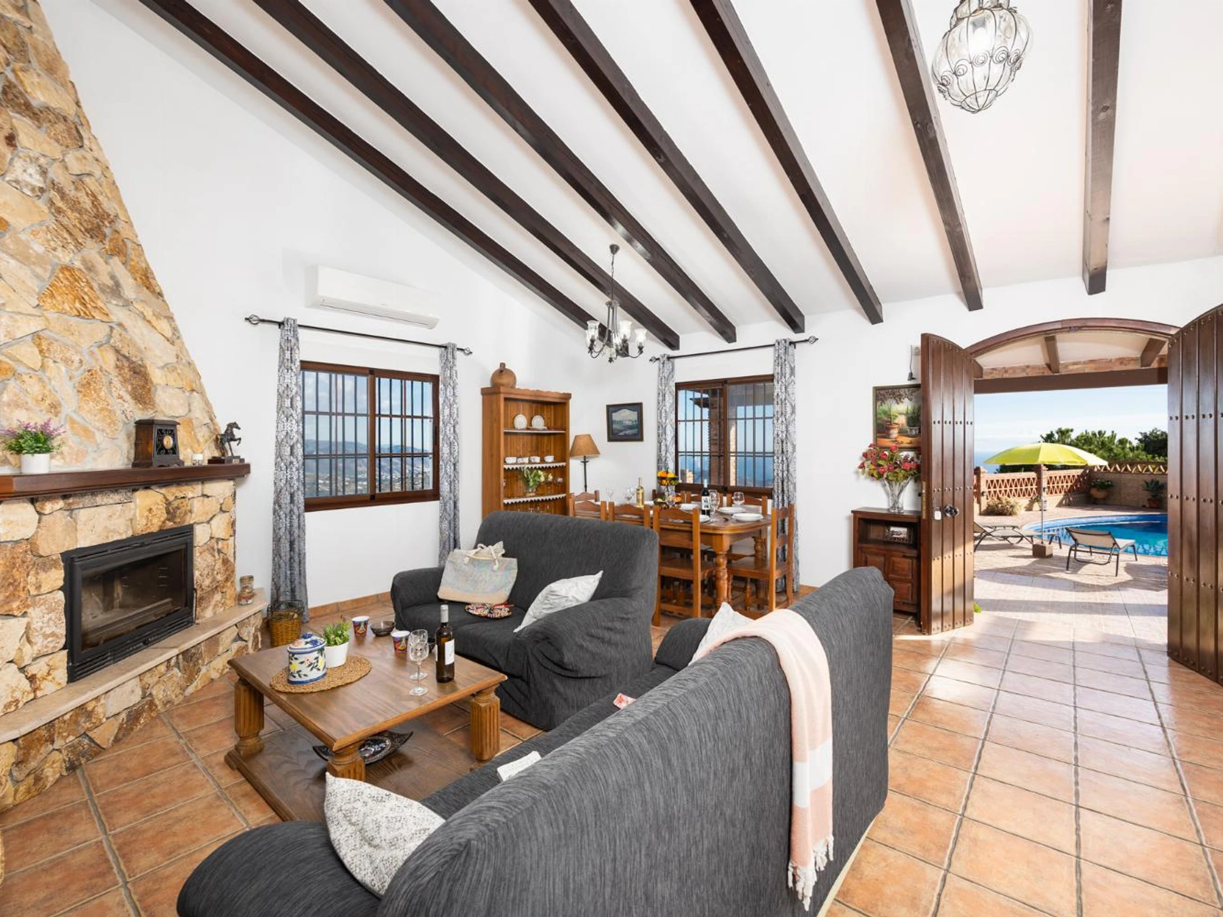 doors to the pool terrace with Sea views.