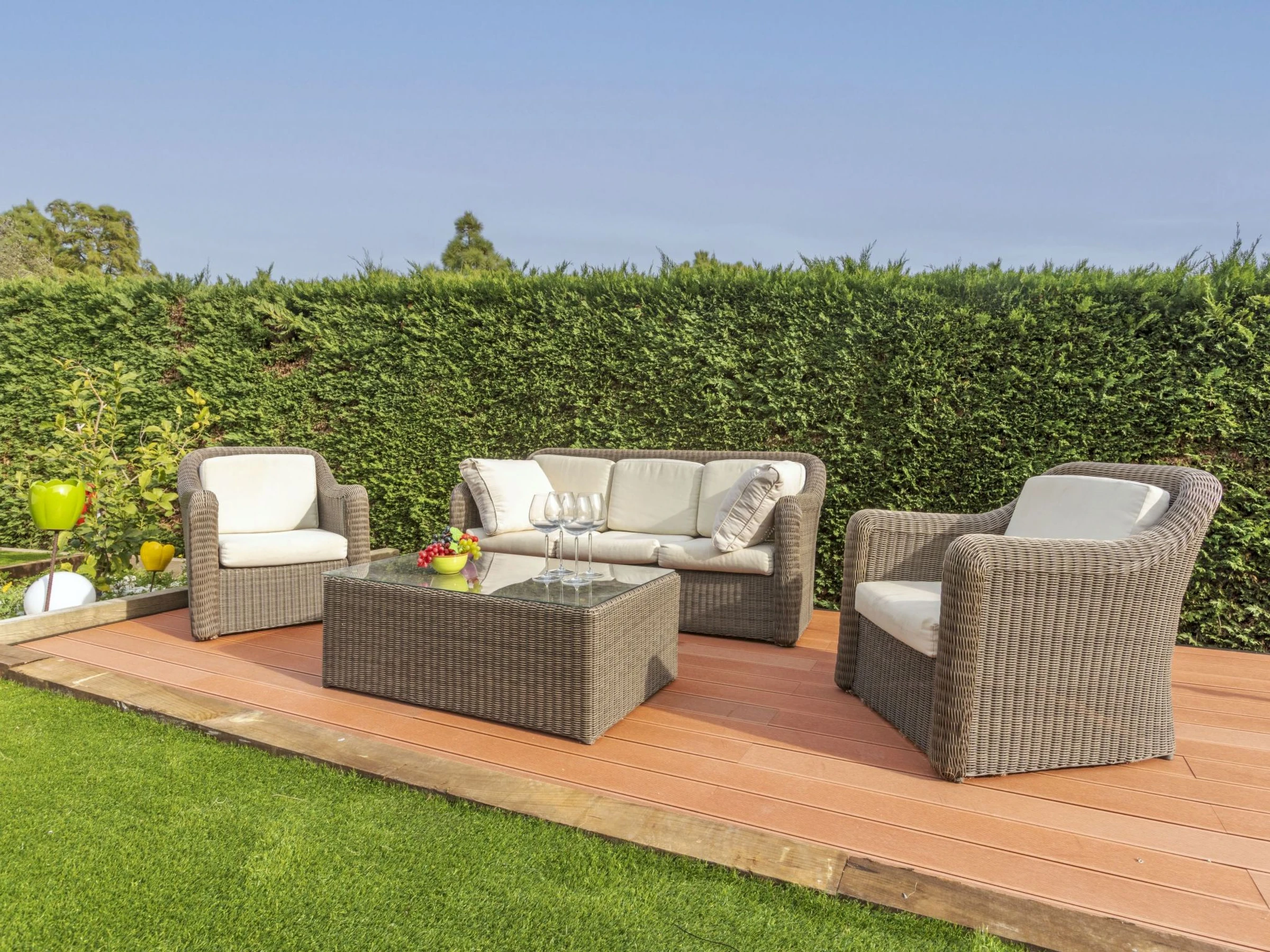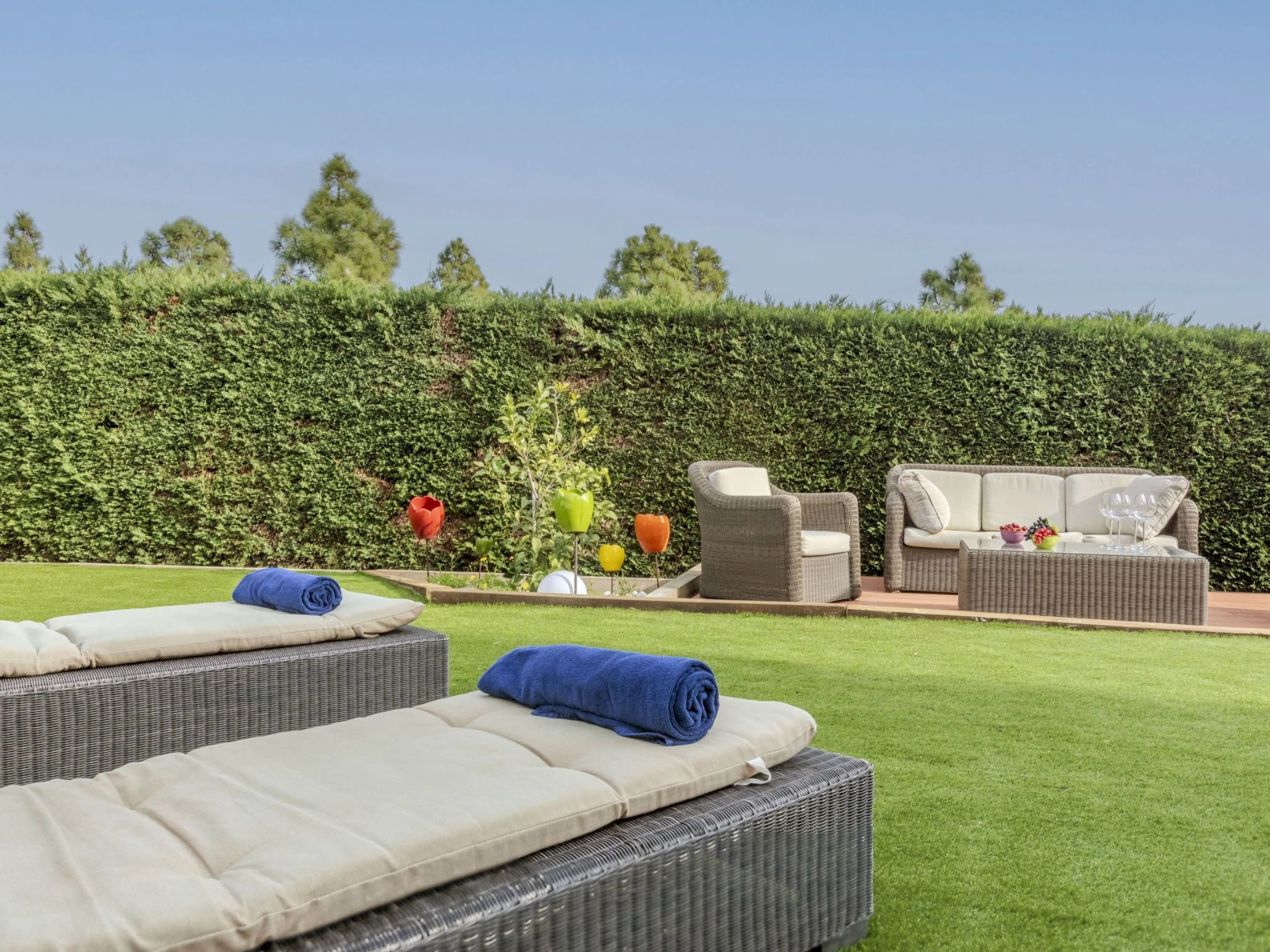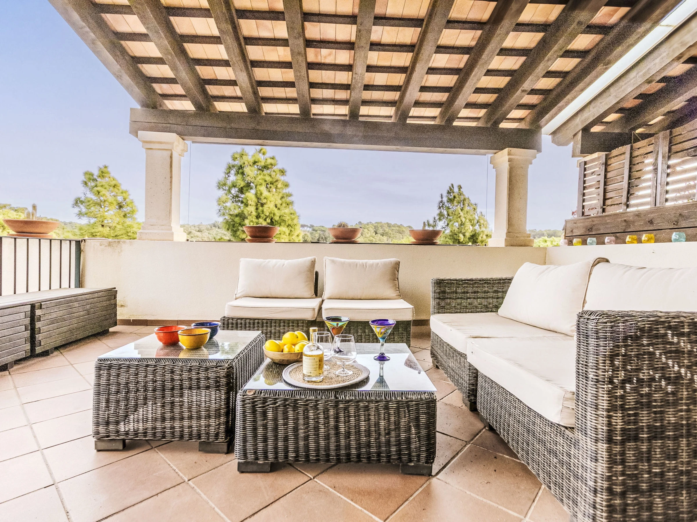 "Tiana Llevado", 4-room terraced house 123 m2 on 2 levels, north-east facing position. Spacious and bright, comfortable and rustic furnishings: living/dining room 20 m2 with dining table, satellite TV, digital TV and gas heating. Exit to the terrace, pergola. Open kitchen (oven, dishwasher, 4 ceramic glass hob hotplates, freezer, electric coffee machine). Exit to the patio. Sep. WC. Upper floor: 1 double bedroom, north facing position and east facing position with 1 french bed (180 cm, length 200 cm), bath/bidet/WC and air conditioning. Exit to the terrace. 1 double bedroom, north facing position, window onto the courtyard with 1 french bed (180 cm, length 200 cm). Exit to the patio, north facing position. 1 room with 1 bed (90 cm, length 190 cm). Exit to the patio. Bath/bidet/WC. Small balcony 15 m2, terrace, large garden 100 m2. Terrace furniture. Beautiful distant view of the sea, the valley and the countryside. Facilities: washing machine, iron, children's high chair, baby cot for up to 2 year olds, hair dryer. Internet (WiFi, free). Garage (1 car). Please note: suitable for families apartment courtyard side. TV only ES, DE. [hidden] // Reg. Nr.: ESFCTU00001702100049705800000000000000000[hidden]5