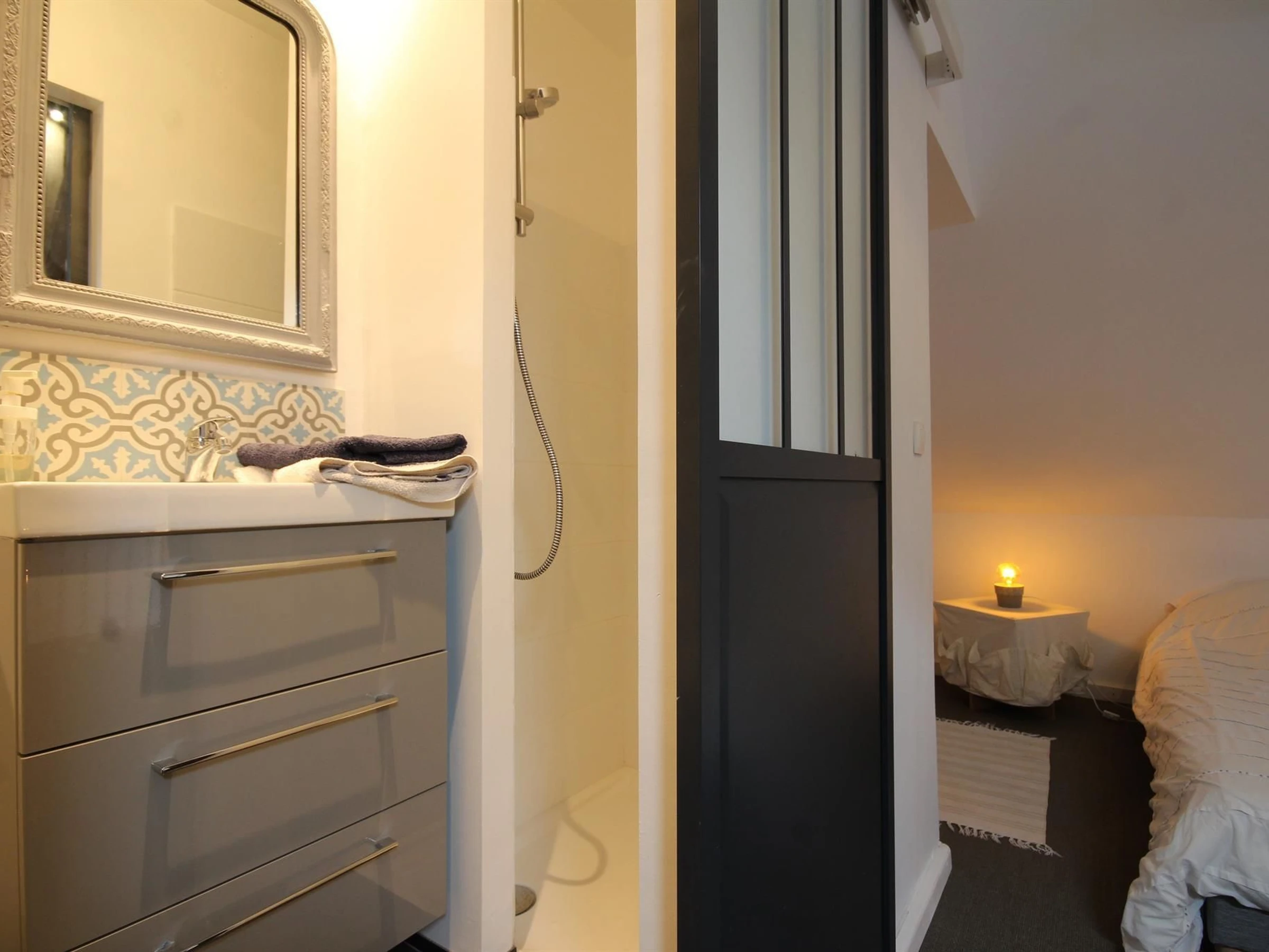 Extra bed available: €20/person. On the 1st floor, a very large family room includes a living room, a bedroom with two 90x200cm beds and its own bathroom with toilet, and a balcony. On the mezzanine, another bedroom with a 180x200cm bed and its own bathroom with toilet. No additional bedding is available.