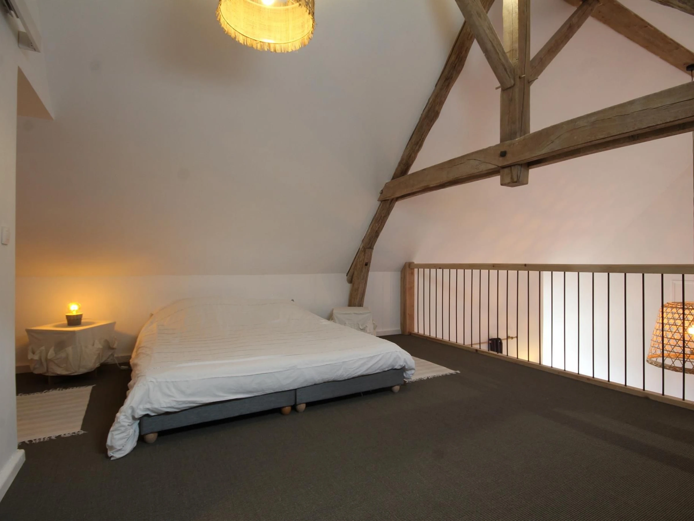 The living room is comfortable and welcoming, and the four bedrooms upstairs are spacious: 1 bedroom, "La grange," with two single beds (90 cm) and a bathroom with toilet; 2 bedrooms, "L'étang" and "Le chêne," each with a queen-size bed (160 cm), and a shower room with separate toilet; the "Cathedral" bedroom is a large family room that can accommodate four people, with a separate living room and outdoor balcony. There are two bedrooms (one with a king-size bed on the mezzanine and one with two single beds (90 cm)) and two shower rooms with toilets.