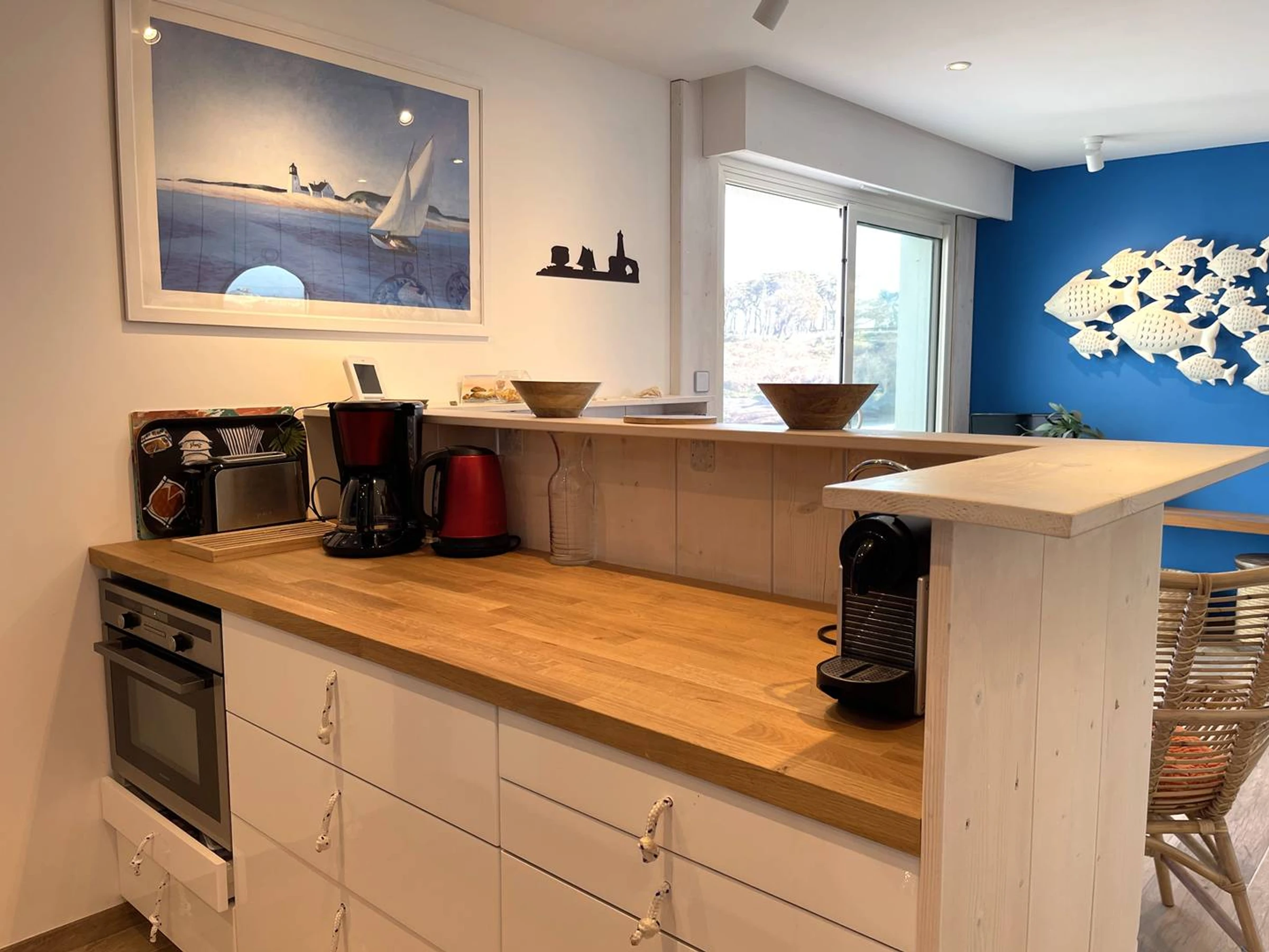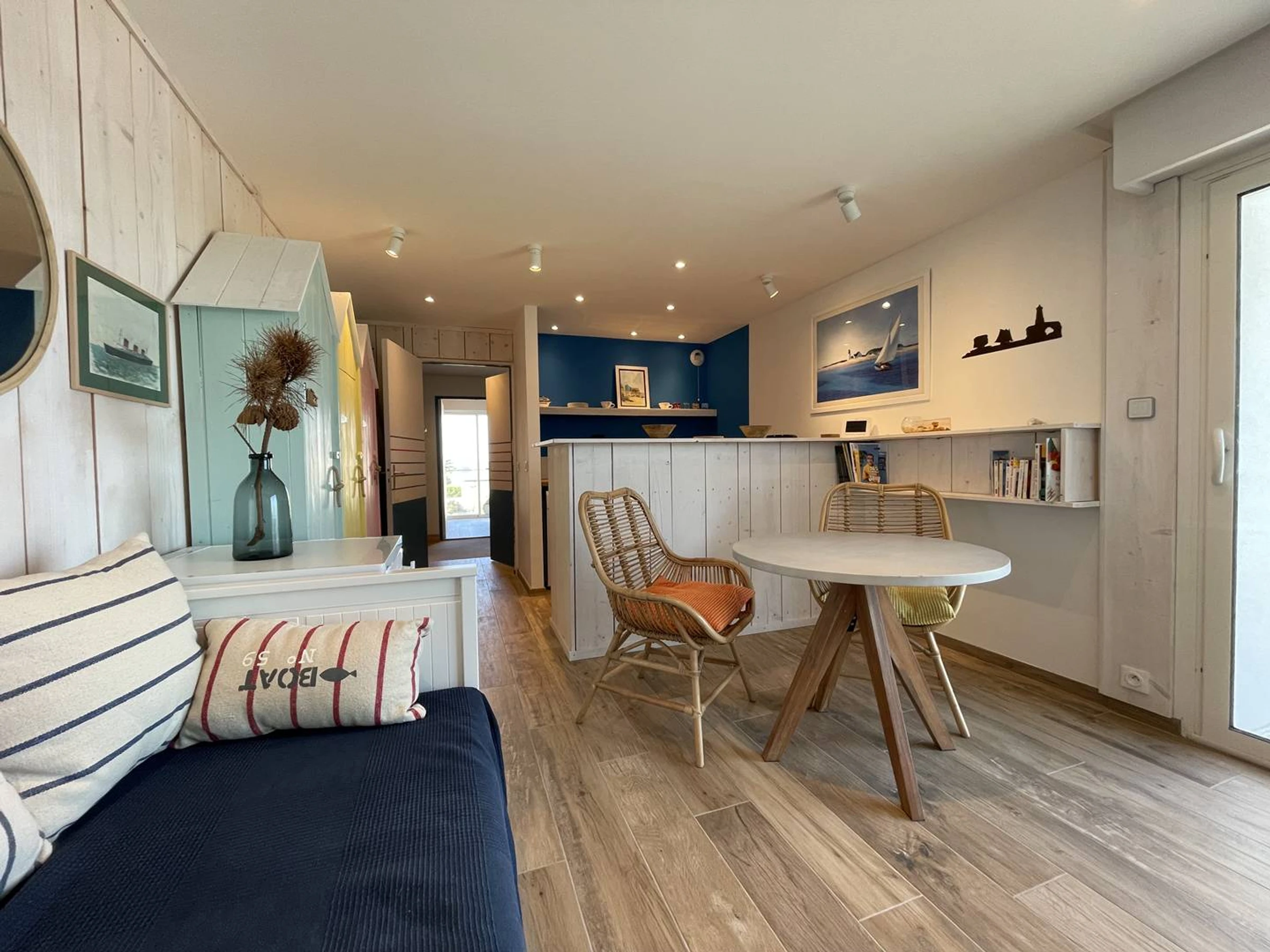 1 double bedroom for 2 people with duvet, sea view and overlooking the living room