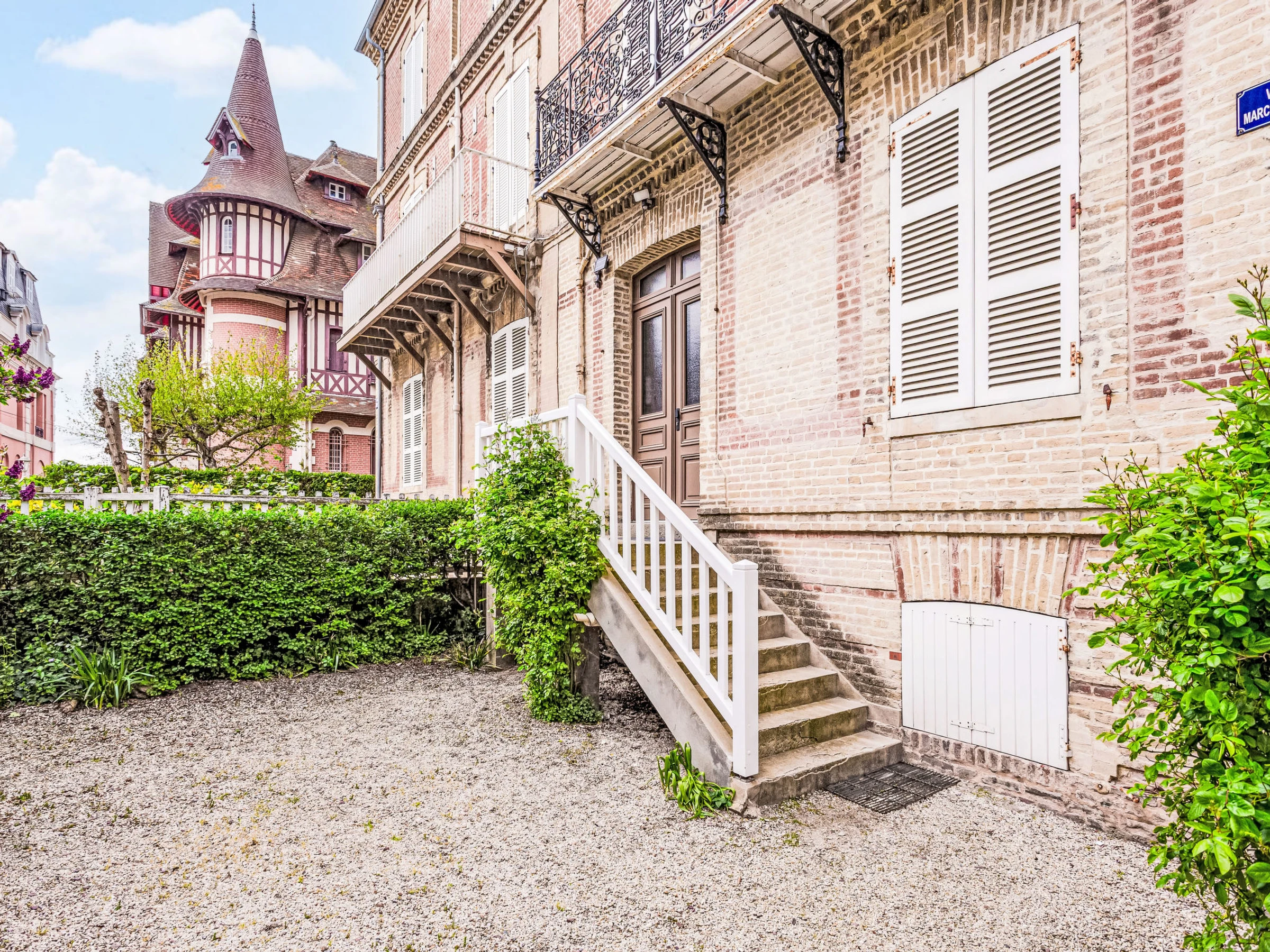 Trouville-sur-mer: Small, beautiful villa "La Chapelle", 3 storeys. In a central position, 150 m from the sea, 150 m from the beach, direct access to the beach. Supermarket, restaurant 200 m, bus stop "Casino de Trouville" 400 m, railway station "Deauville-Trouville" 1 km, sandy beach 30 m, thermal baths "Cures Marines de Trouville" 300 m. Sports harbour 200 m, sailing school 1 km, tennis 50 m. Nearby attractions: Casino de Trouville-sur-mer 450 m, Hippodrome Deauville - La Touques 3 km, Honfleur 15 km. The keys‘ handover takes place by the agency in Deauville.