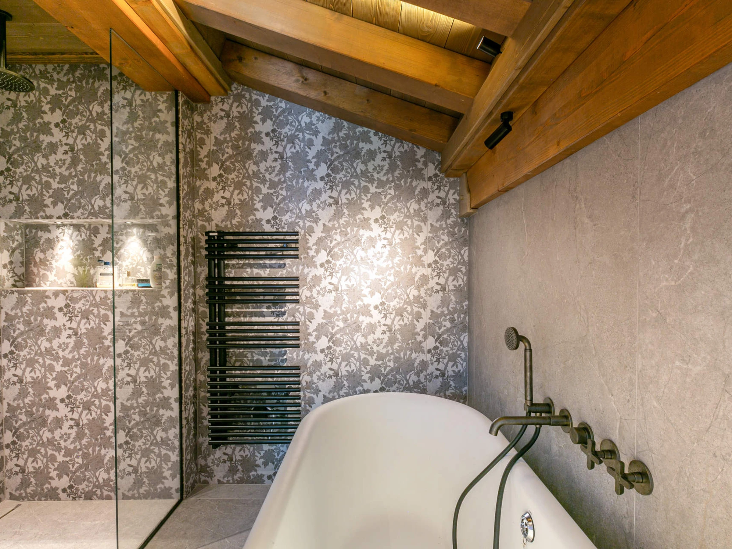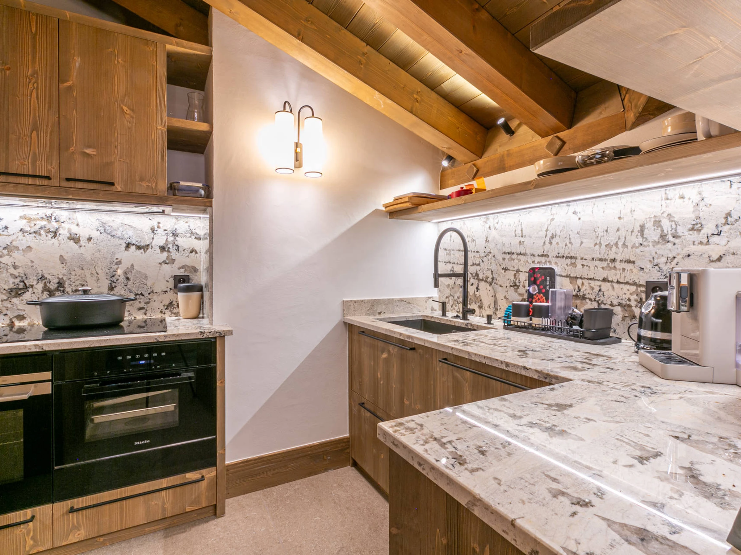 In a wood style and high quality features with South facing balcony and beautiful views onto the village and the surrounding mauntains.
