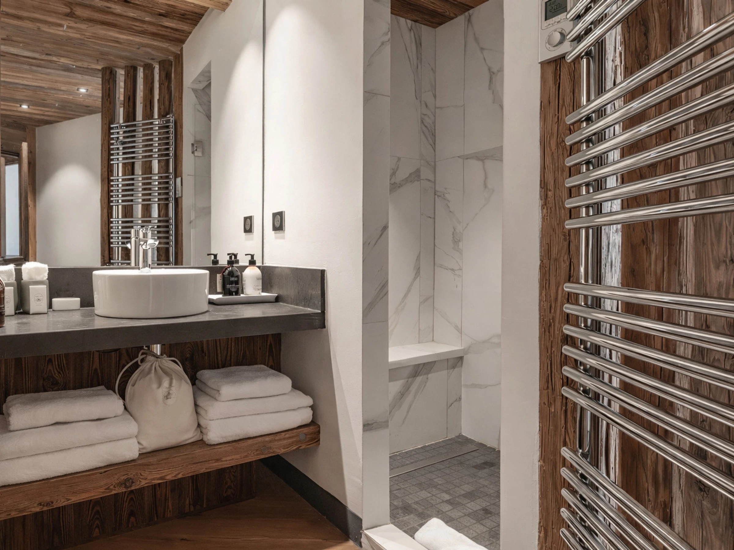 Nestling under the roofs overlooking the village of Val d'Isère, this elegant, family flat will not leave you indifferent. Furnished to a high standard and fully equipped, you can relax in one of the 5 bedrooms, all with on suit bathrooms. The wood in each room adds a touch of authenticity that will charm lovers of the mountain spirit.