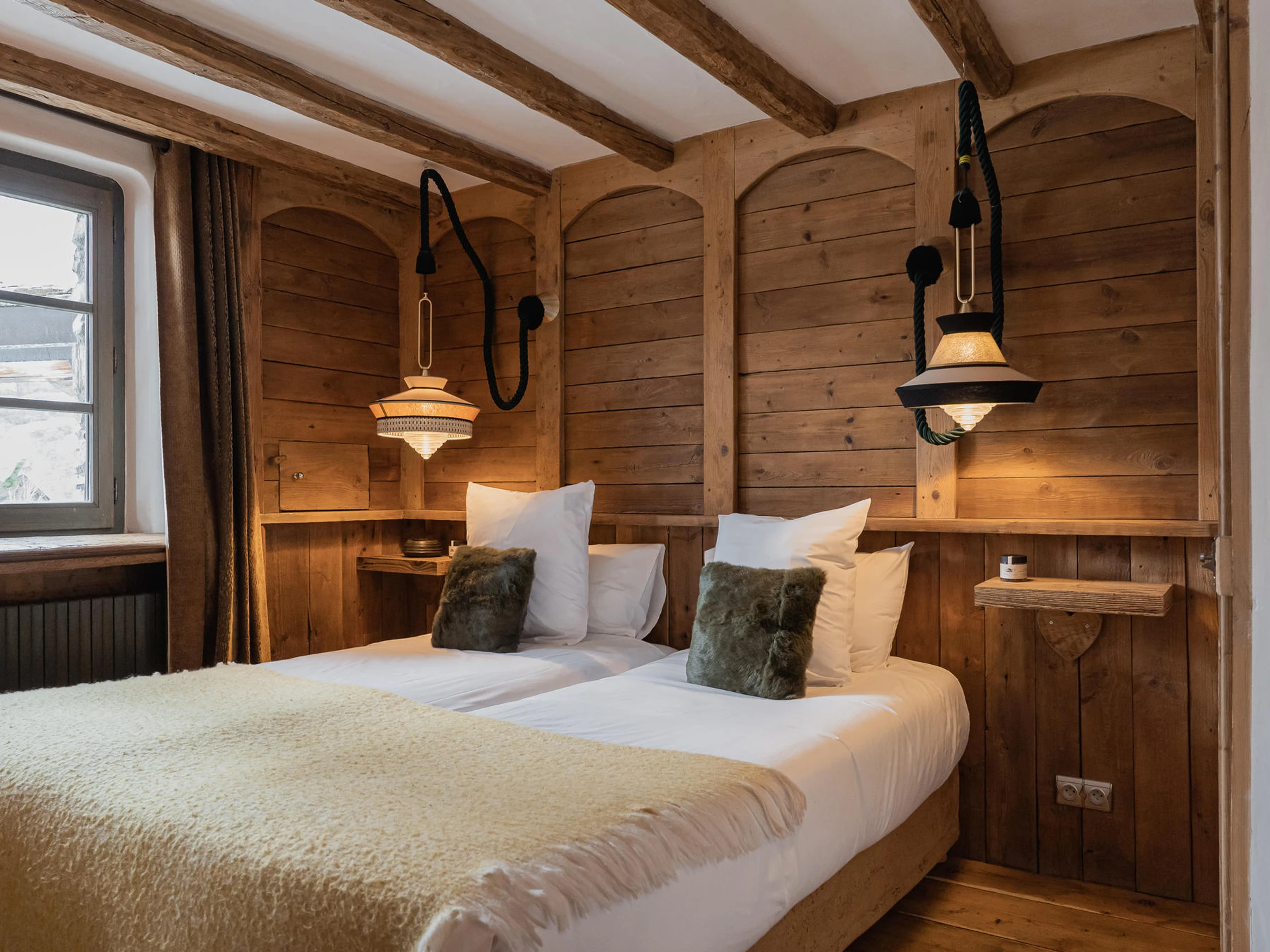 Customized welcome at the Chalet, butler at your disposal butler at your disposal 7 hours/day (120 euros per additional hour), daily continental breakfasts and tea time, daily maintenance of the chalet, change of linen in the middle of your stay, bath linen, bathrobes and beds made up on arrival, slippers and welcome products, snacks for ski departures, private concierge for the organization of your stay, test and delivery of skis to the ski room of the chalet, daily preparation of the fireplace, daily preparation of the spa for the après-ski. Chauffeur service available on request and upon availability (8:30 am-6pm).