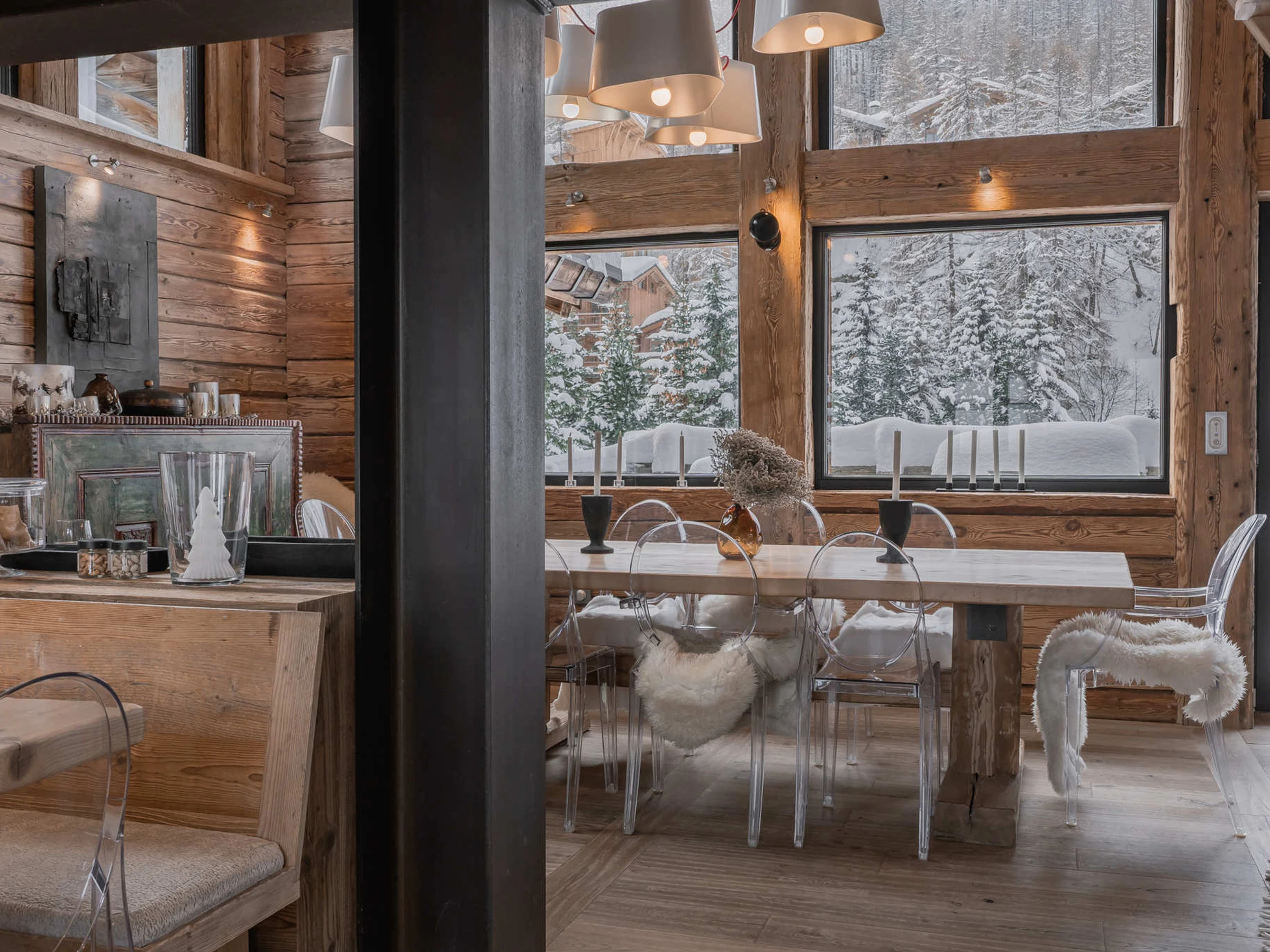 A private chef and waiter at your service, daily cooked and served breakfasts, five aperitifs with appetizers and refined cocktails, five delicious meals at the chalet (starter / main course / dessert), private shuttle at your disposal available from 8:30 am to 6:00pm and until 11 [hidden] for your evening [hidden] euros per additional journey).