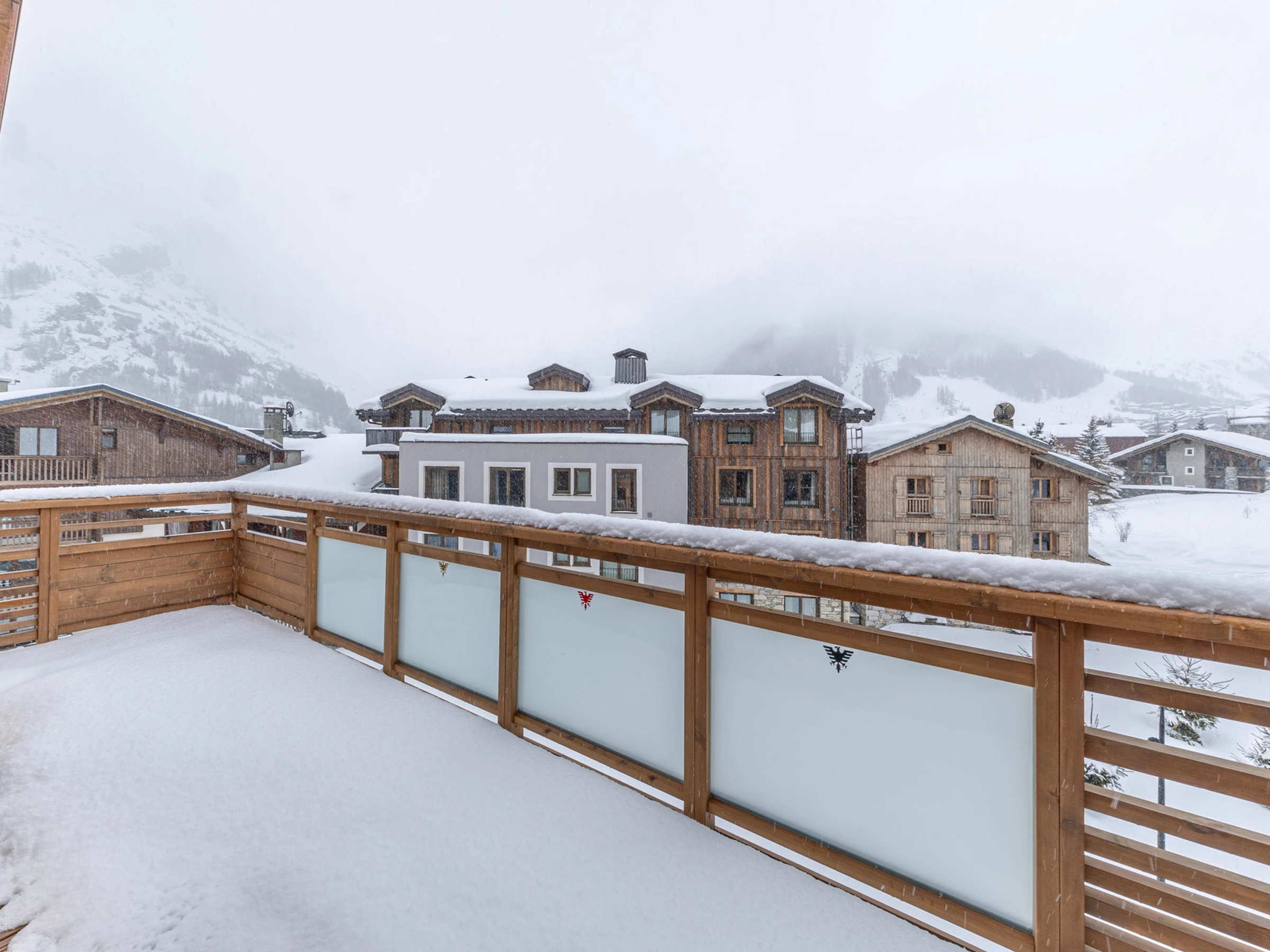 It has 3 balconies, the main one overlooking the slopes.