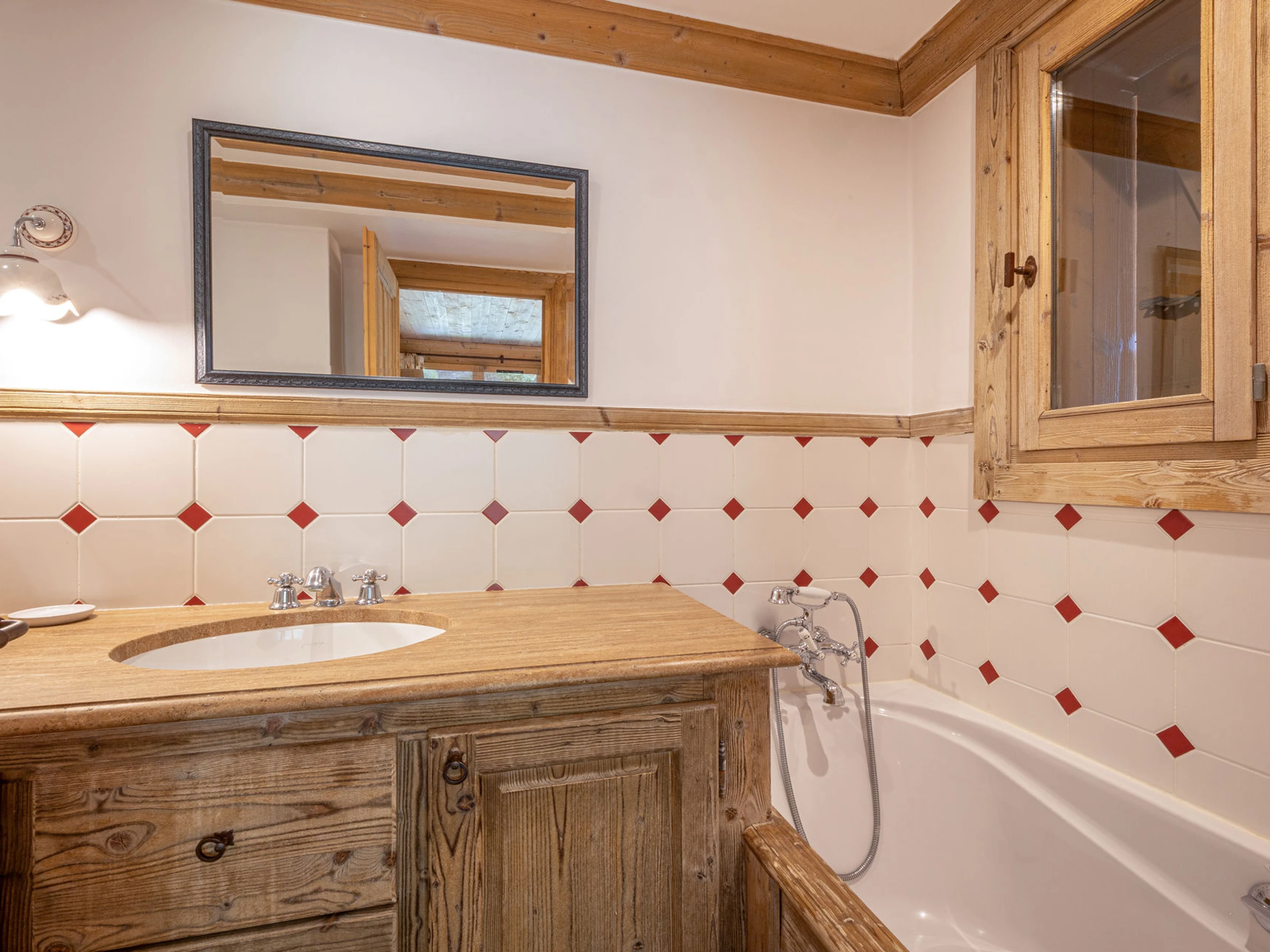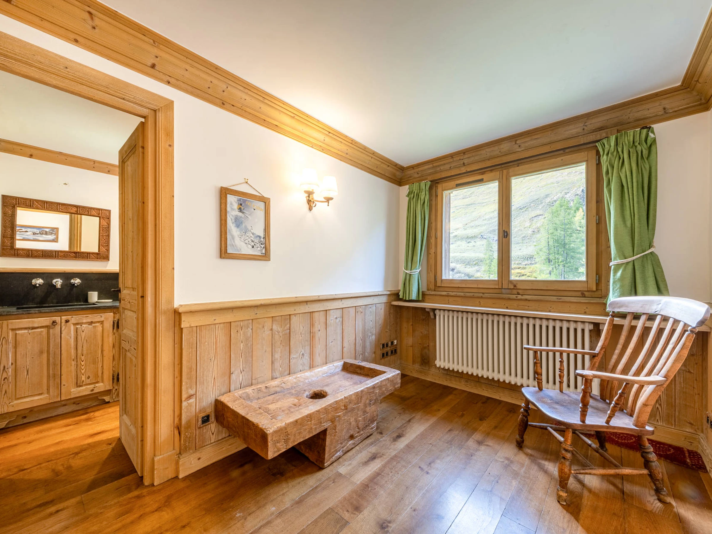 On the 2nd floor of the chalet with a large south-facing balcony