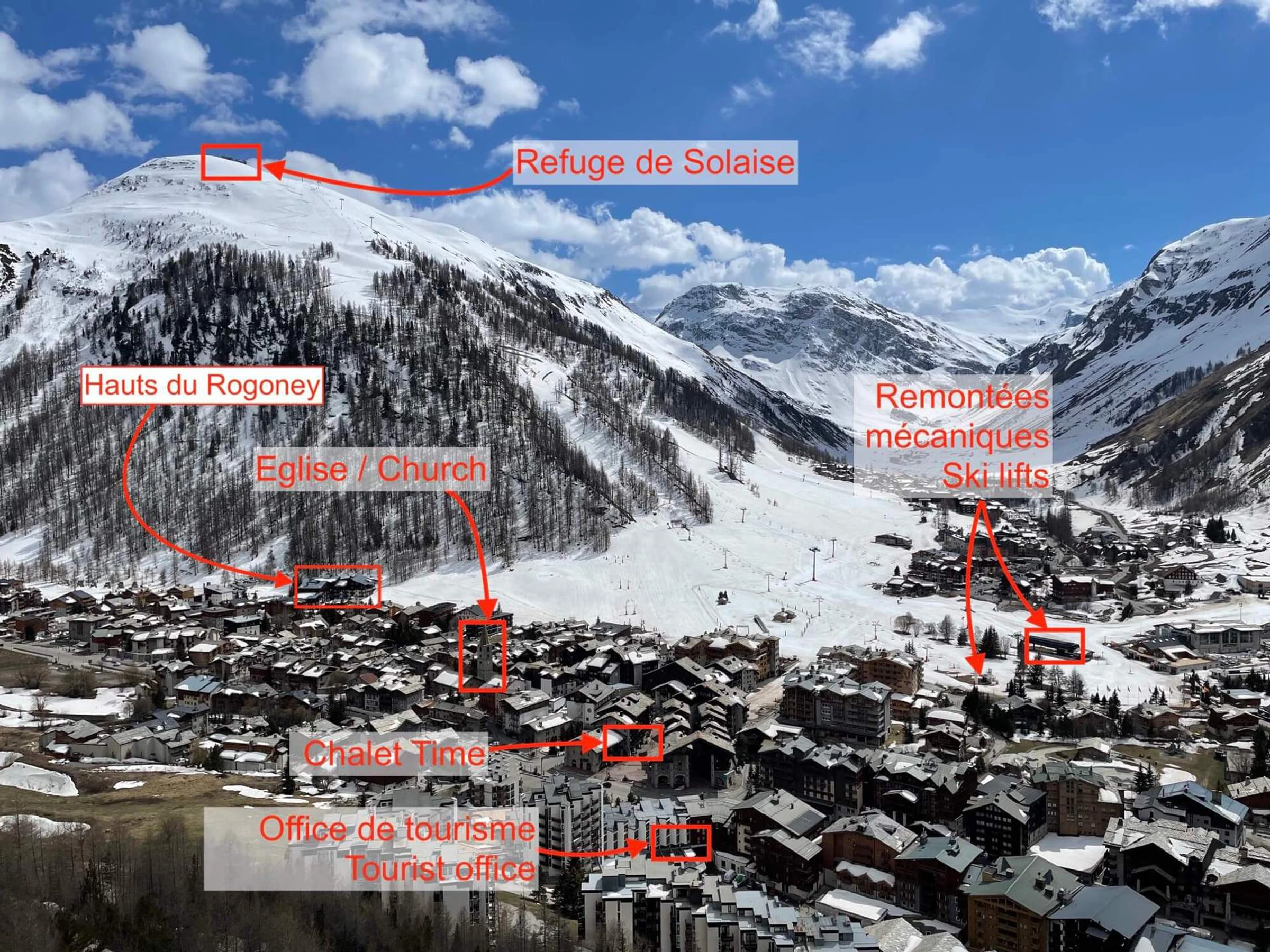 Quiet and charming neighborhood in the center of Val d'Isère, all the shops and restaurants are very close to the residence.