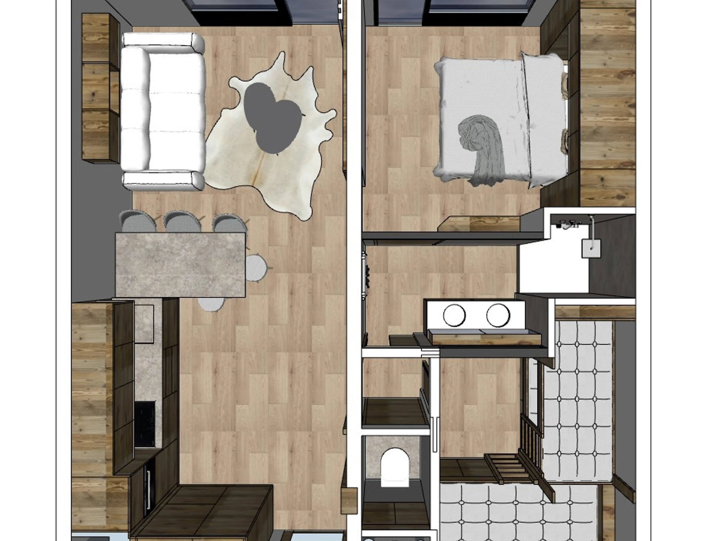 - Bedroom 1: double bed (140 x 200)
