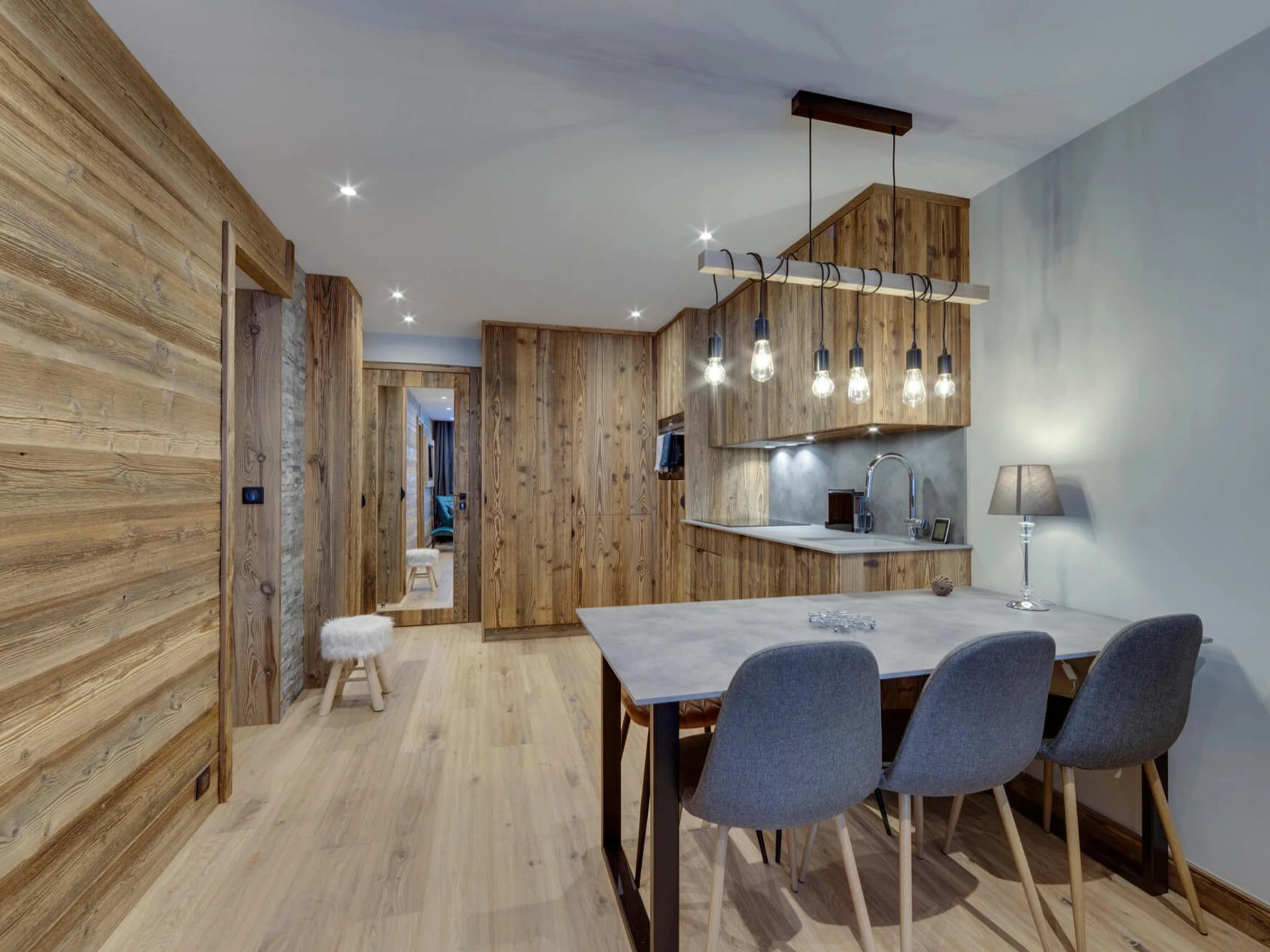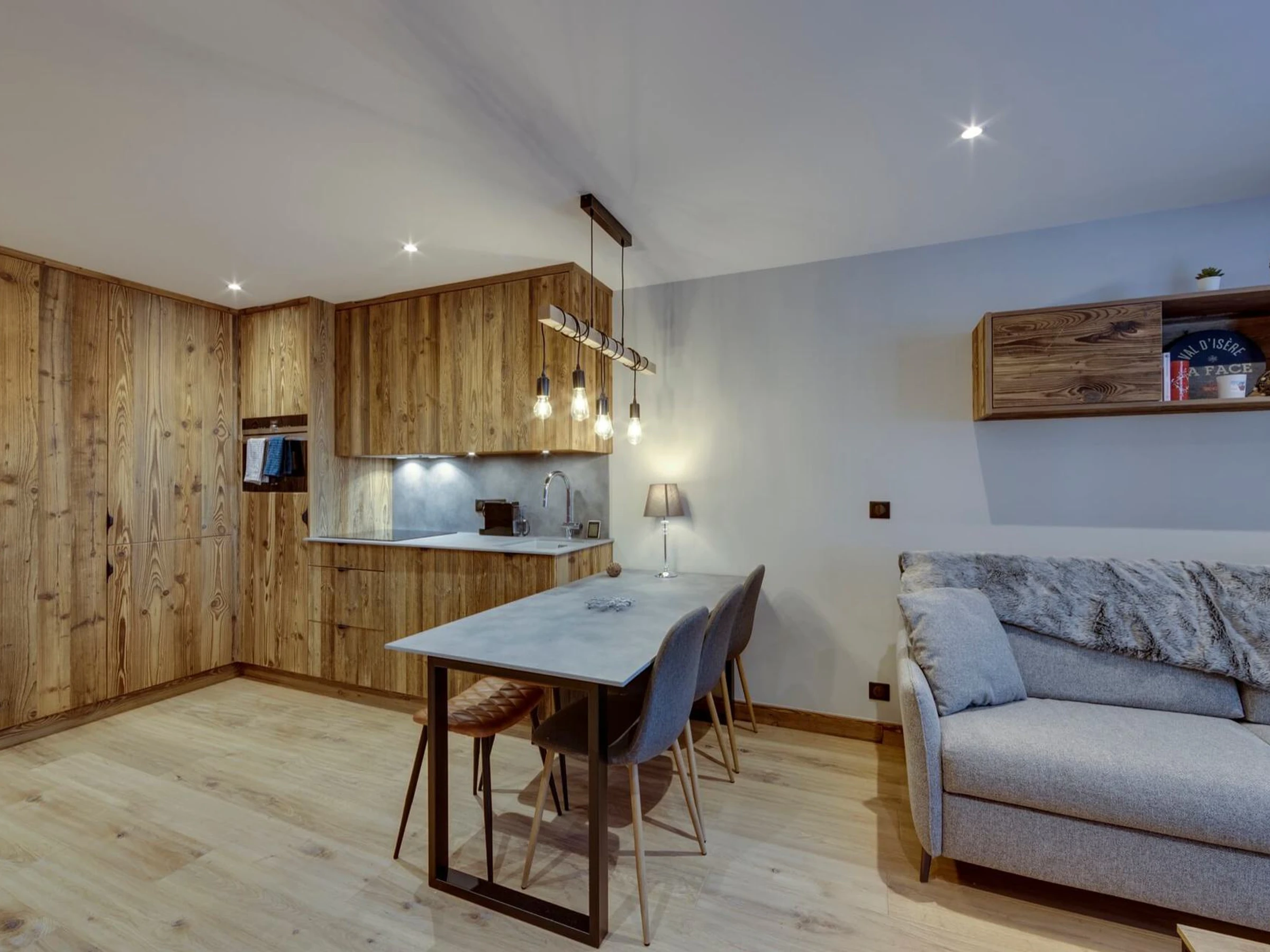 - Kitchen: fridge, induction hobs, combined microwave oven, Nespresso coffee machine