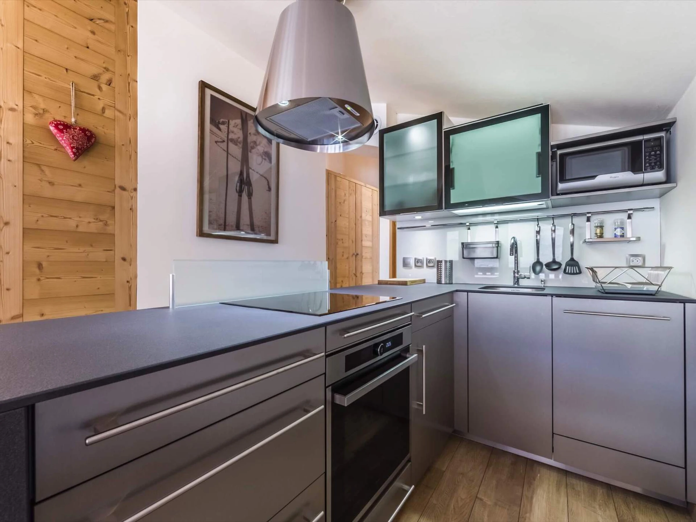 - Kitchen : fridge, oven, dishwasher, induction hobs, micro wave