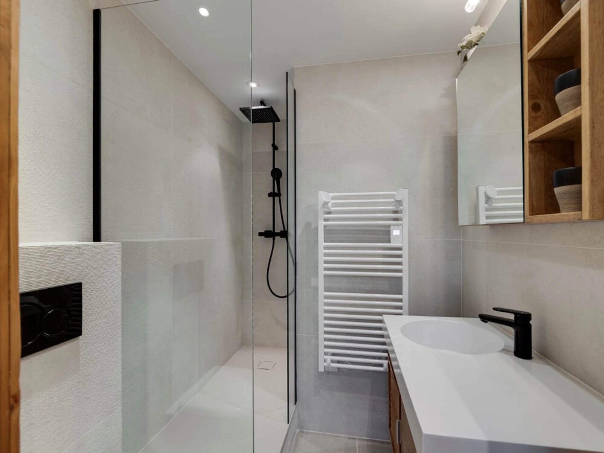 - Bathroom 1 : shower, bassin, WC