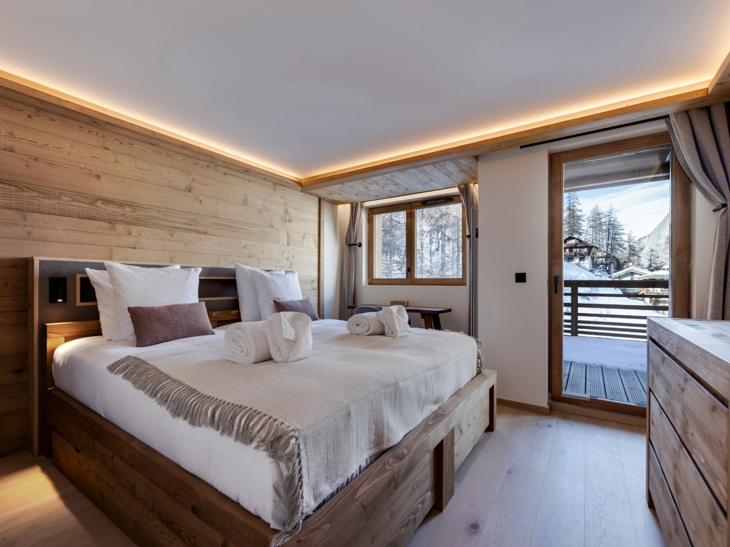 - Double bedroom with en suite : double bed (180 x 200, can be separated) en suite shower room, toilet, and balcony