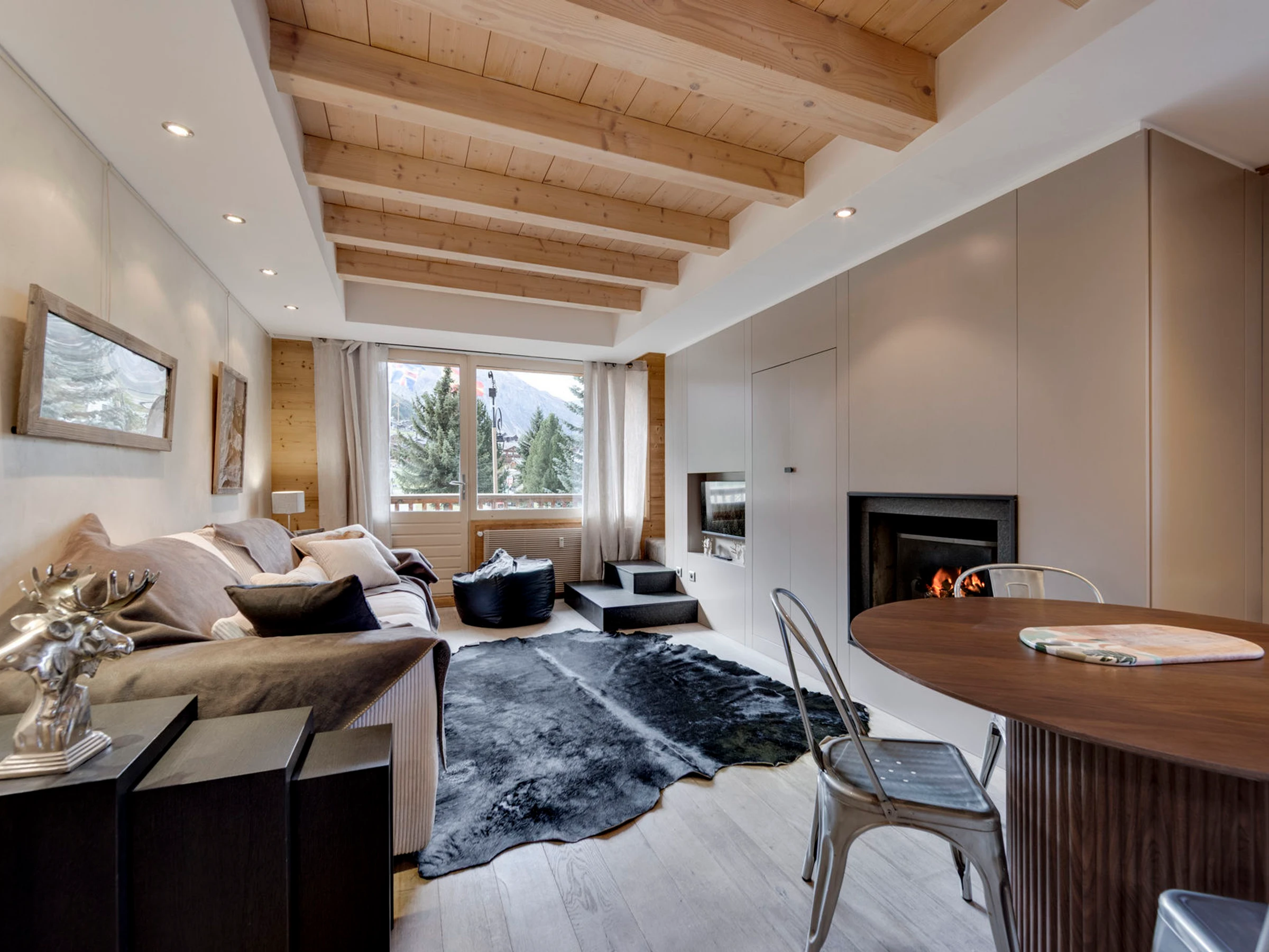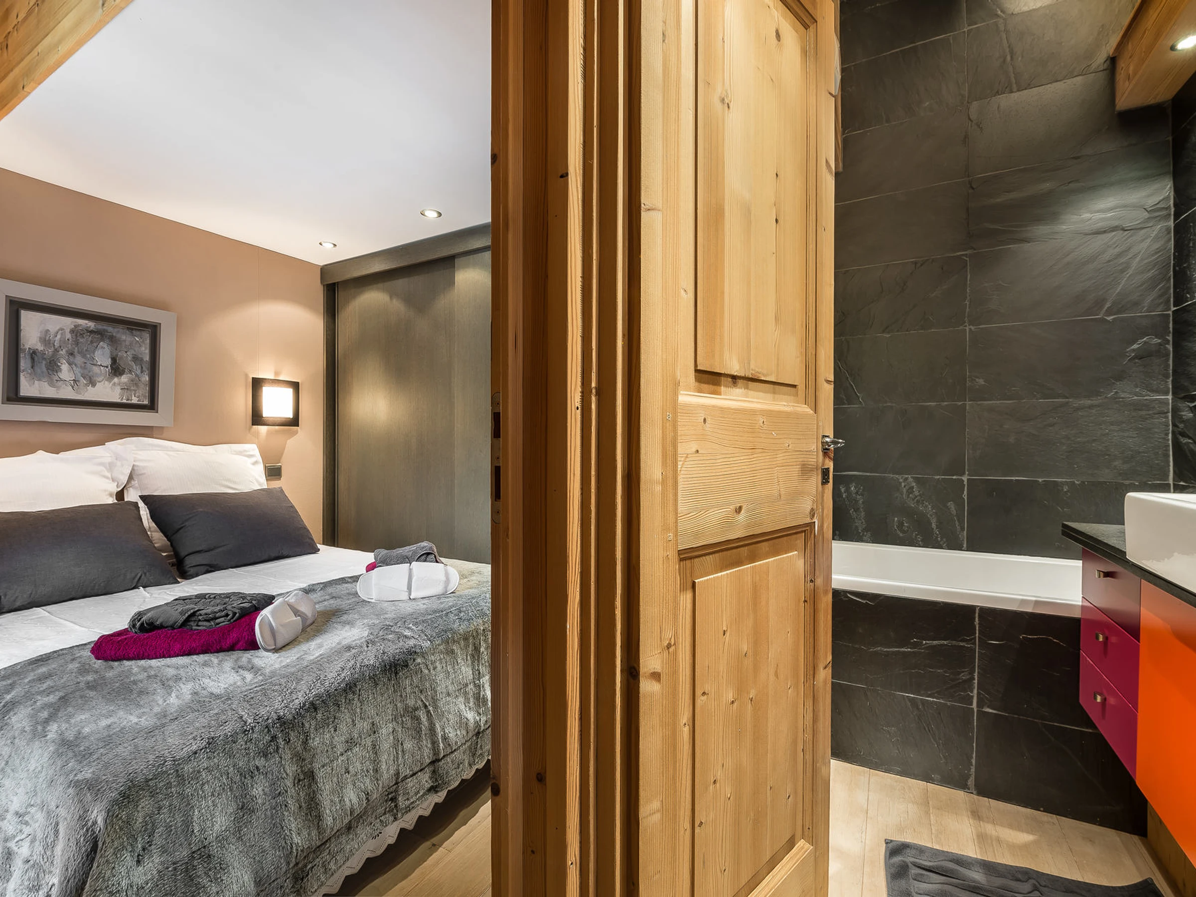 [hidden] duplex flat. In the very heart of Val d'Isère. Near-by all amenities, ski-in and ski-out and 10 meters from the Solaise gondola. 2 bedrooms with double bed and adjoining beds.