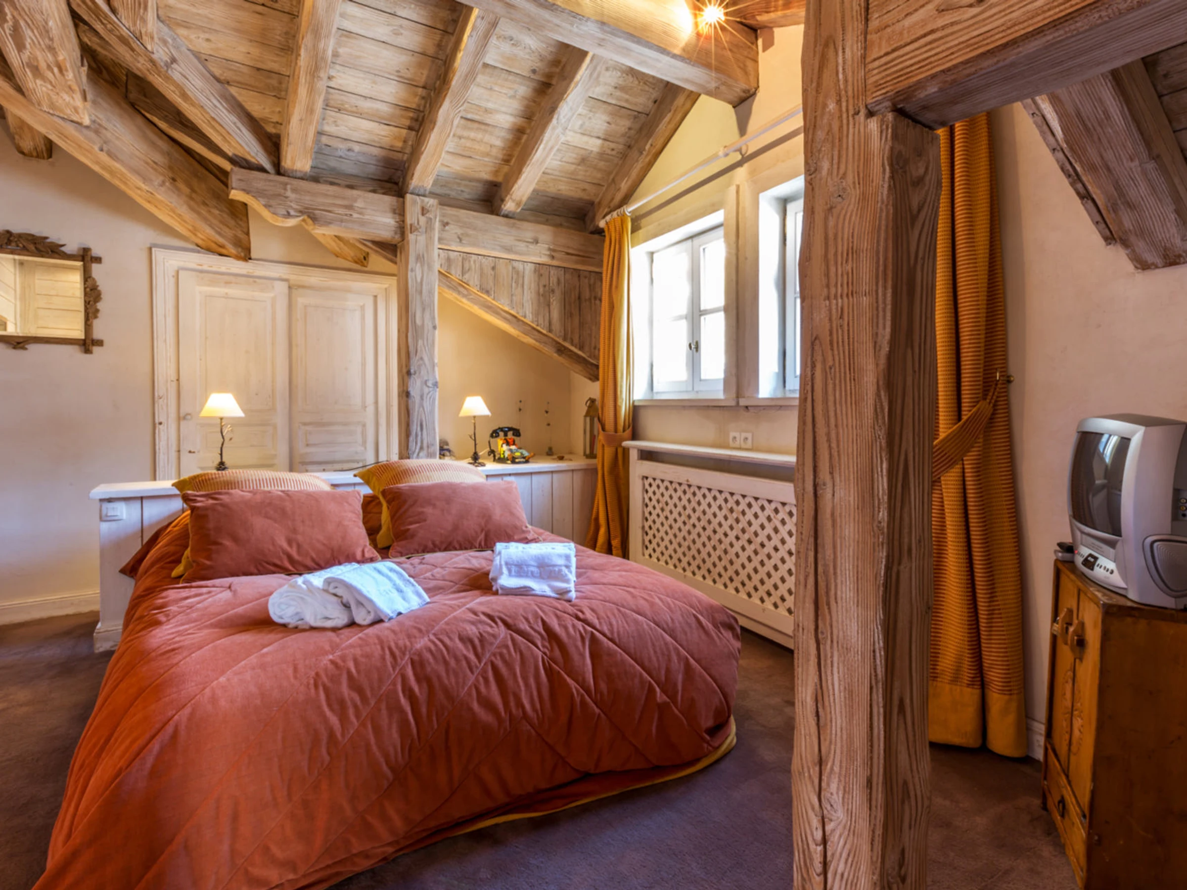 Apartment of prestigious standing in old wood and floor tiles. Wonderful living with large volume under roof and visible beams.