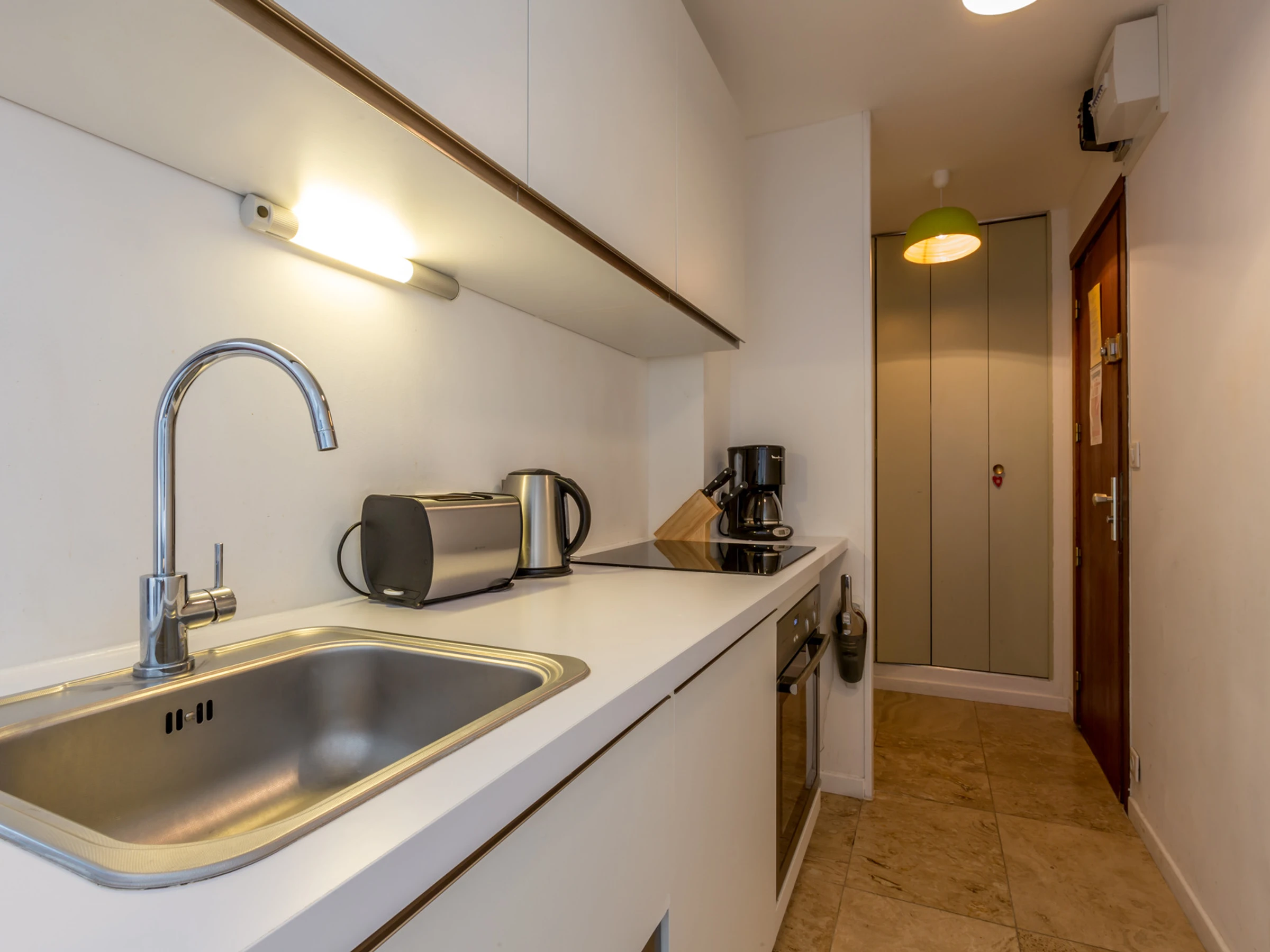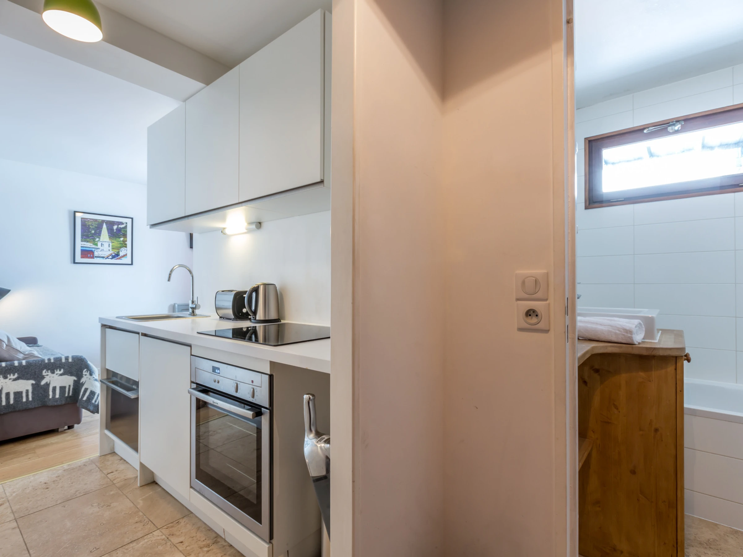 Equipped with oven, small dishwasher, induction hob, fridge