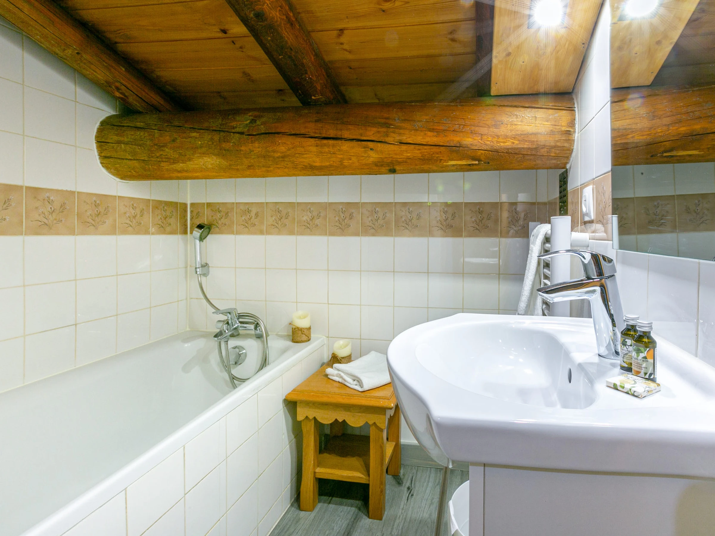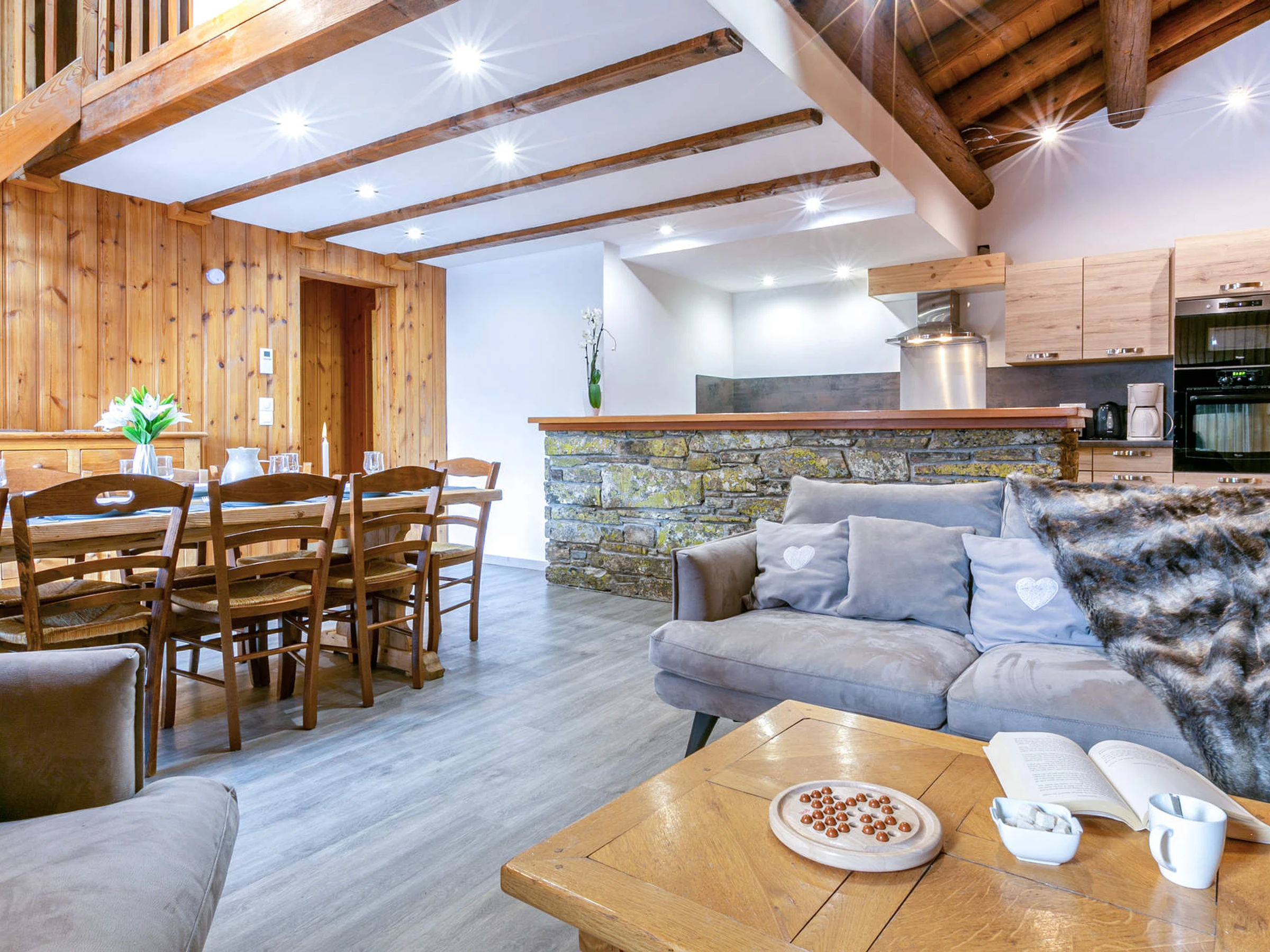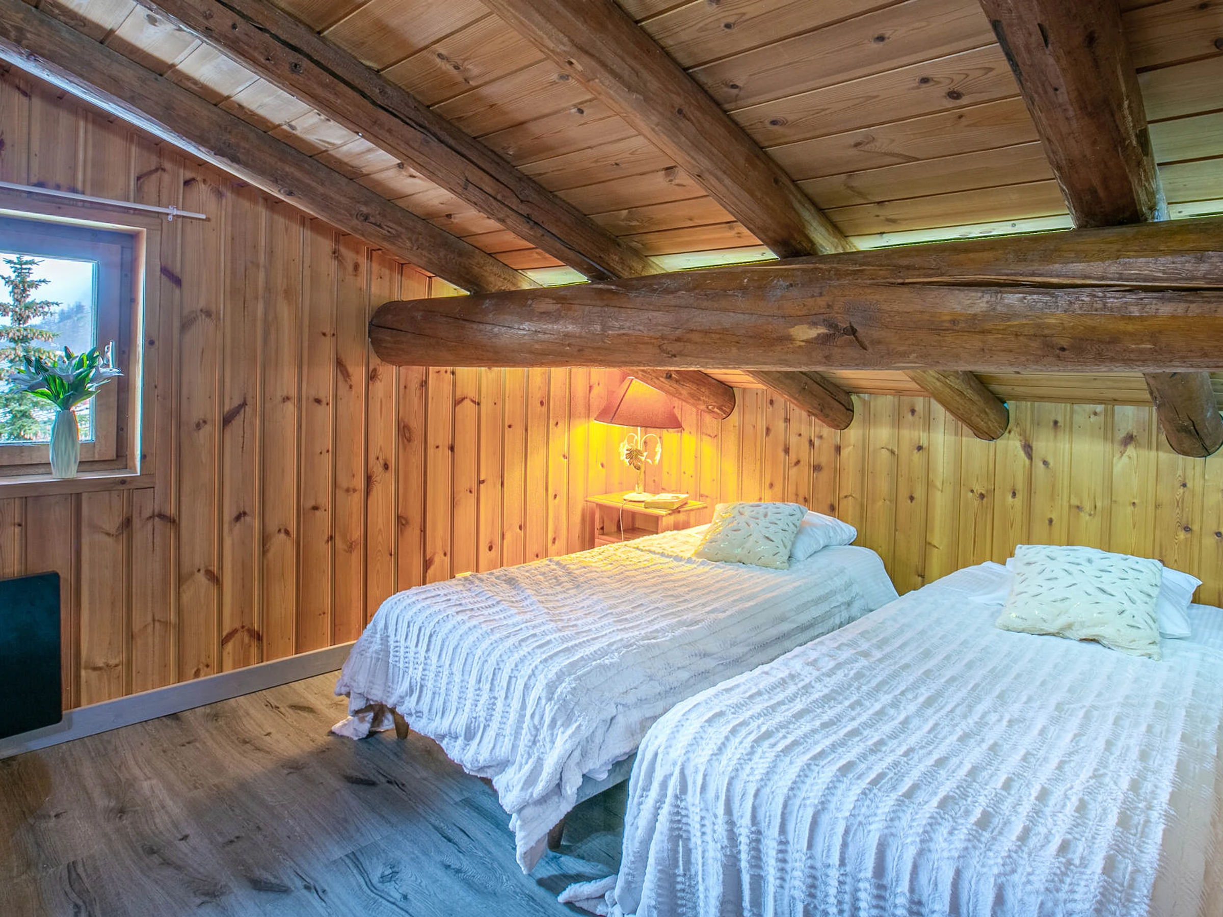 Located on the 2nd and last floor of the chalet, with a South facing balcony, beautiful volume under roof and aparent wood beams.