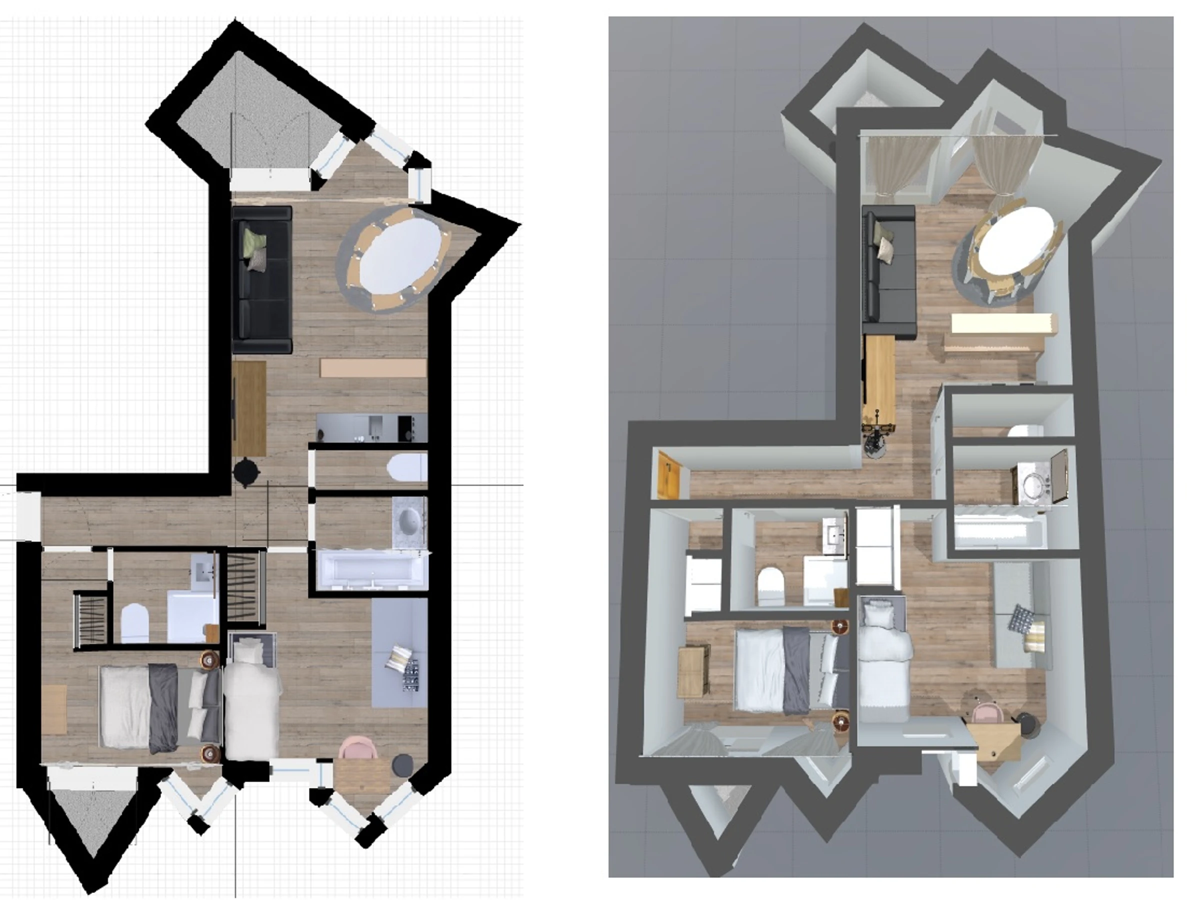 Equipped with dishwasher, small oven, ceramic hob, fridge