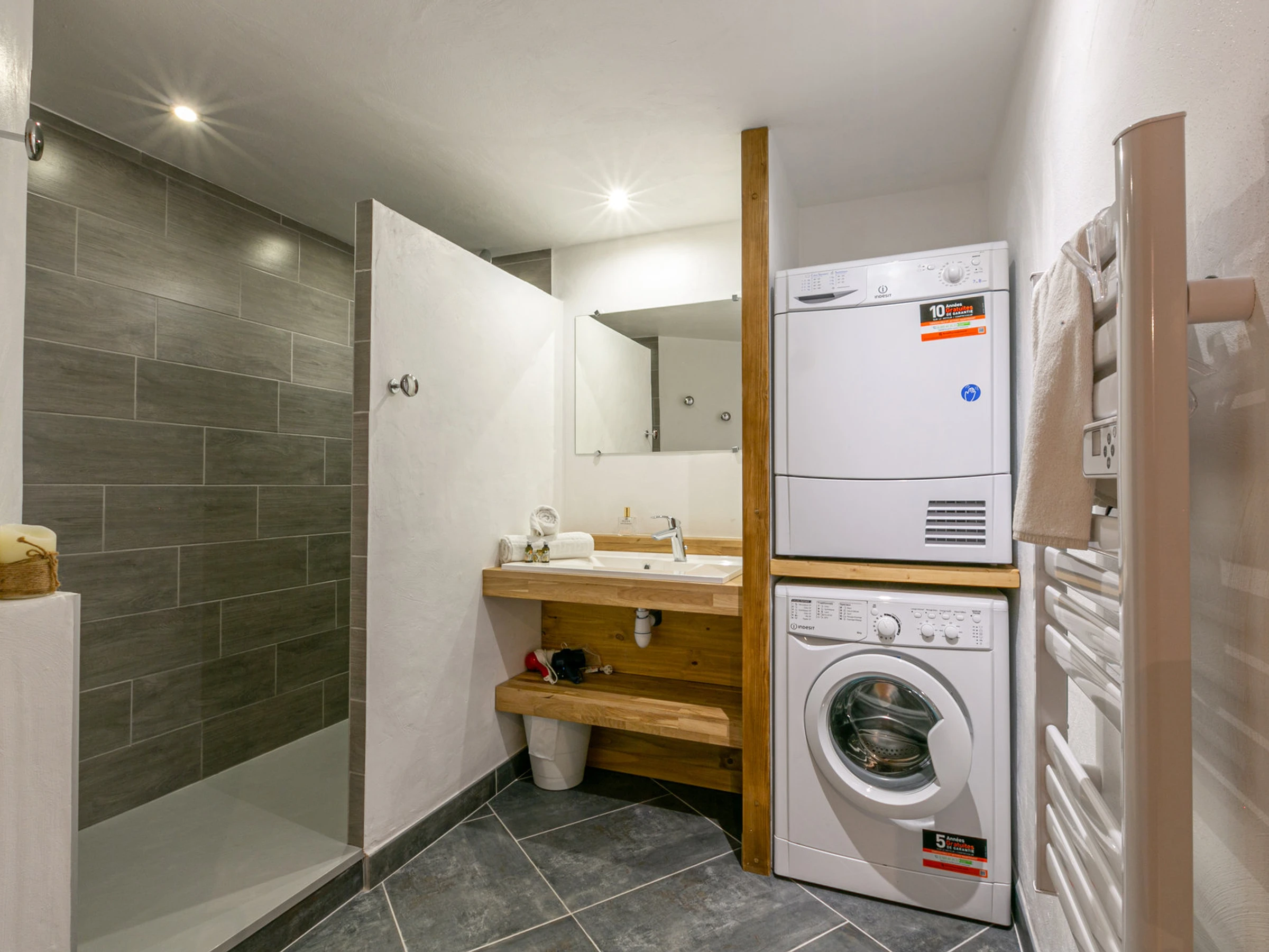 Shower room with washing machine and tumble dryer