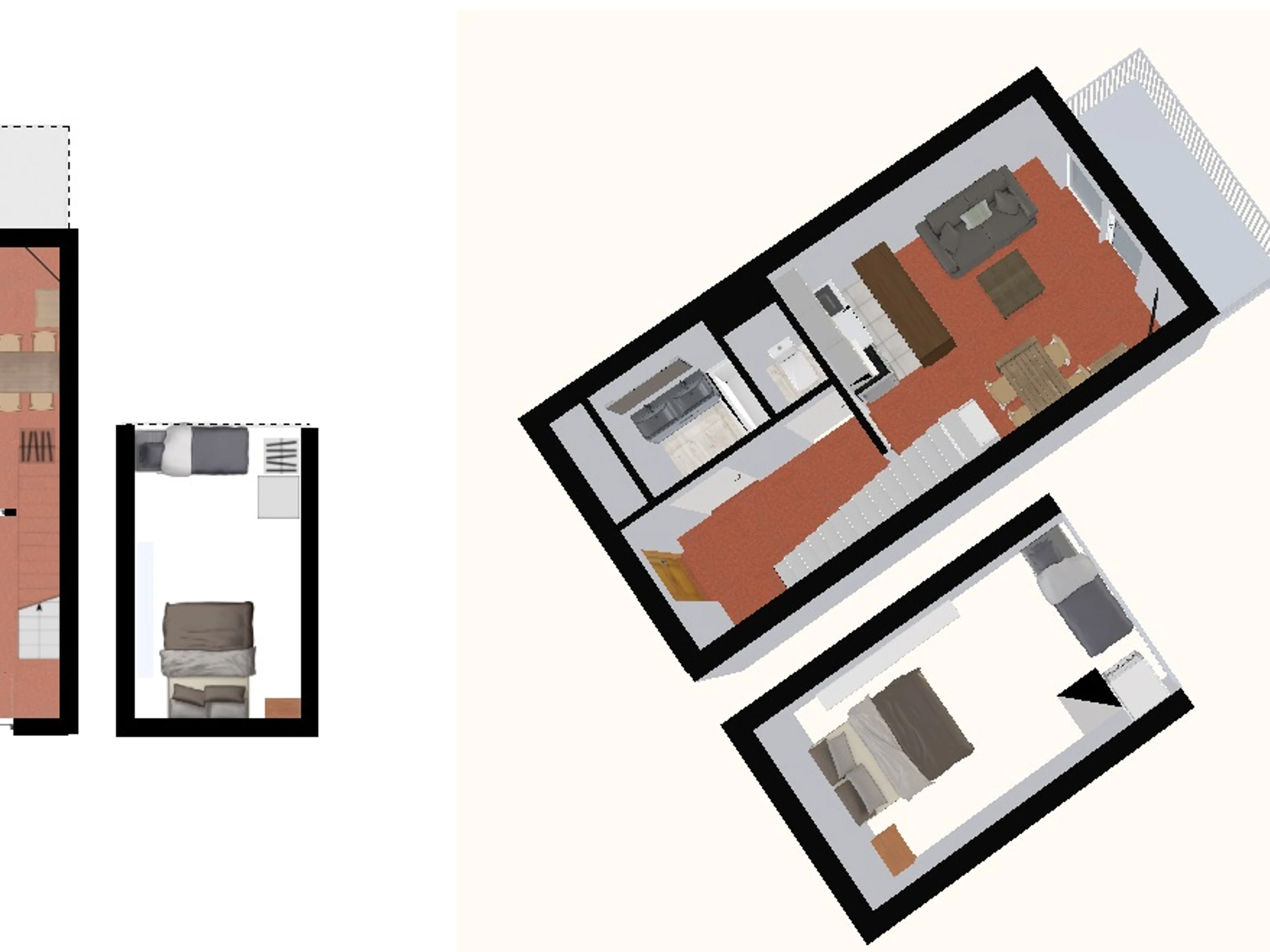 1 single bed with 1 pull-out bed 80x190 with legs