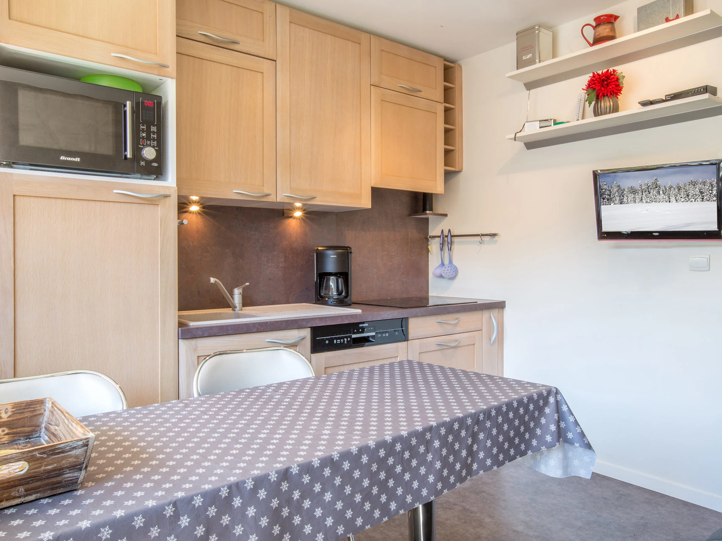 Small appliances: raclette set, coffee machine, kettle, toaster