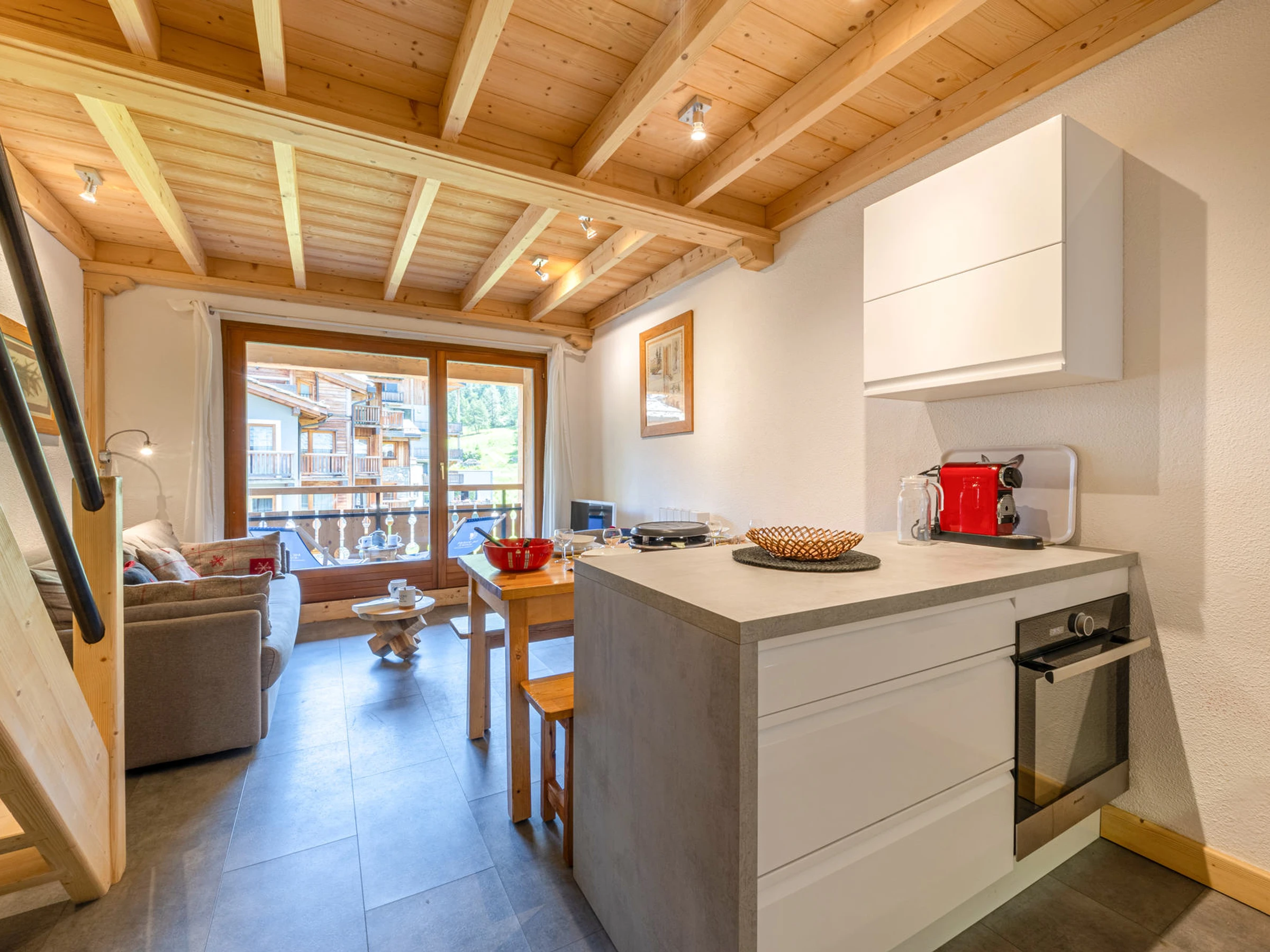 5 min walk to all amenities (shops, restaurants, ski hire, ski lessons - 1 supermarket close to the residence) ...).