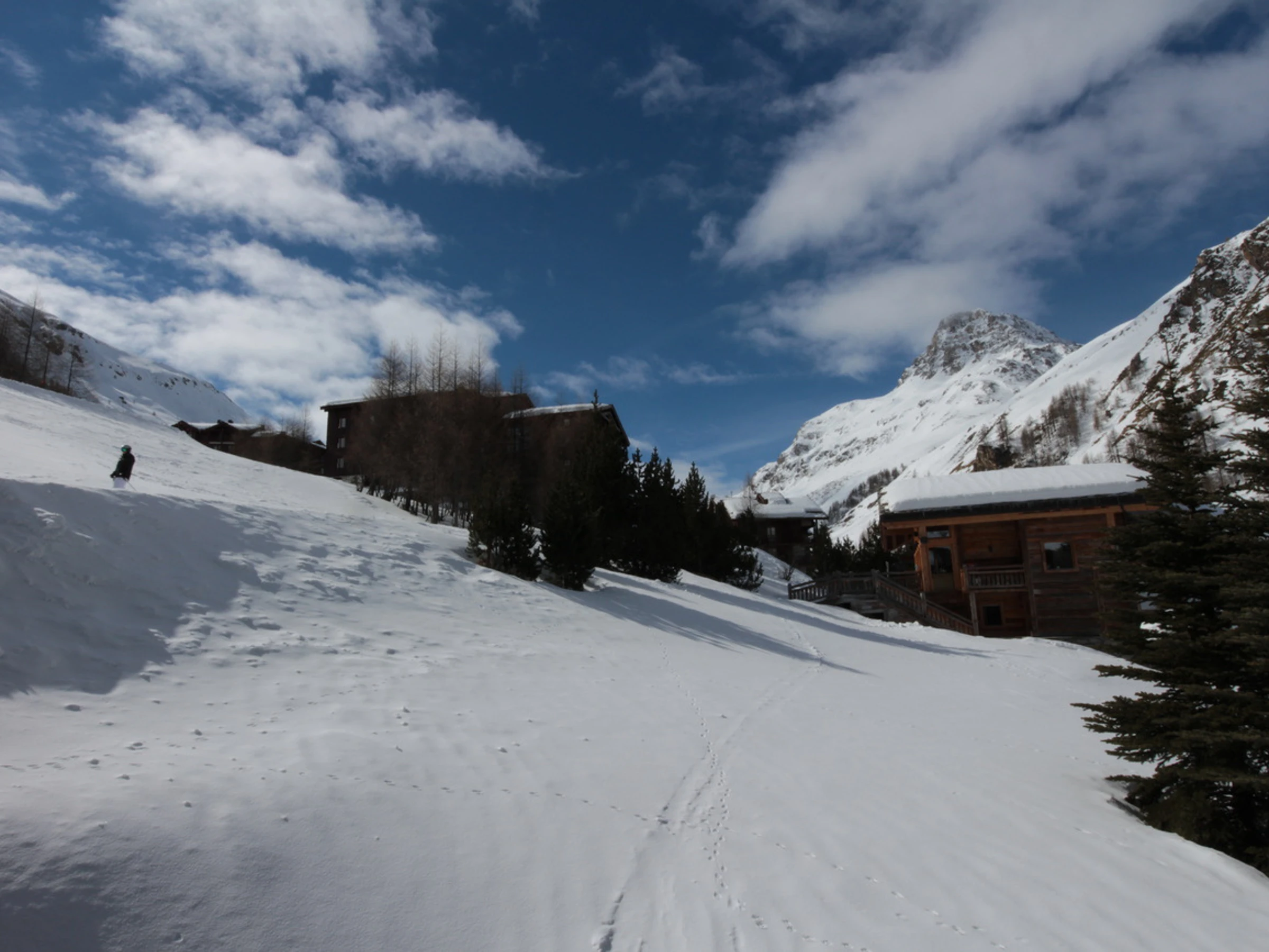 5 min walk from the ski slopes and the village children. Return by skis by the "M" slope.