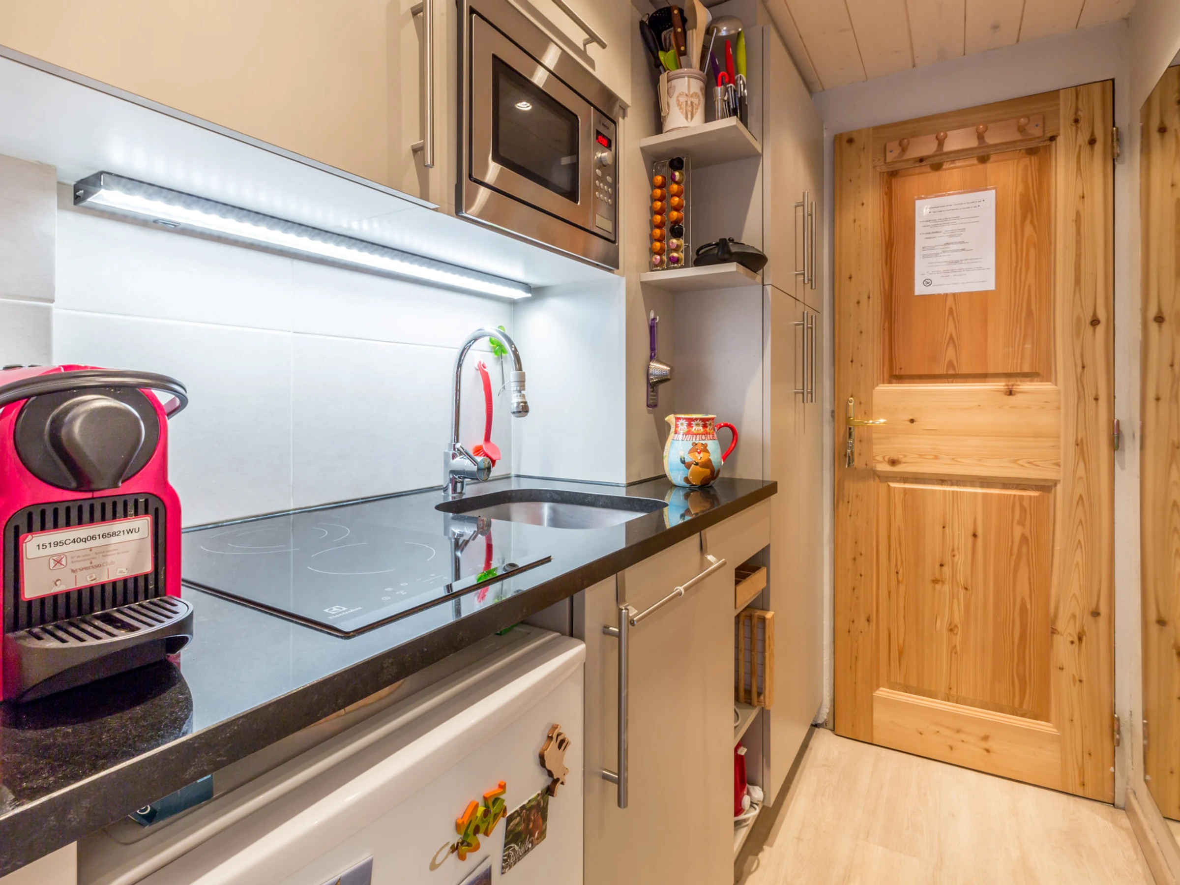 Equipped with microwave oven, ceramic hob, fridge with freezer
