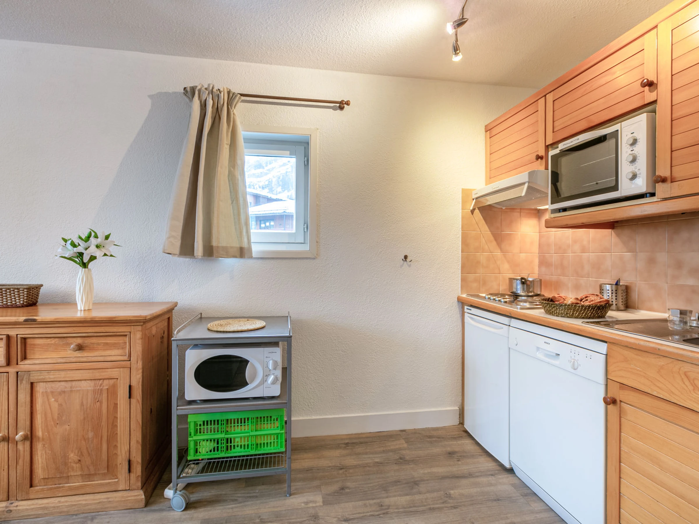 Equipped with dishwasher, hood, microwave oven, electric hob, oven