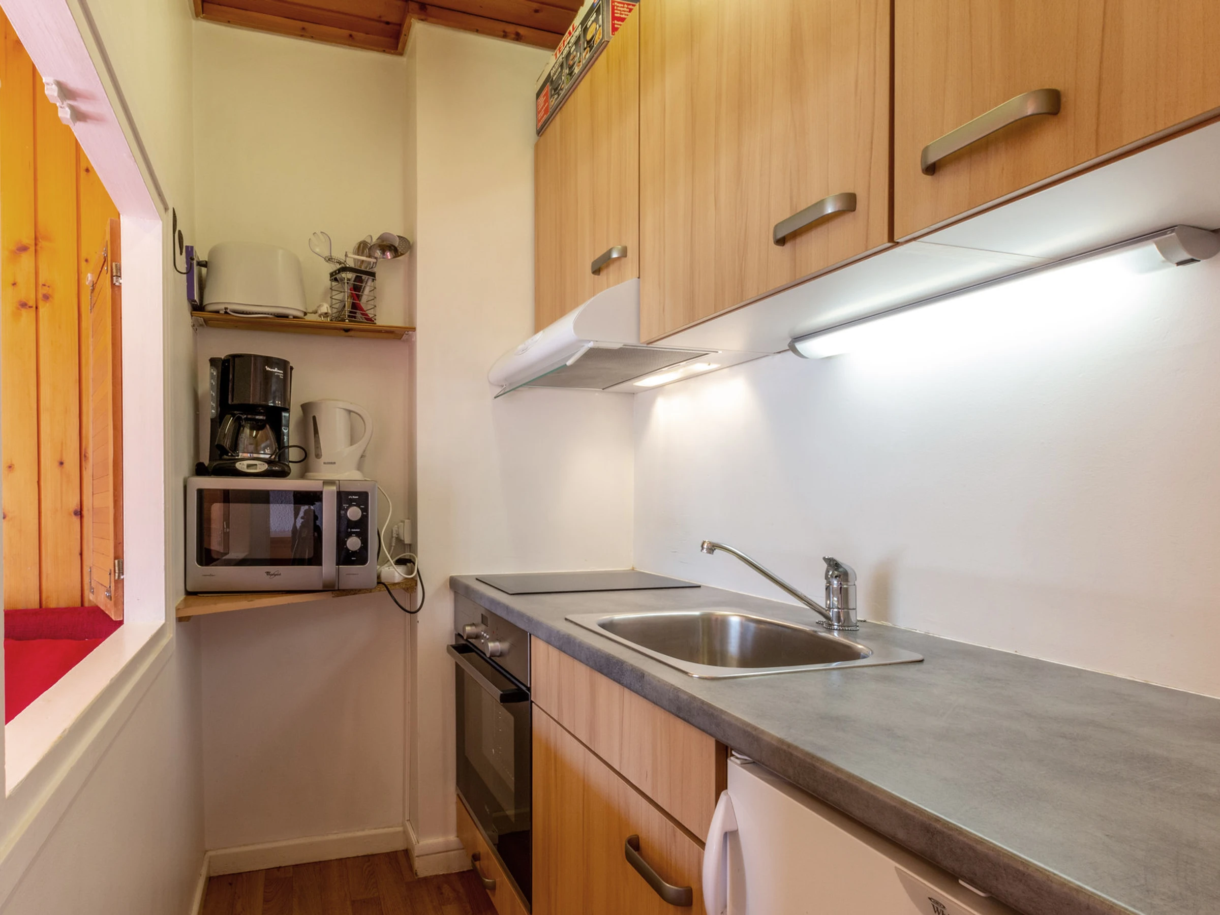 Equipped with oven, microwave oven, ceramic hob, hood, fridge