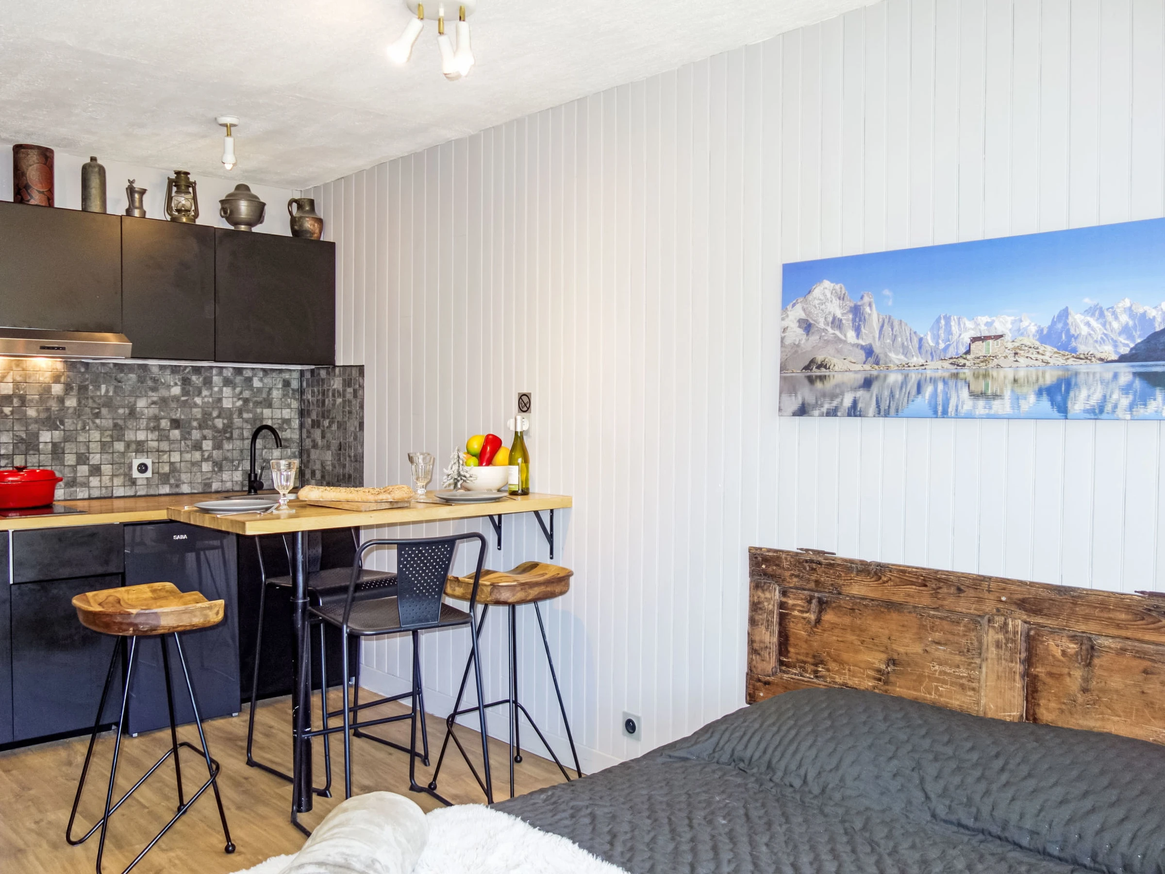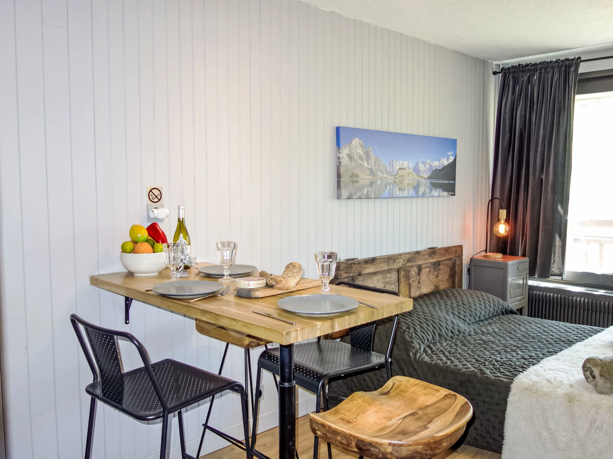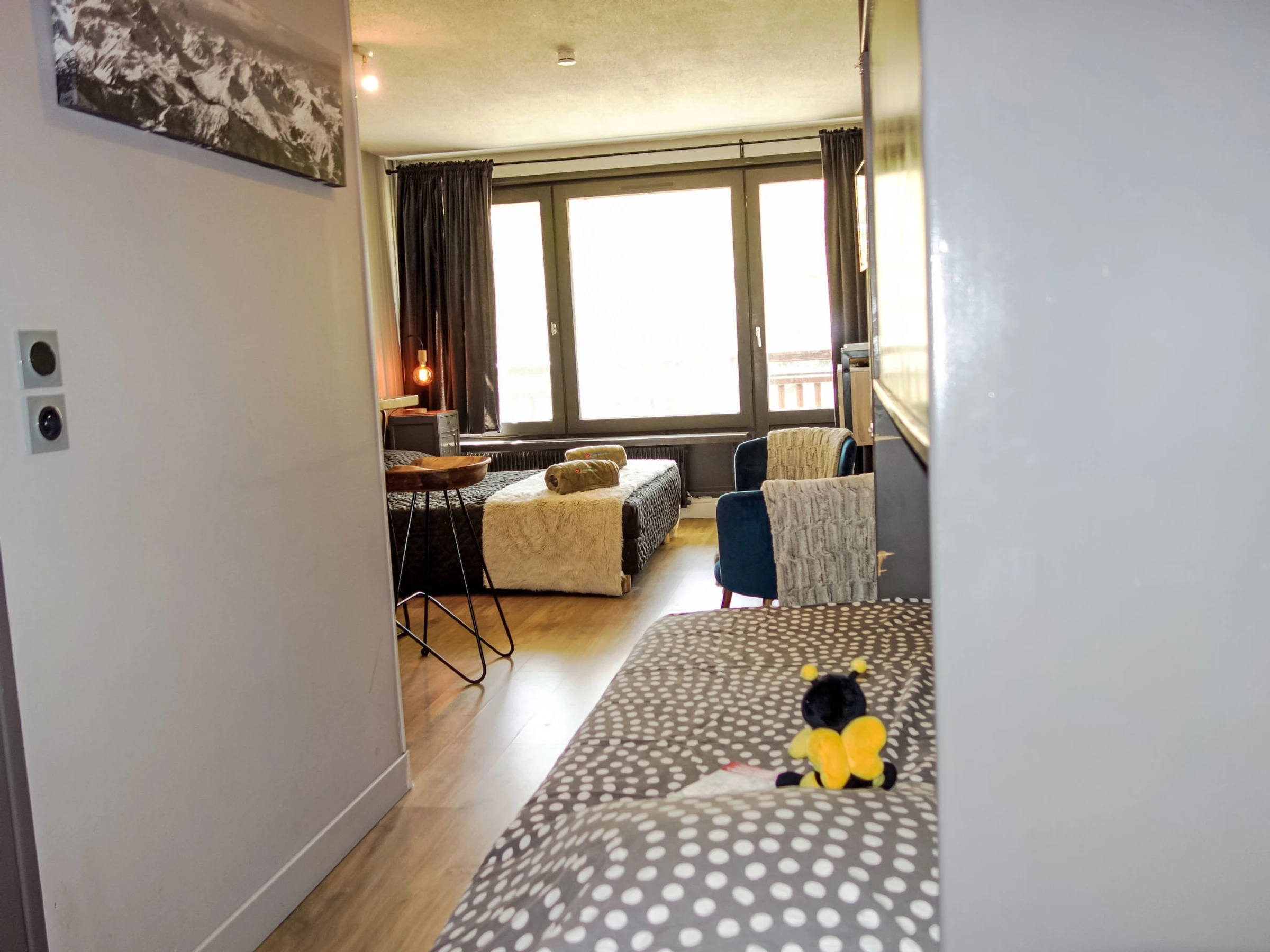 "Roc De Peclet", 1-room apartment 21 m2 on 2nd floor, south facing position. Very comfortable and romantic furnishings: living/sleeping room with 1 french bed (1 x 140 cm, length 190 cm), TV and electric heater. Exit south facing position. Entrance hall with 1 wall-trunk bed (80 cm, length 180 cm). Open kitchen (2 induction hot plates, toaster, kettle, microwave, electric coffee machine, raclette grill). Shower/WC. Electric fireplace. Parquet floors. Small balcony 3 m2, south facing position. Marvellous panoramic view of the mountains, the valley and the ski run. Facilities: Internet (WiFi, extra). Suitable for families. Offer by a private individual according to Art. 155, IV of CGI. [hidden]