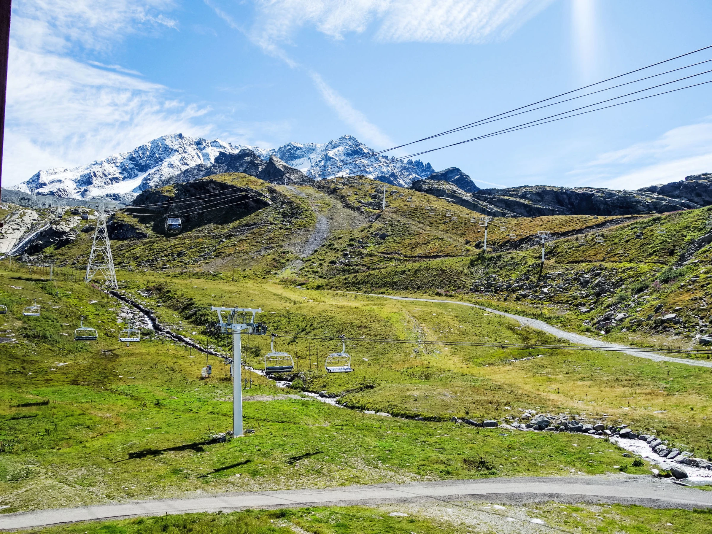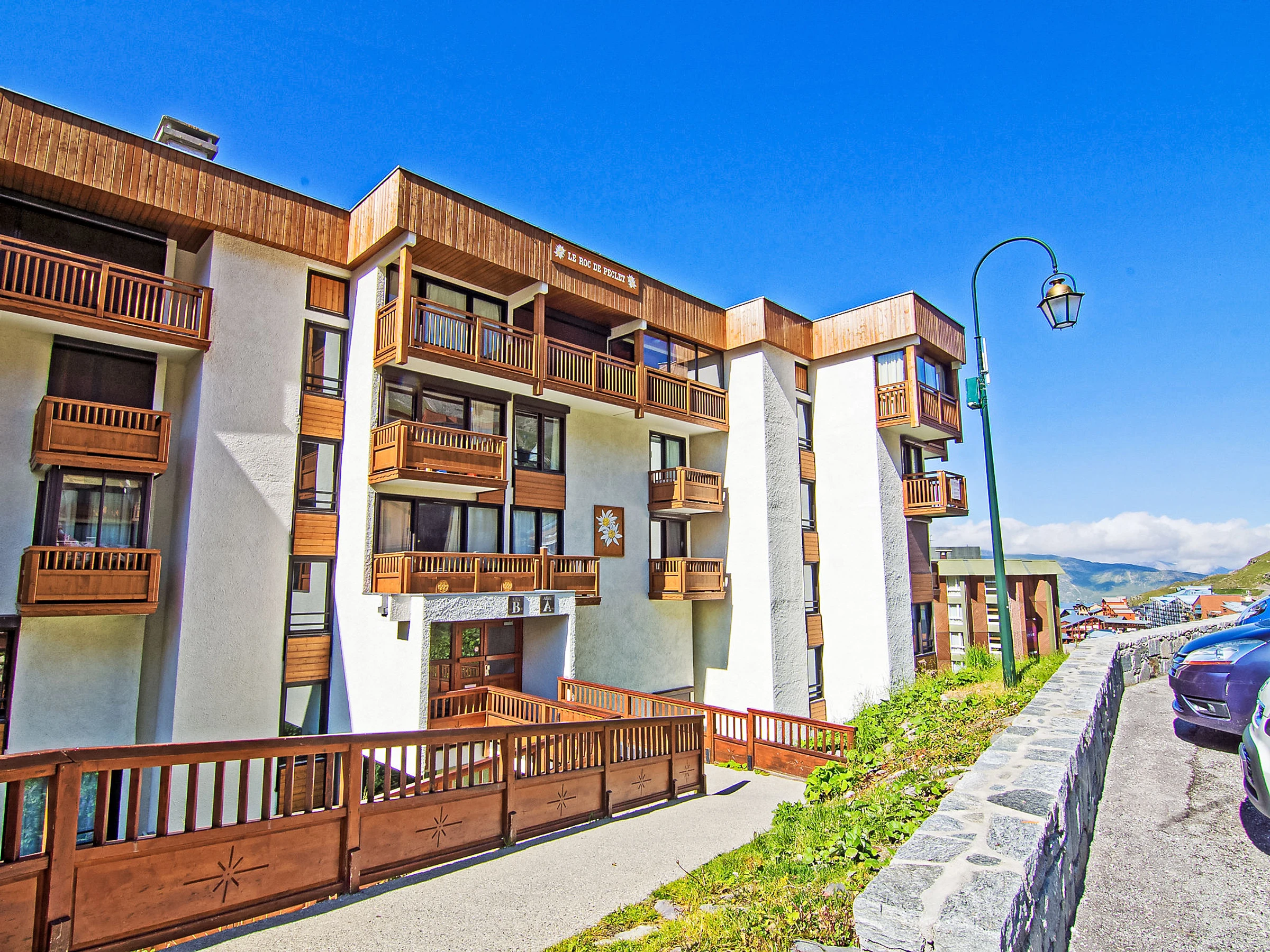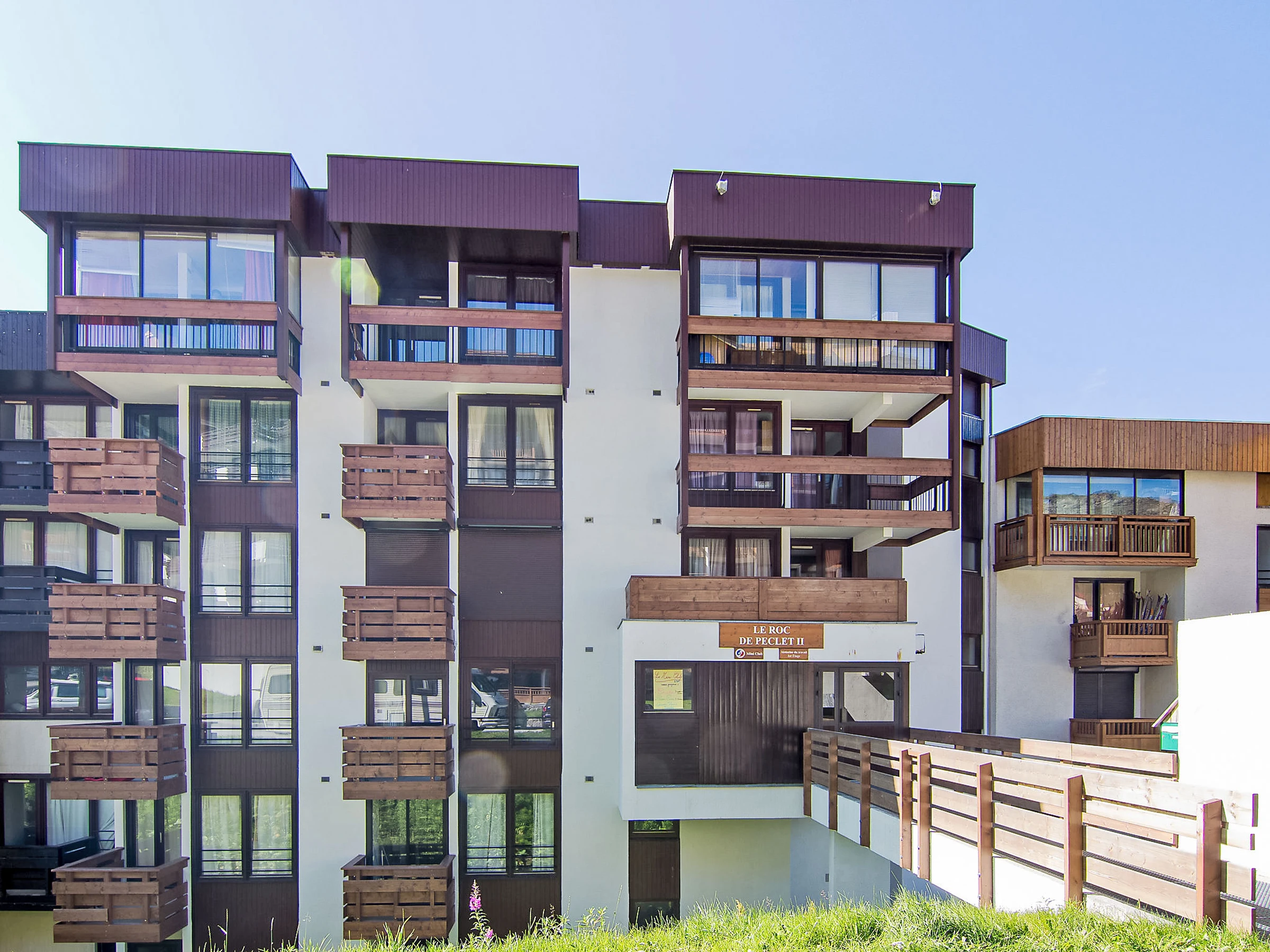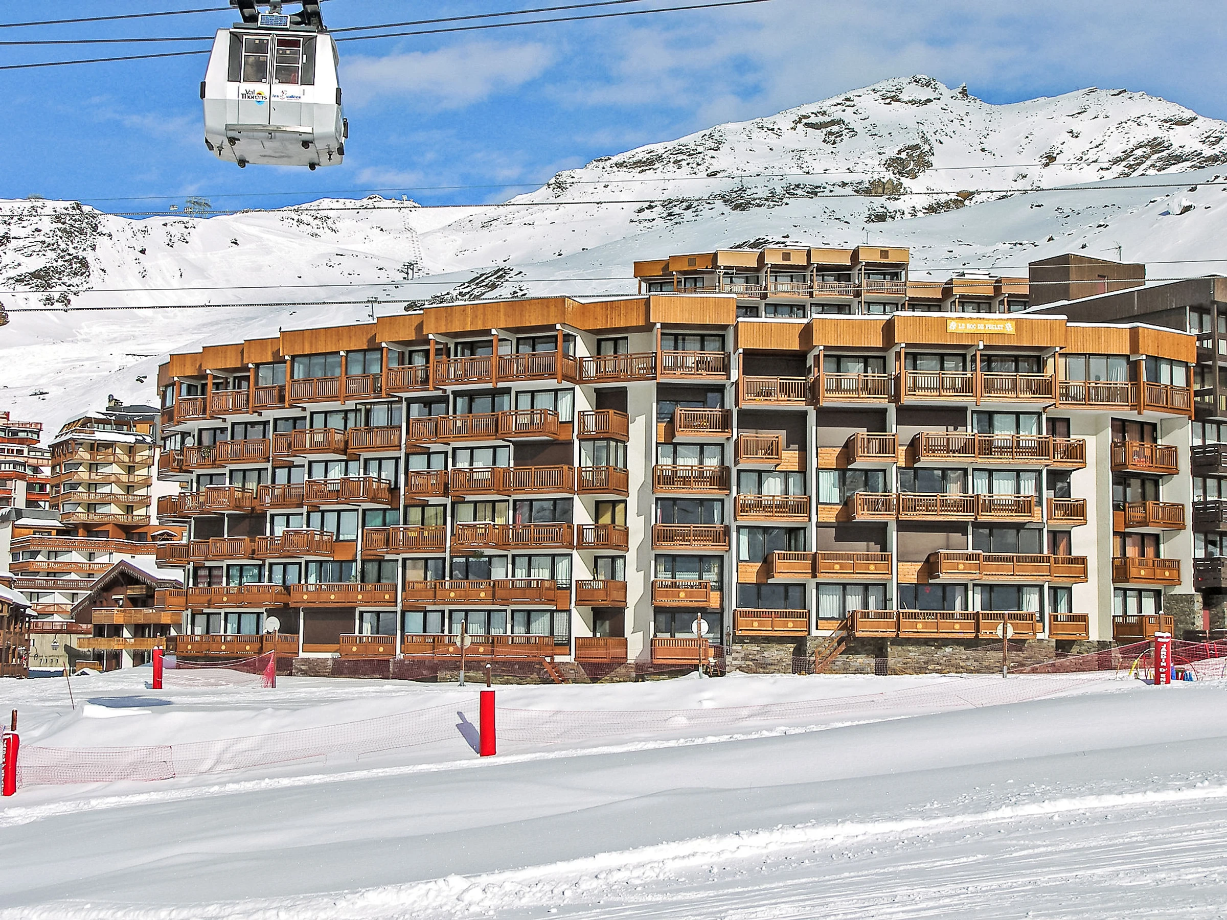 Residence "Le Roc de Peclet". Above Val Thorens, in the district of Péclet, in a quiet, sunny position, excellent location: right in the centre but still quiet, 900 m from the lake, 50 m from the skiing area, south facing position. In the complex: storage room for skis, central heating system. Motor access (mountain road). In Winter: please take snow chains. Public car park at 300 m, extra. Shop 350 m, grocery 200 m, supermarket 200 m, shopping centre, restaurant 200 m, bakery 350 m, café 200 m, pedestrian zone 500 m, 5 minute walk to the centre, bus stop "navette gratuit(Hiver)". Cable car 50 m, chair lift, skisport facilities 100 m, slopes 50 m, ski school 500 m, ski-kindergarten 10 m, ice rink 200 m. Well-known ski regions can easily be reached: 3 Vallées. Well-known lakes can easily be reached: Lac du lou 1 km, Lac Menuires 800 m. Please note: no lift. Groups of teenagers on request only. The owner does not accept any youth groups. In case of good snow conditions, the house is accessible on skis. The keys‘ handover takes place by the agency ValThorens. No lift.